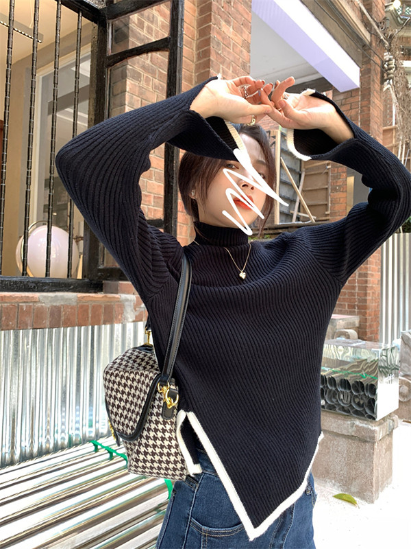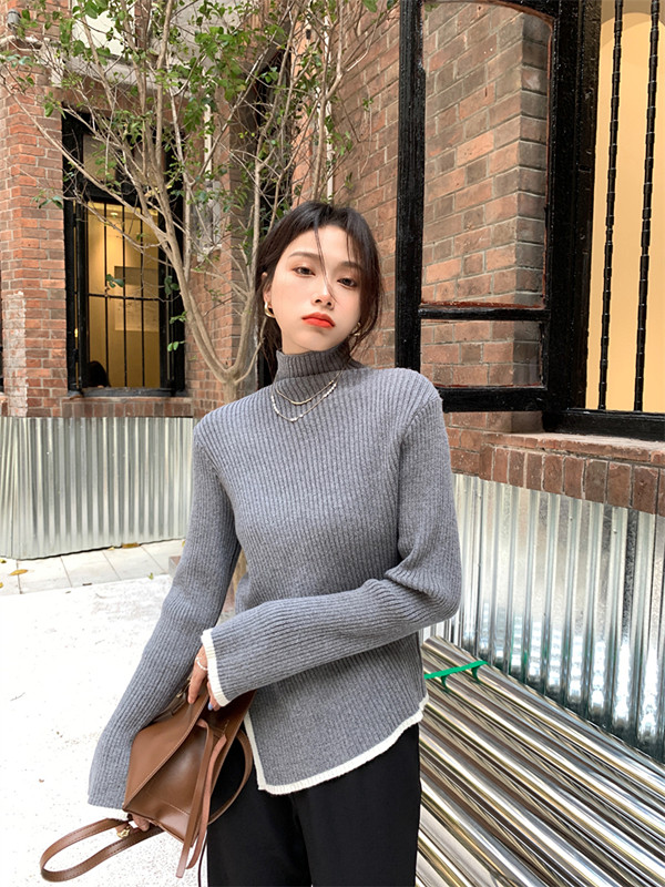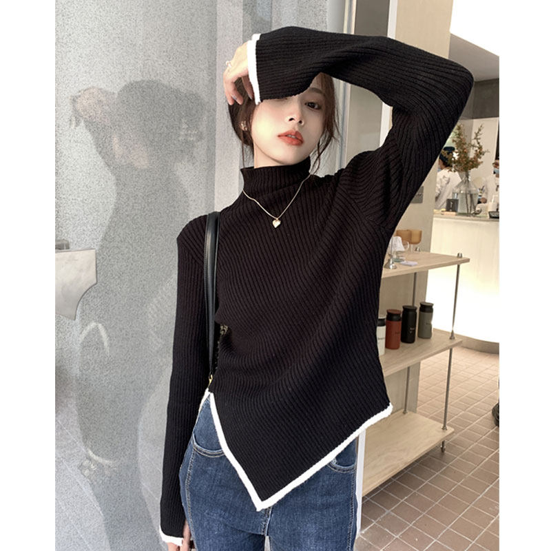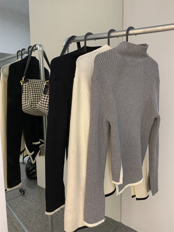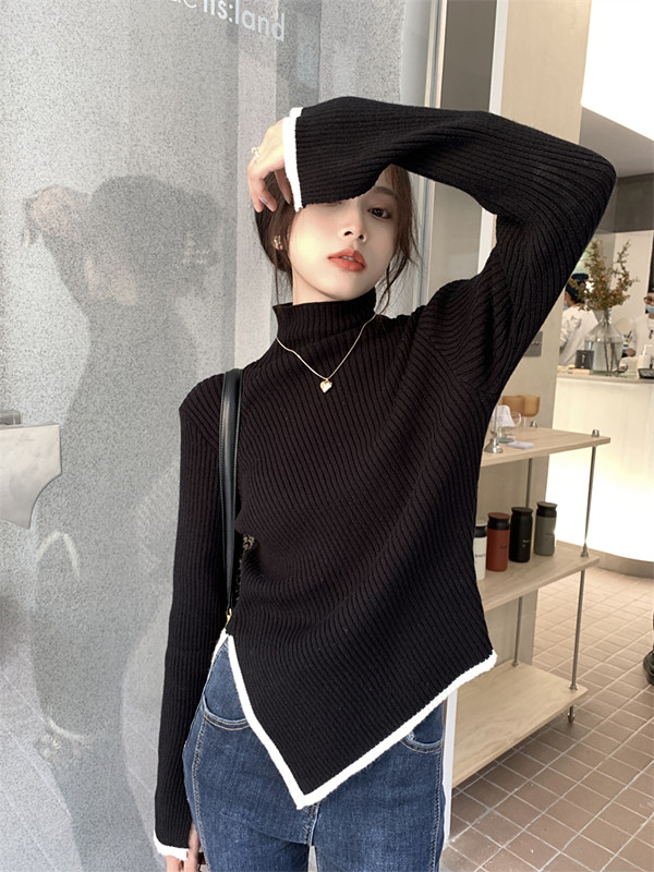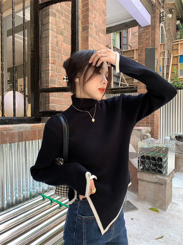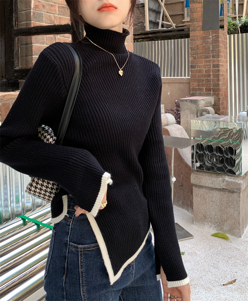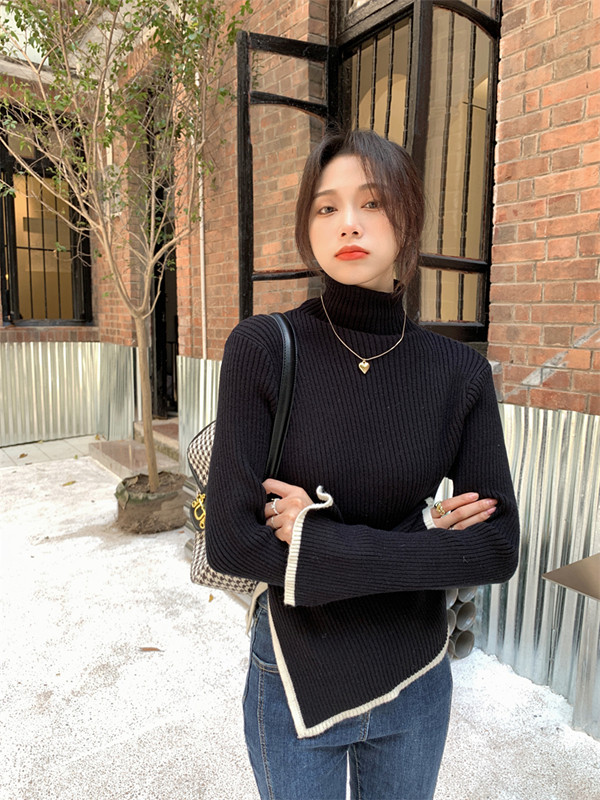 Тонкий демисезонный свитер, трикотажный лонгслив, высокий воротник, в западном стиле