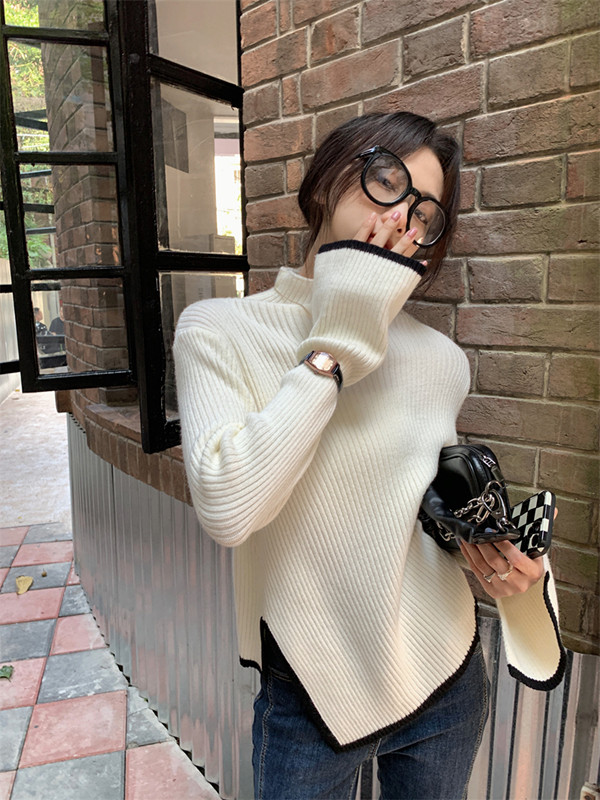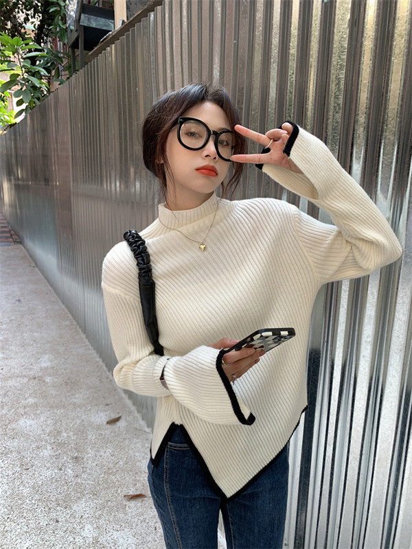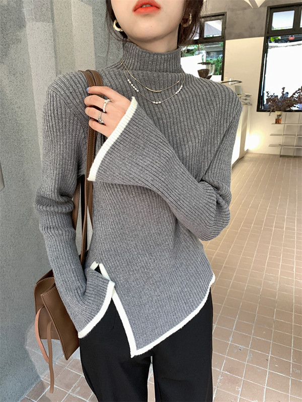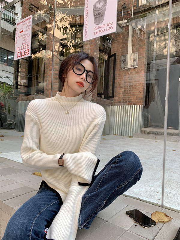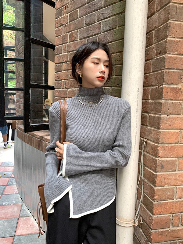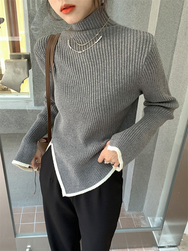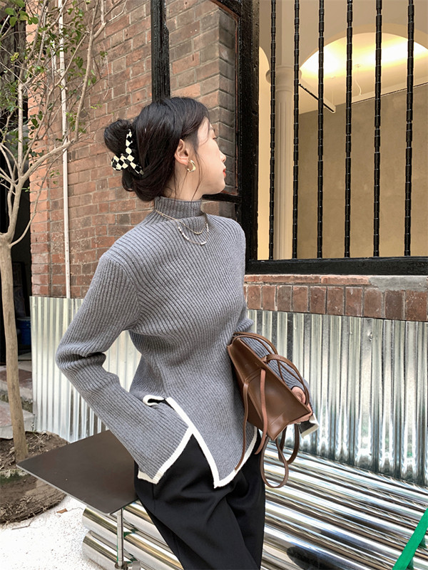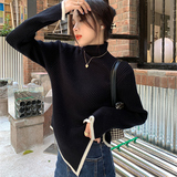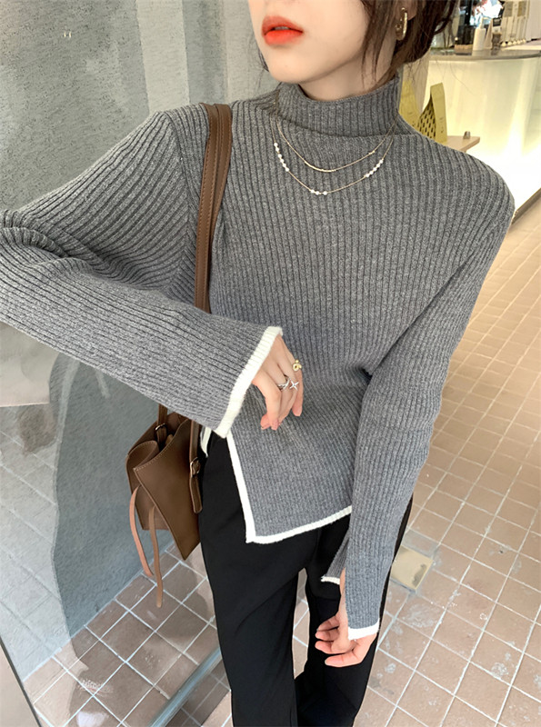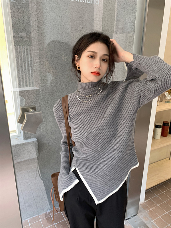 Тонкий демисезонный свитер, трикотажный лонгслив, высокий воротник, в западном стиле