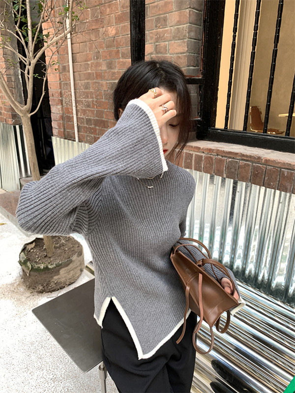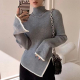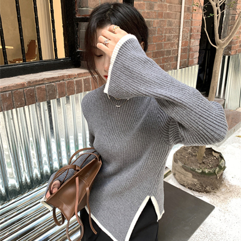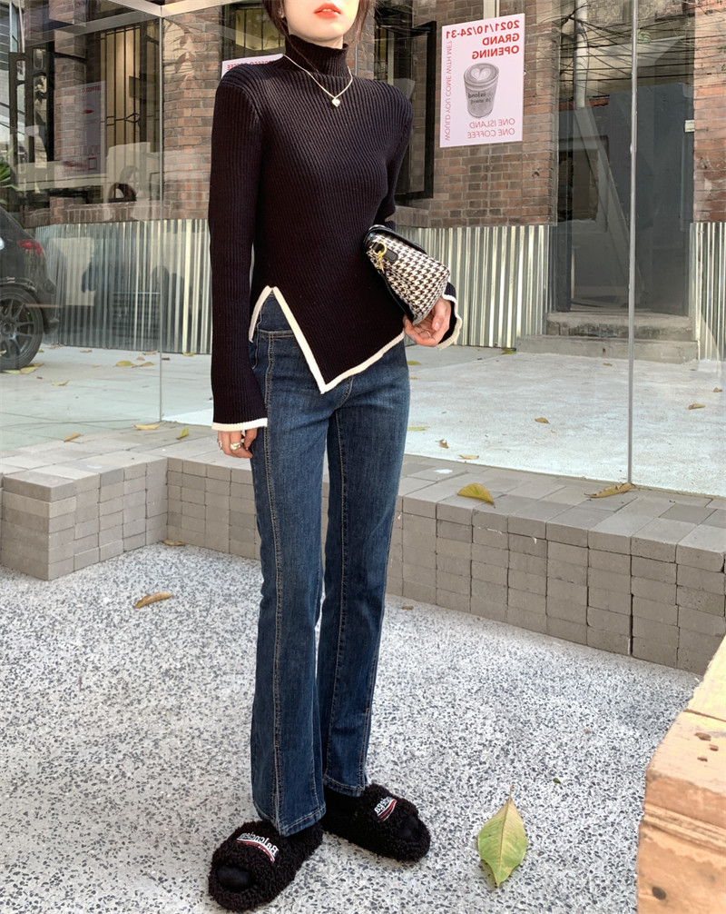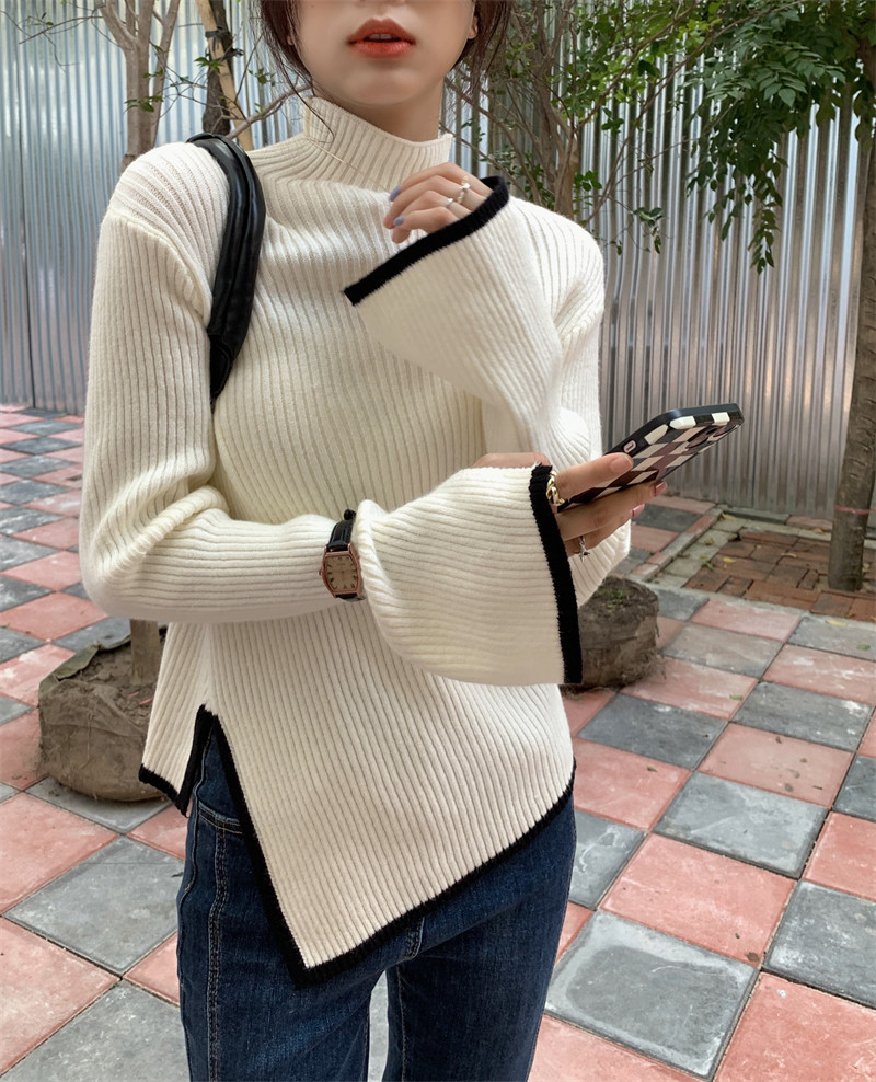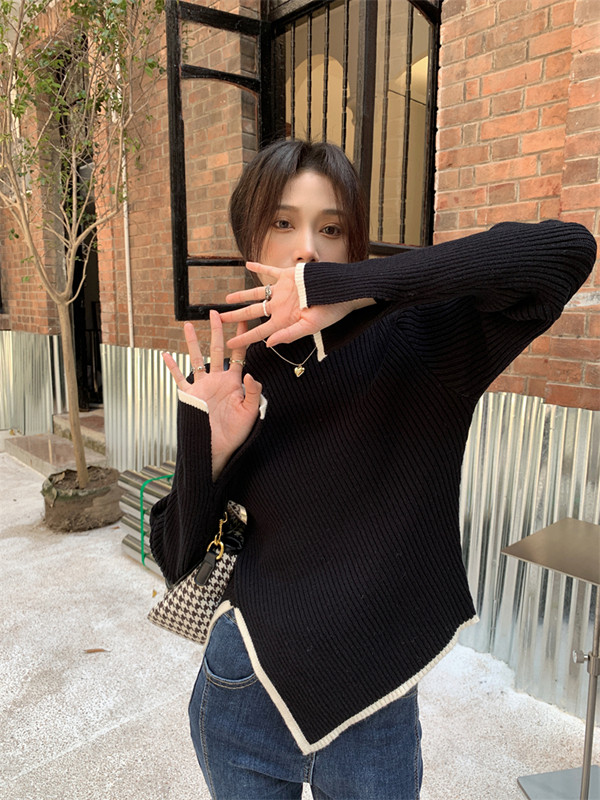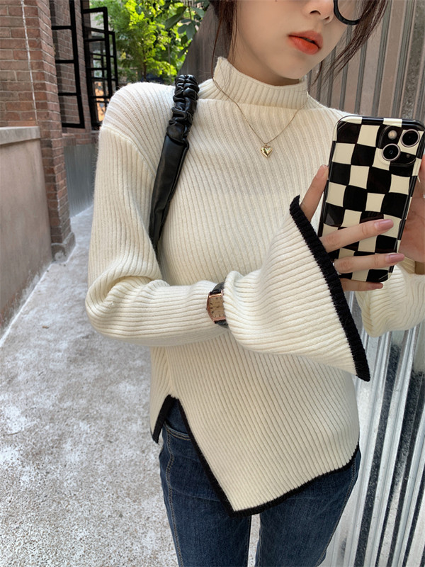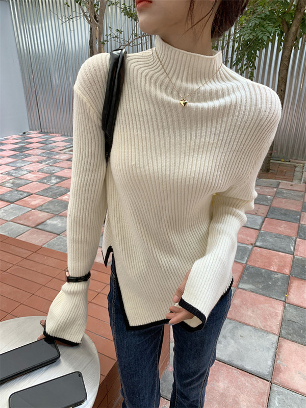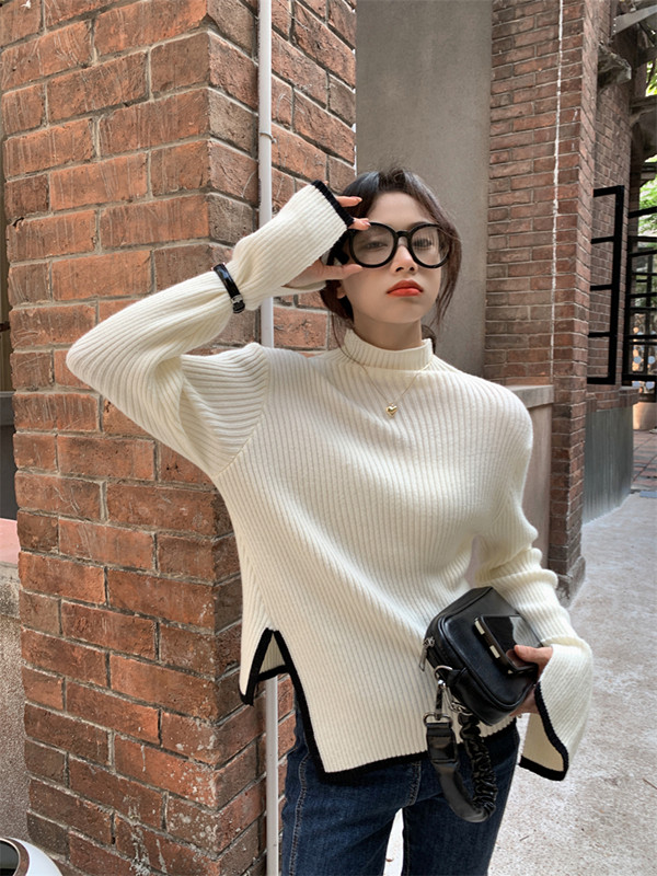 Тонкий демисезонный свитер, трикотажный лонгслив, высокий воротник, в западном стиле