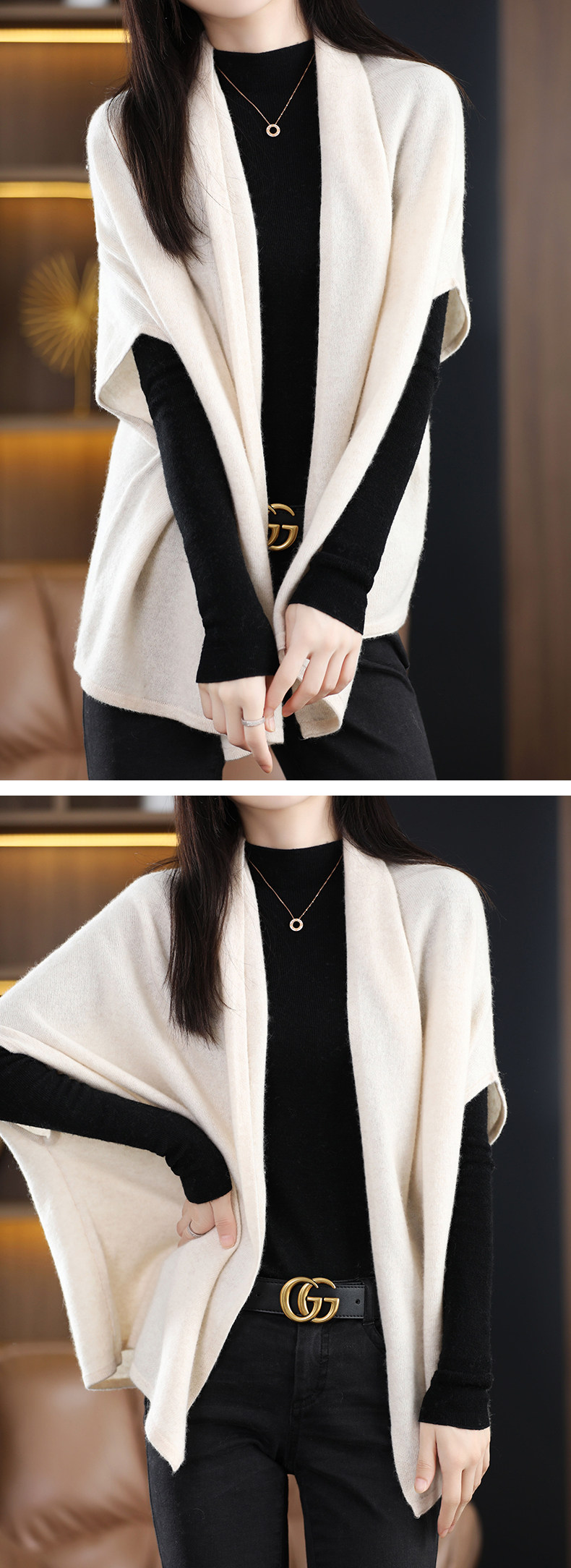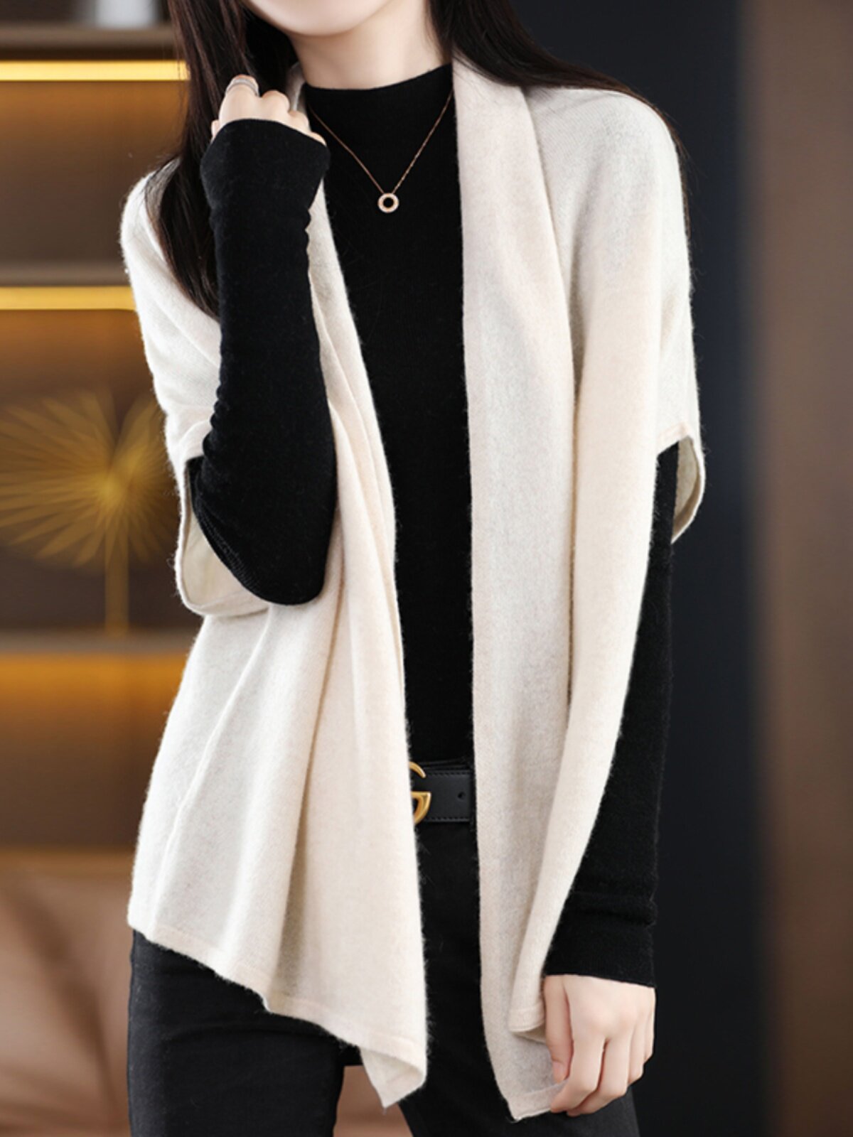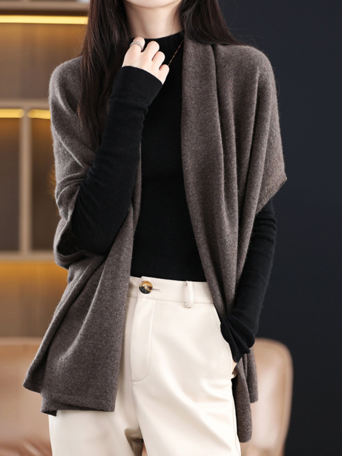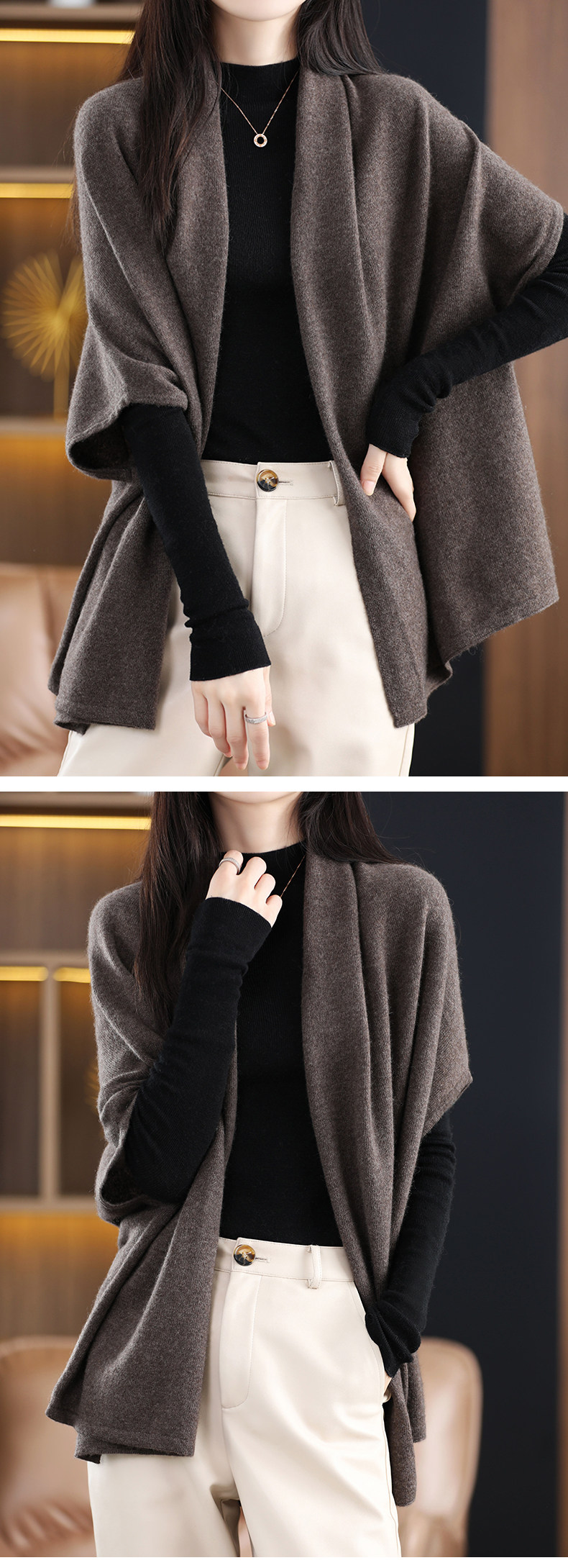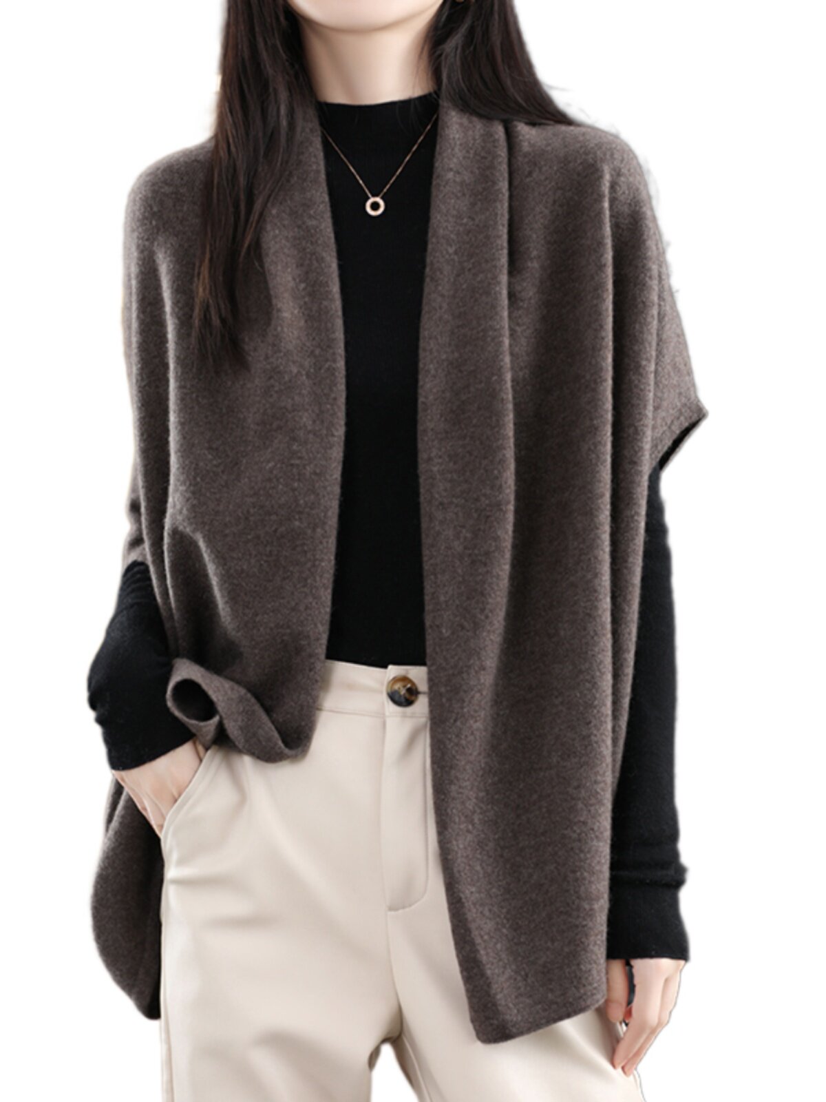 Демисезонная кашемировая накидка, трикотажные шерстяные щипцы, куртка, кардиган