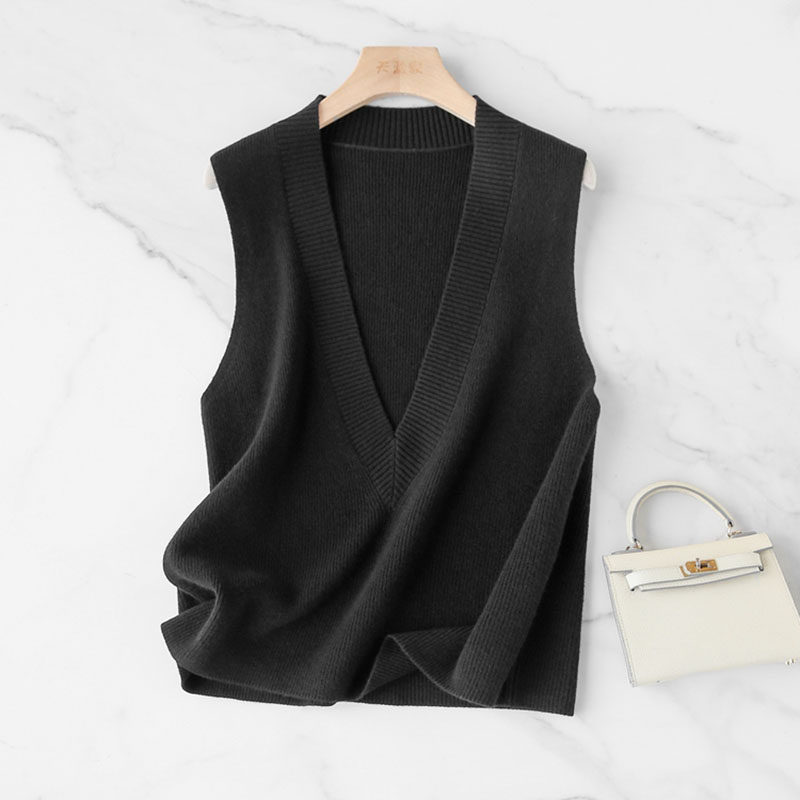 Шерстяной осенний жилет, свободный крой, V-образный вырез