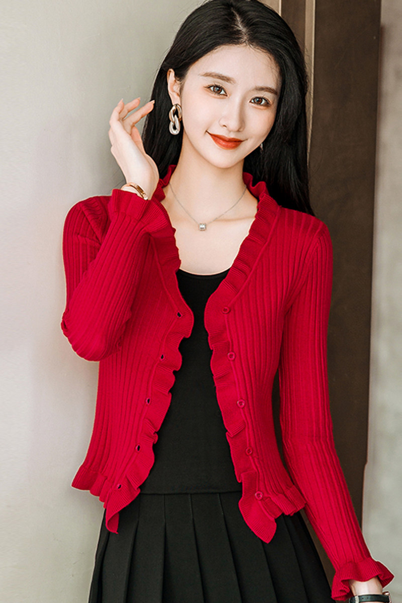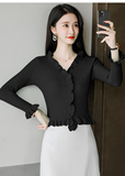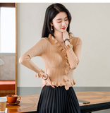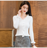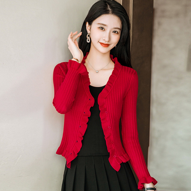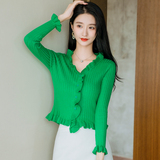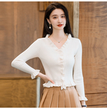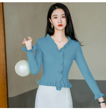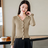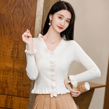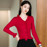 Трикотажный осенний свитер, приталенный кардиган, лонгслив, куртка, 2023, V-образный вырез