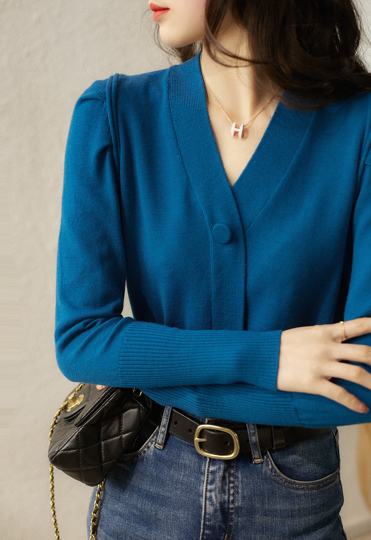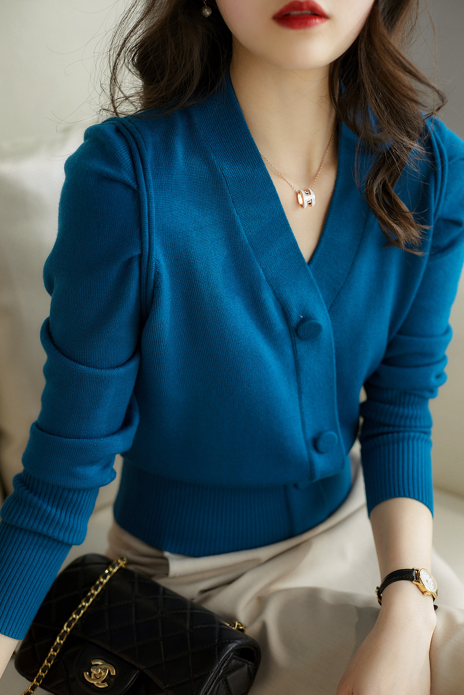 の [ZVD460330AG] Более темпераментная, чистая шерстяная манжета с пузырькой v -neck, чем другие