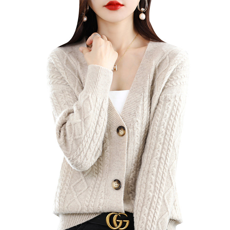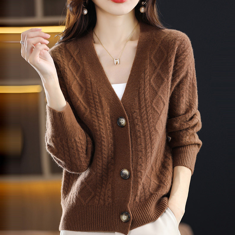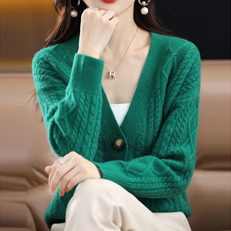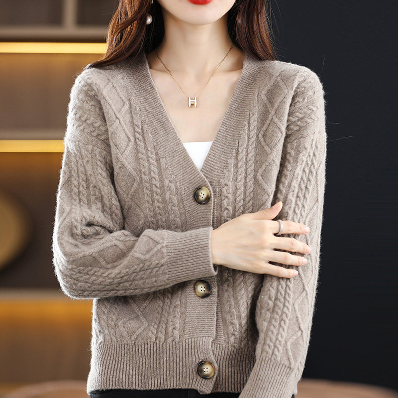 Демисезонный трикотажный свитер, шерстяной утепленный кардиган, V-образный вырез