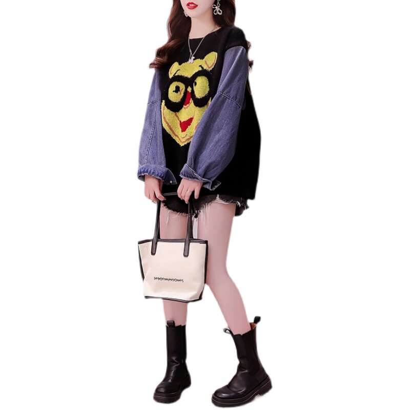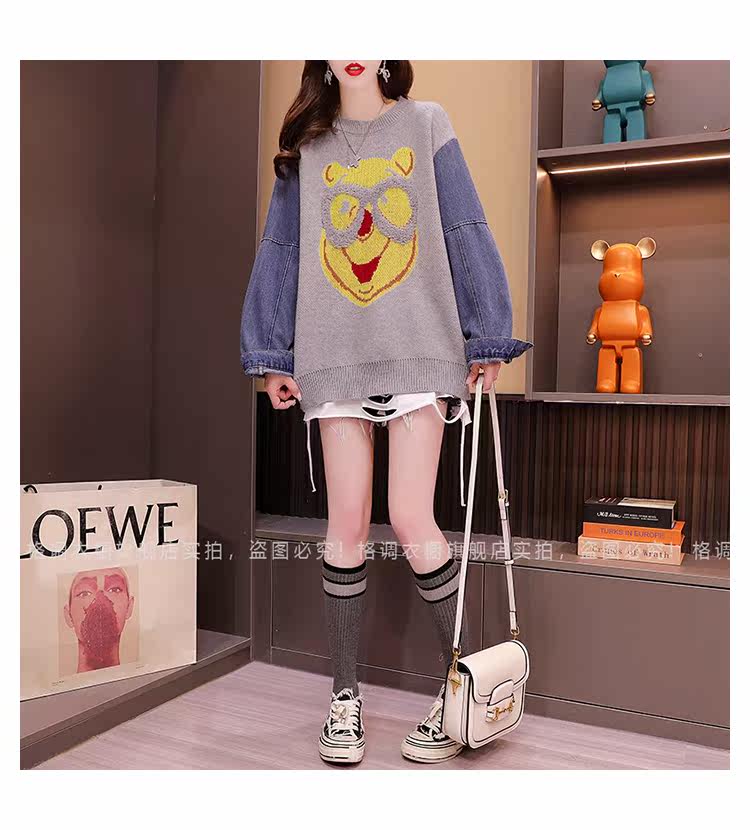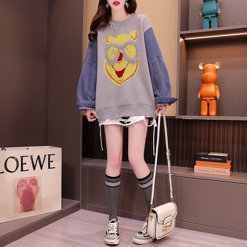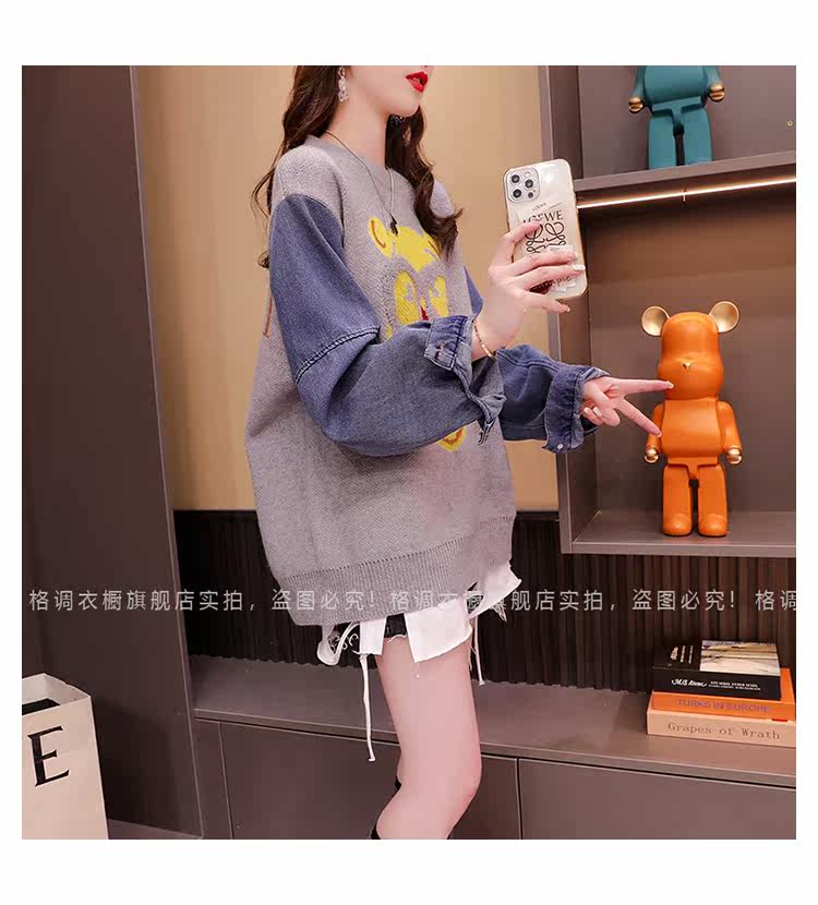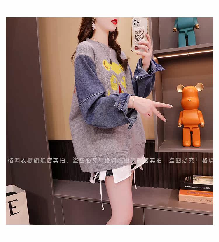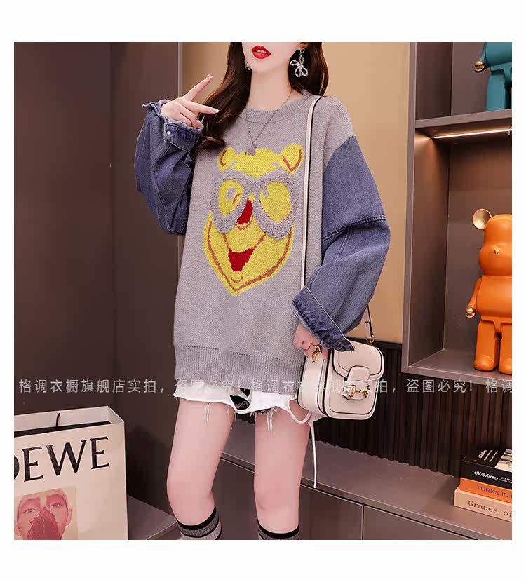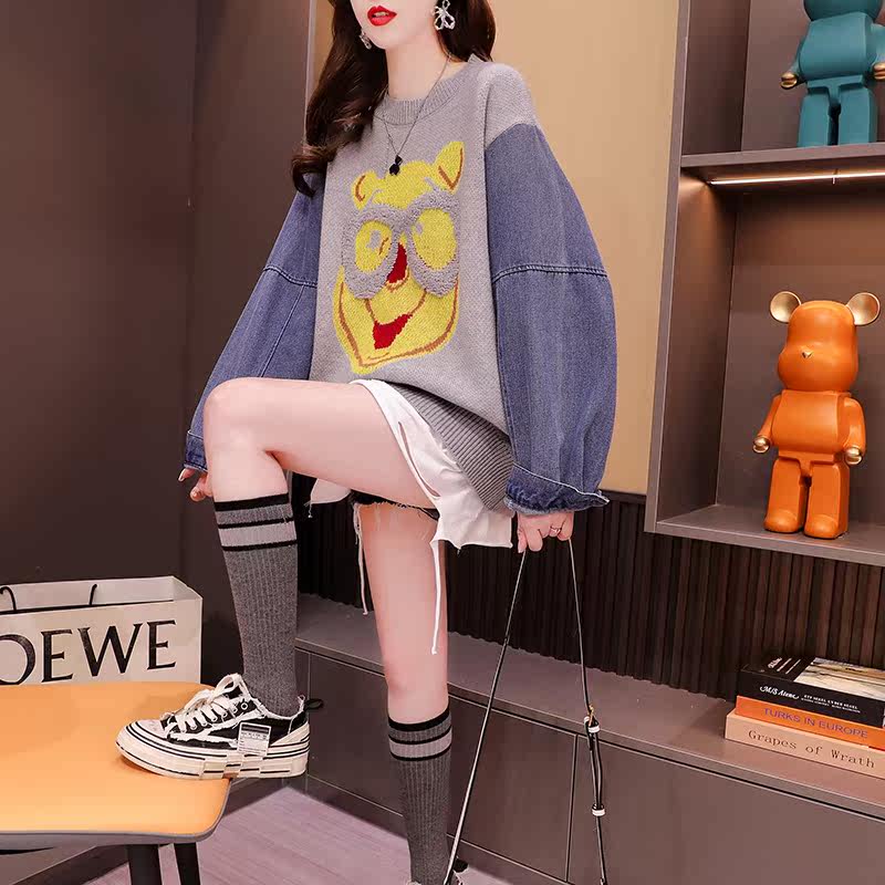 Джинсовый демисезонный дизайнерский трикотажный свитер, коллекция 2023, в западном стиле, свободный крой, тренд сезона