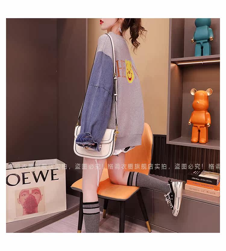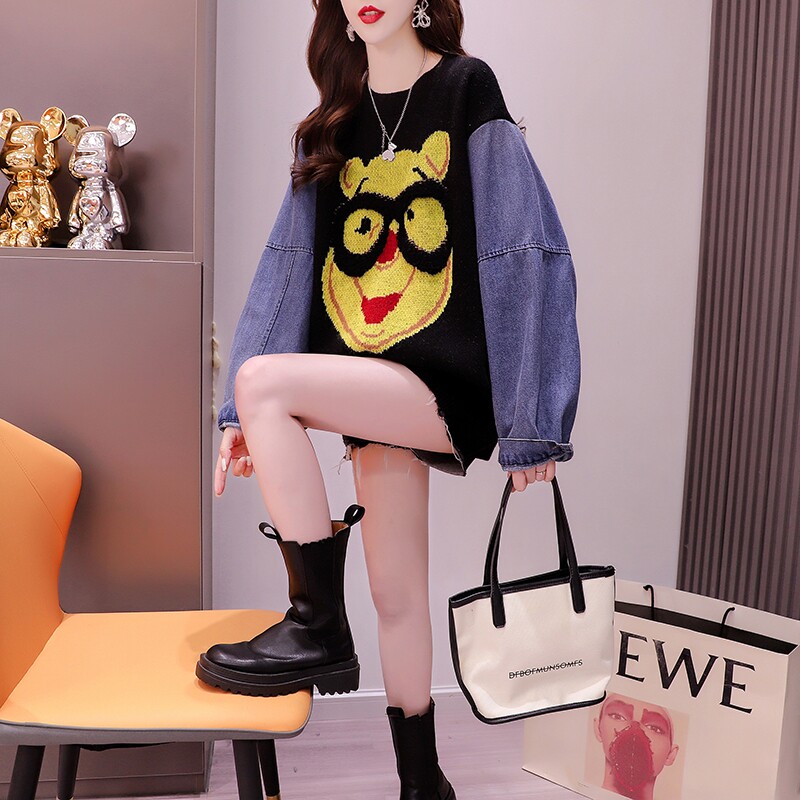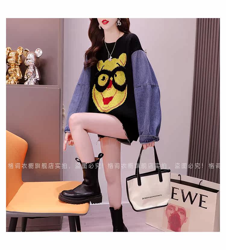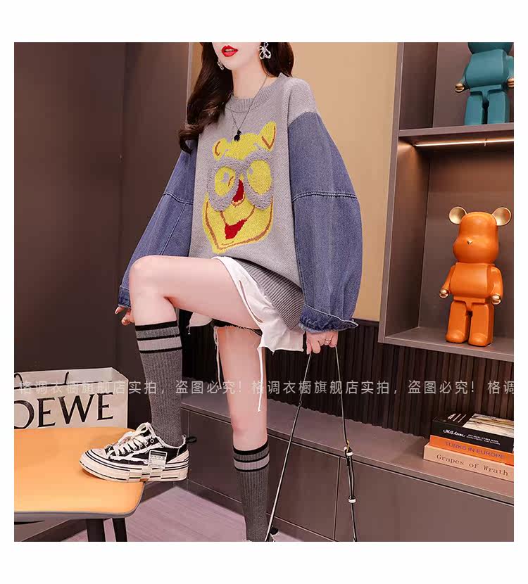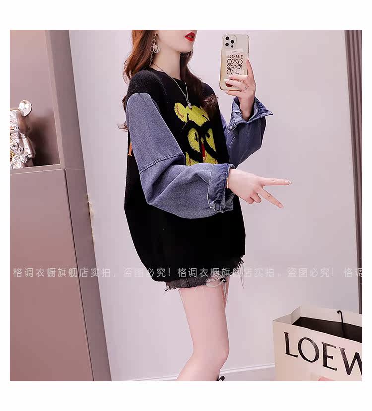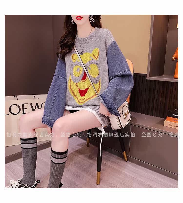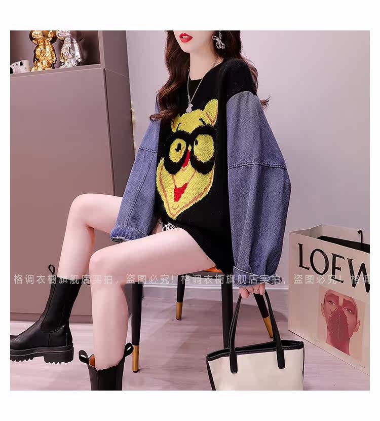 Джинсовый демисезонный дизайнерский трикотажный свитер, коллекция 2023, в западном стиле, свободный крой, тренд сезона
