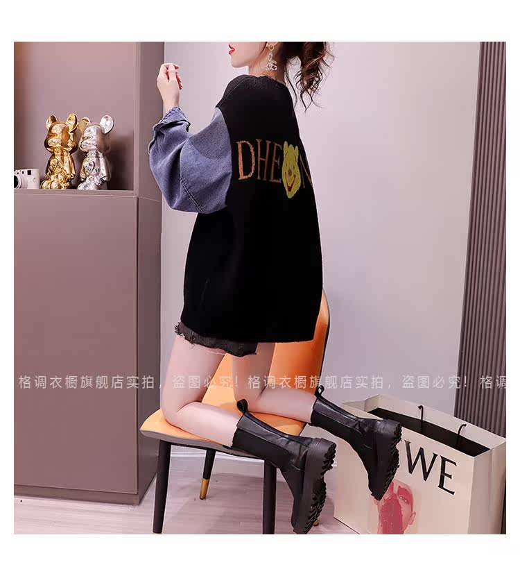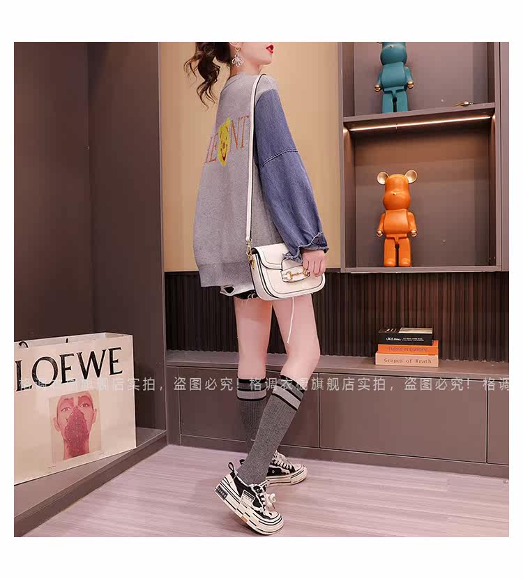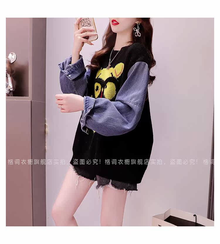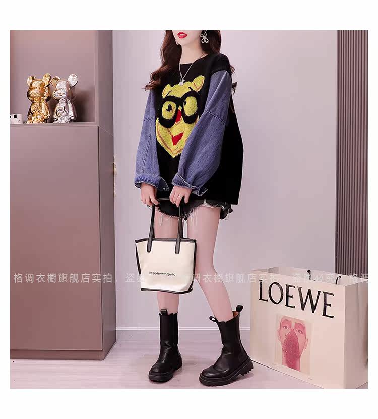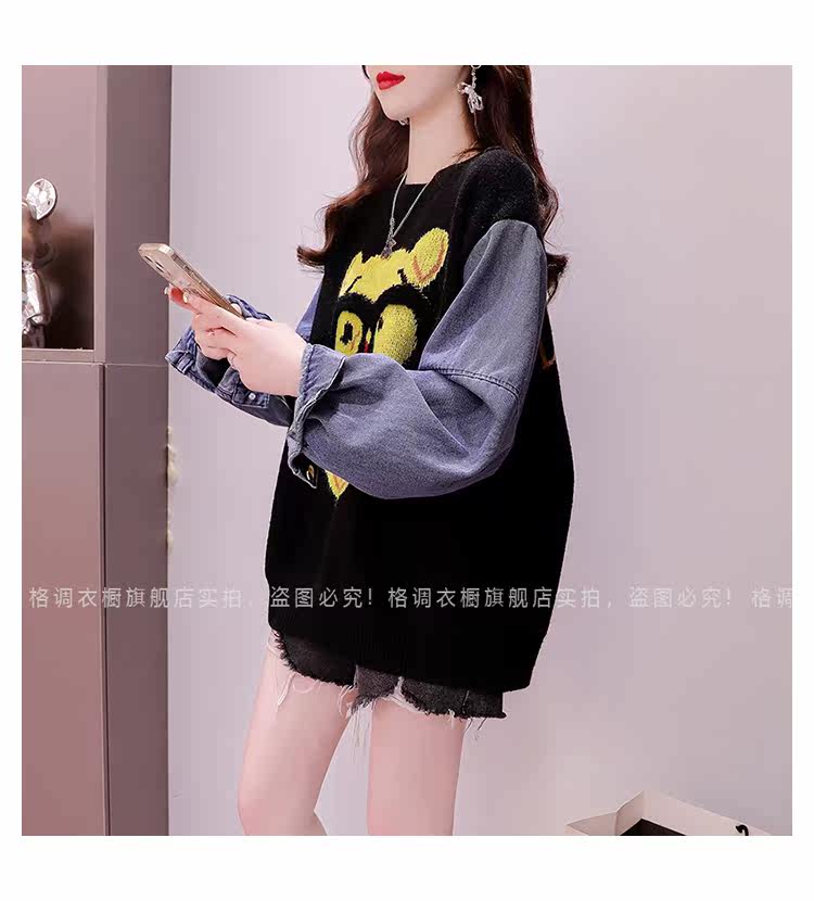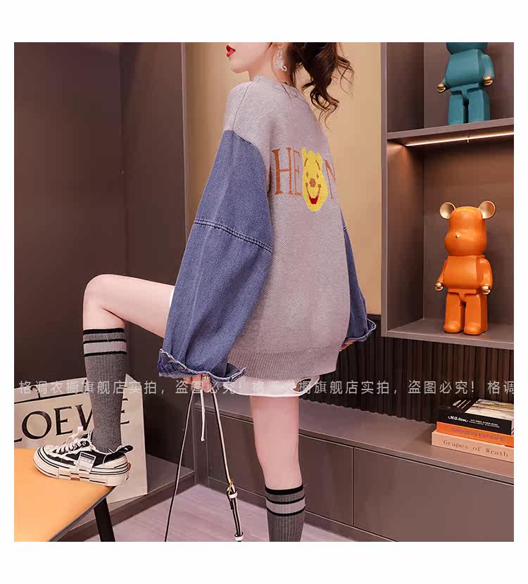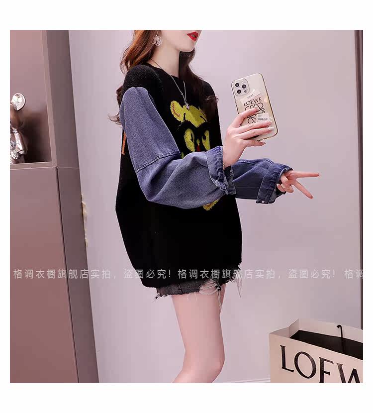 Джинсовый демисезонный дизайнерский трикотажный свитер, коллекция 2023, в западном стиле, свободный крой, тренд сезона