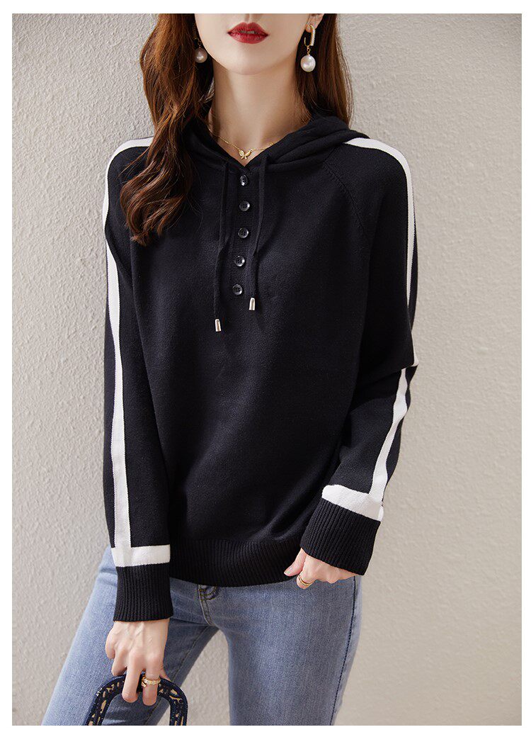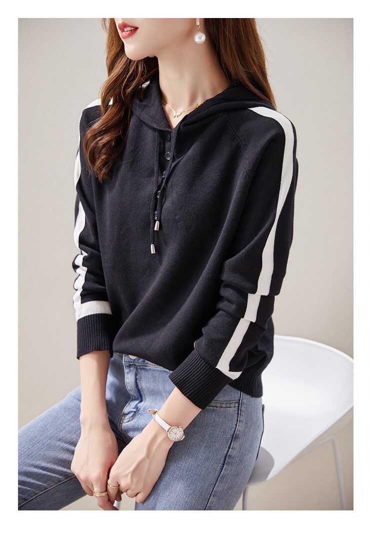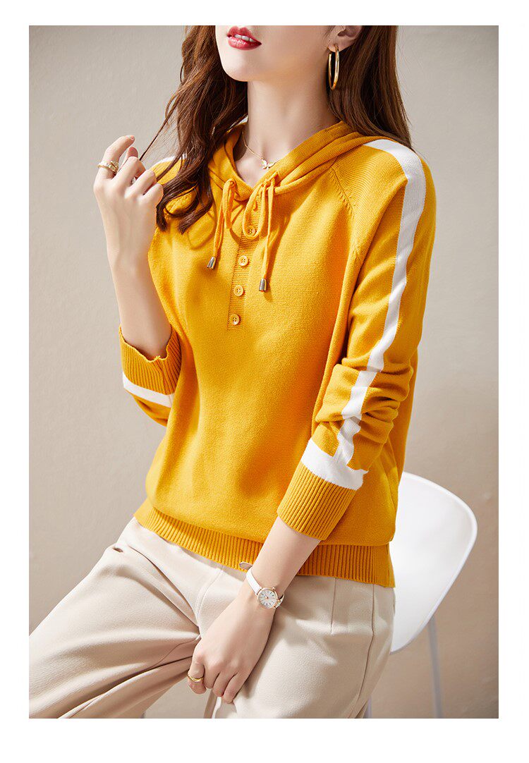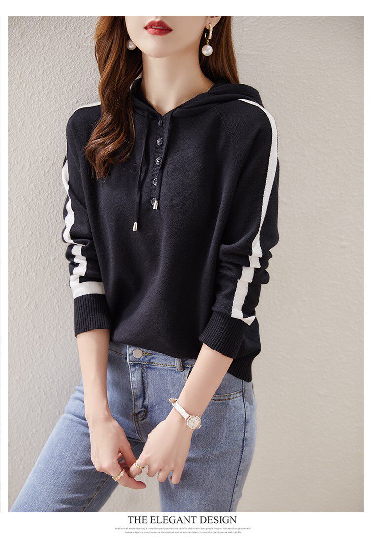 Трикотажный осенний модный свитер с капюшоном, 2025 года, городской стиль, в западном стиле