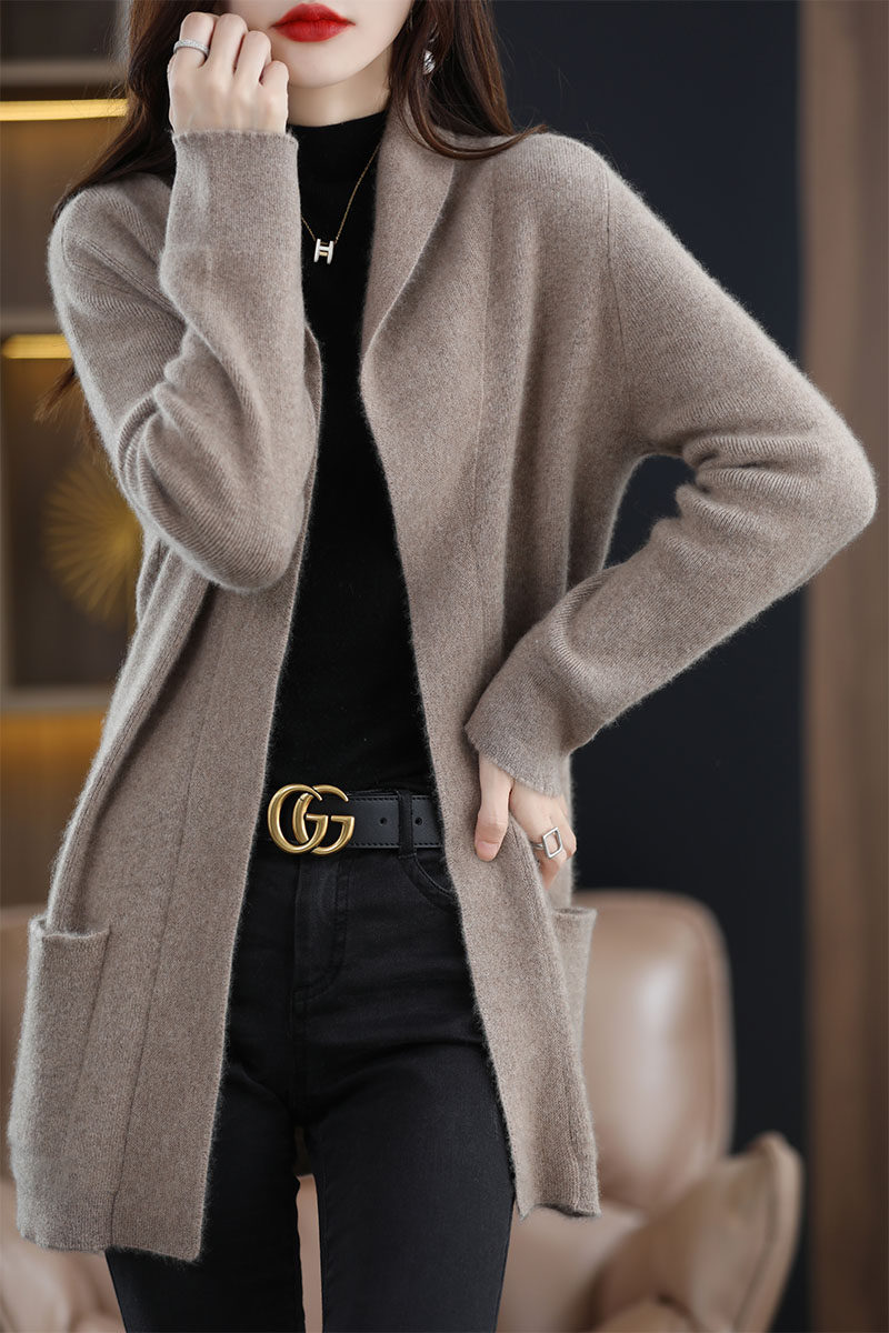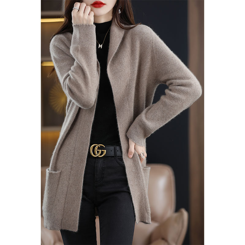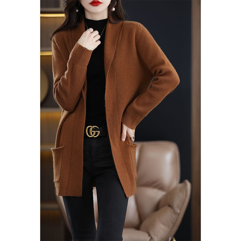 Демисезонный шерстяной кардиган, кашемировая куртка, увеличенная толщина