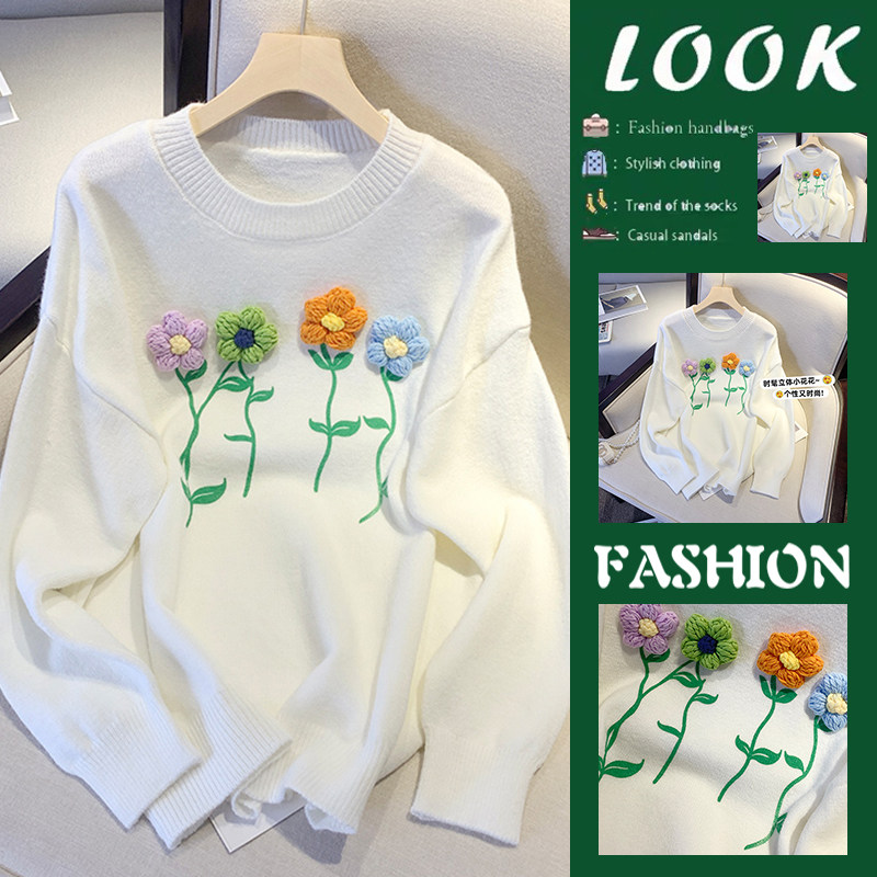 (Трансграничная торговля), японский милый трехмерный трикотажный свитер, в цветочек