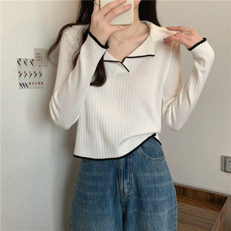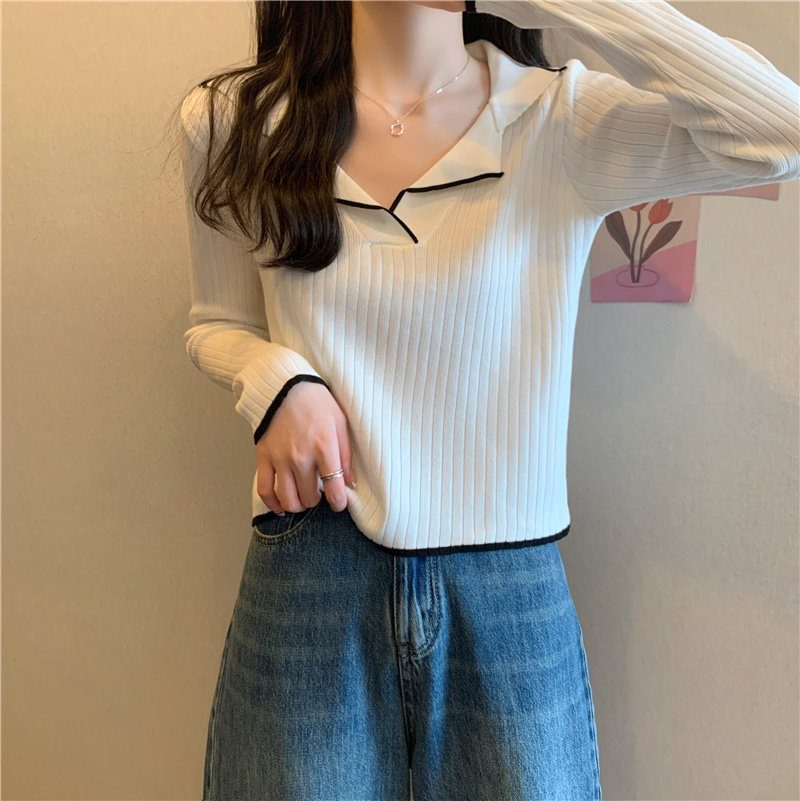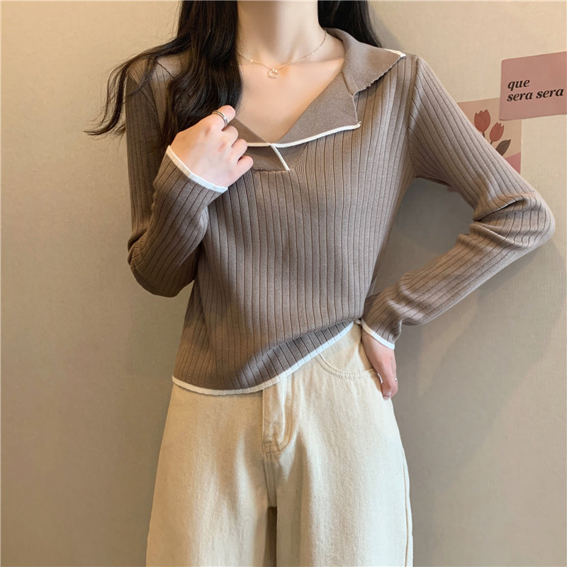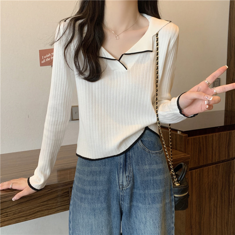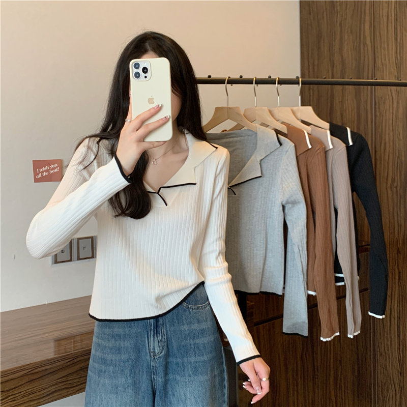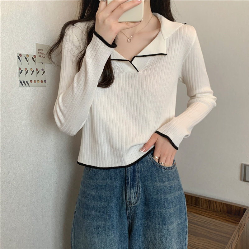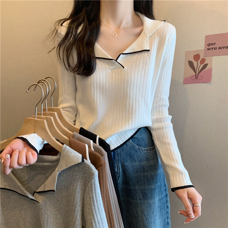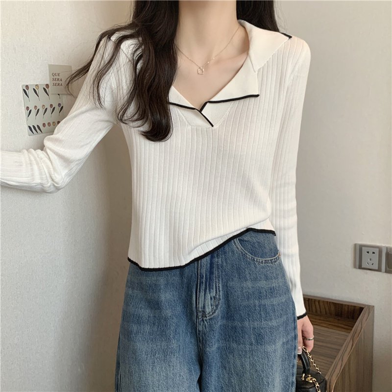 Тонкий приталенный трикотажный лонгслив, дизайнерский демисезонный свитер, тренд сезона, воротник поло
