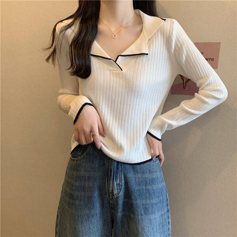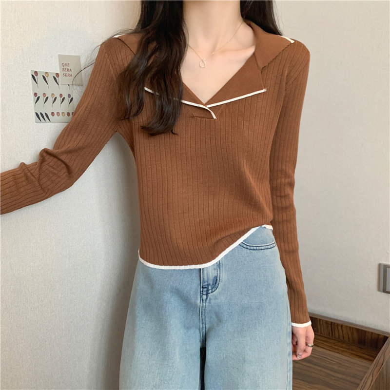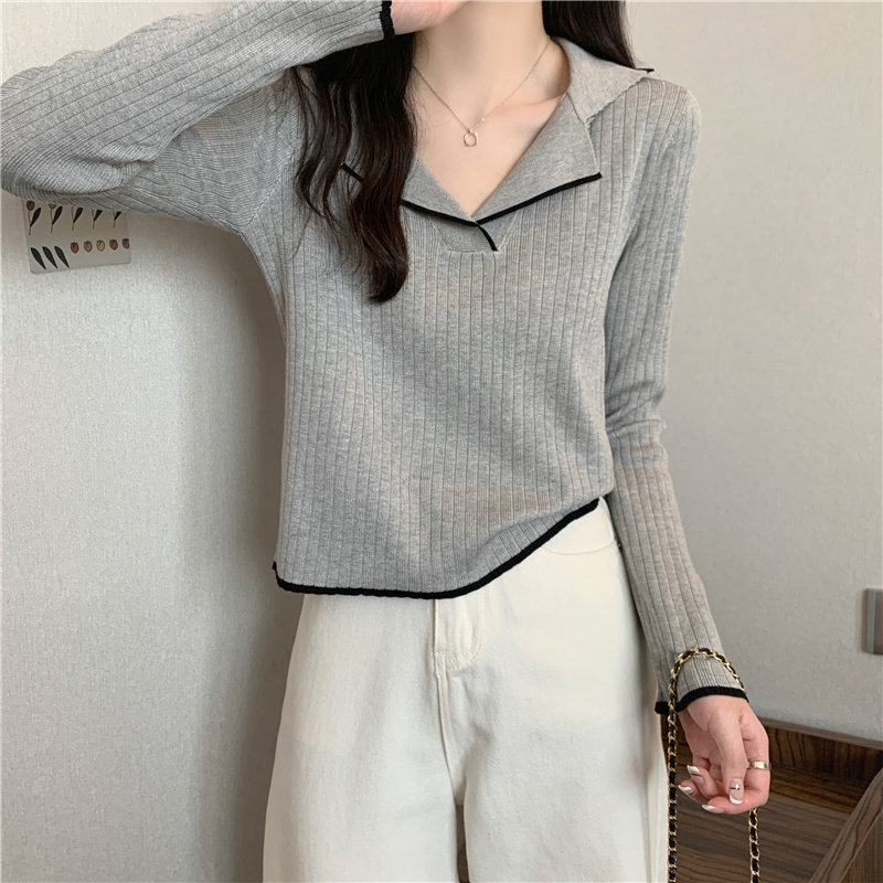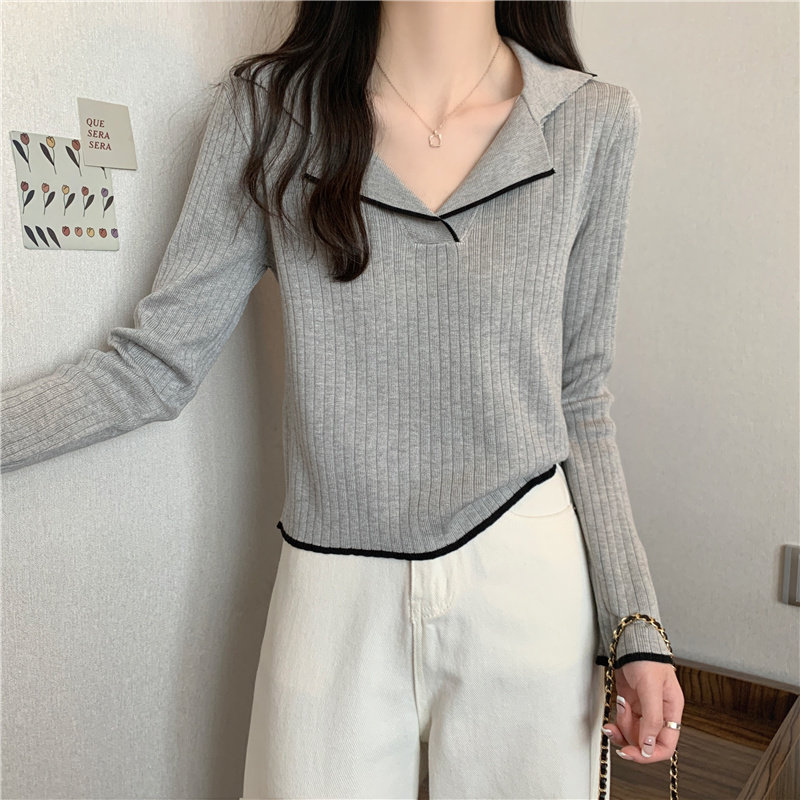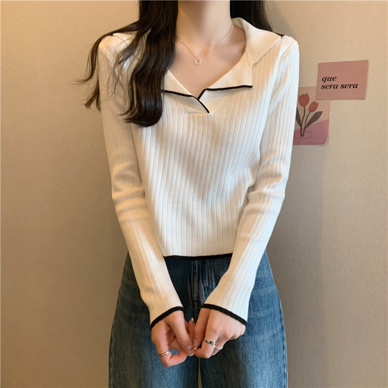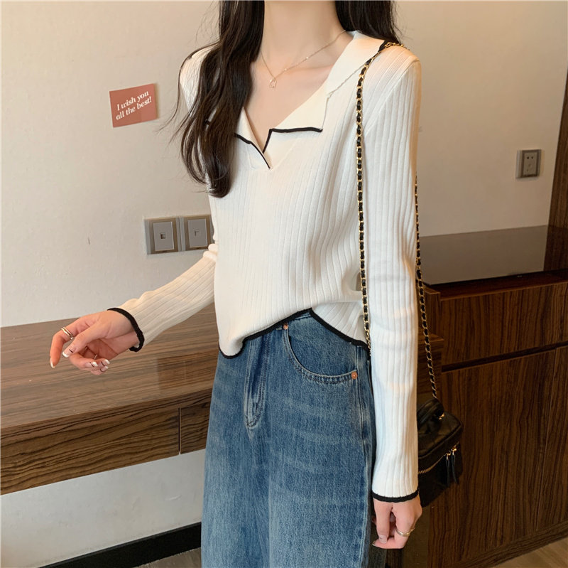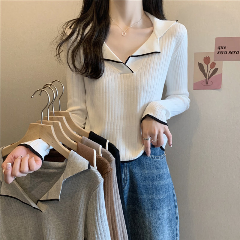 Тонкий приталенный трикотажный лонгслив, дизайнерский демисезонный свитер, тренд сезона, воротник поло