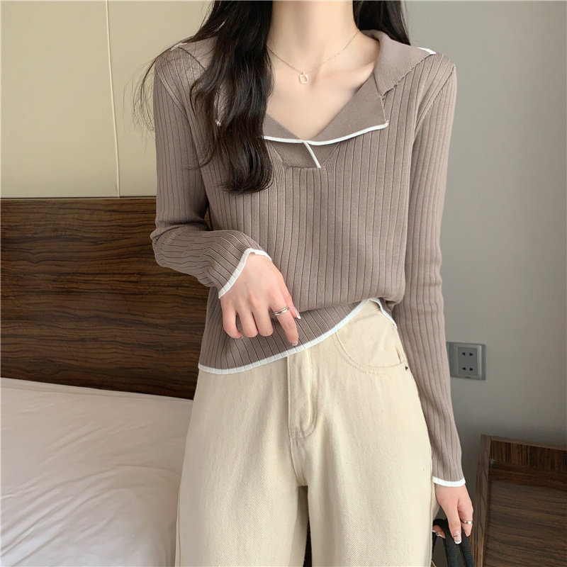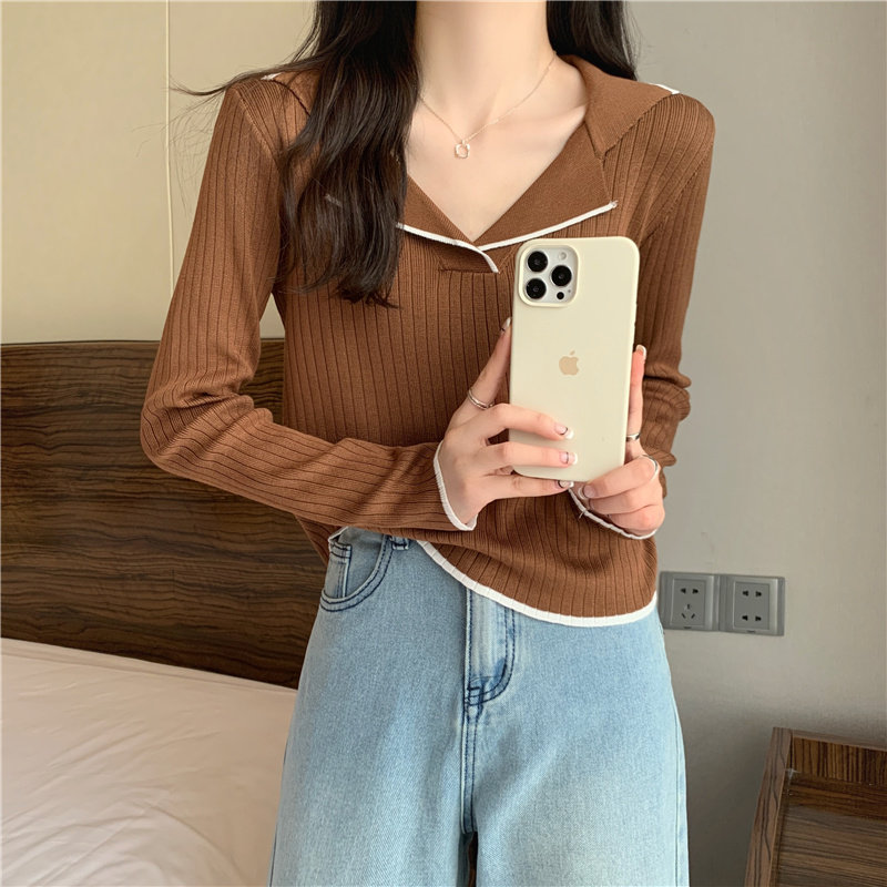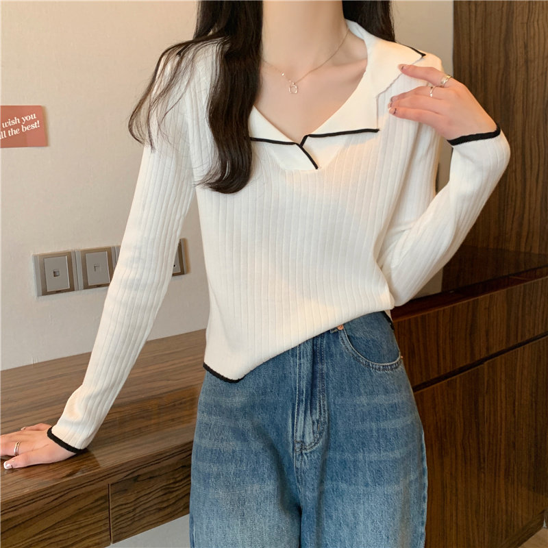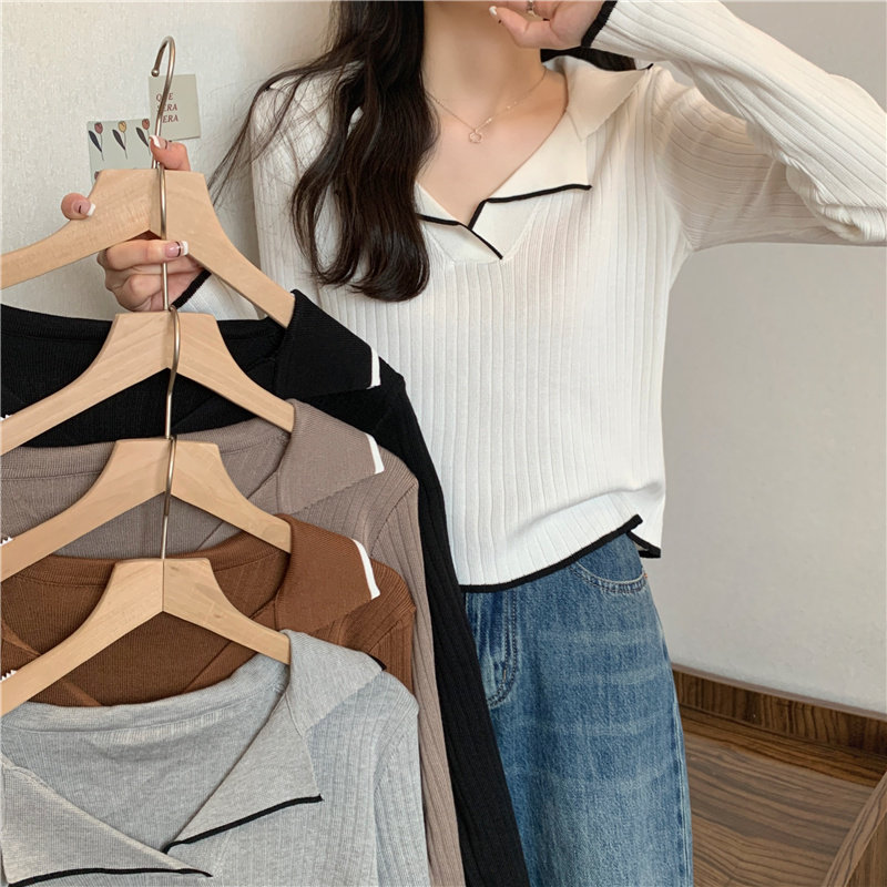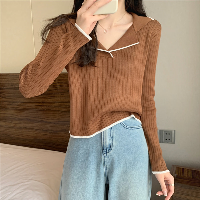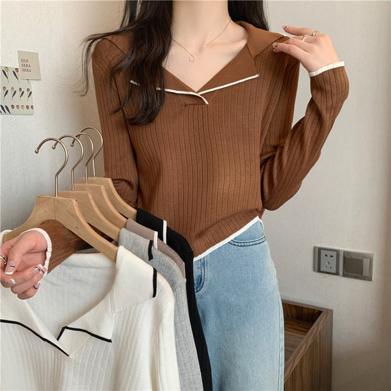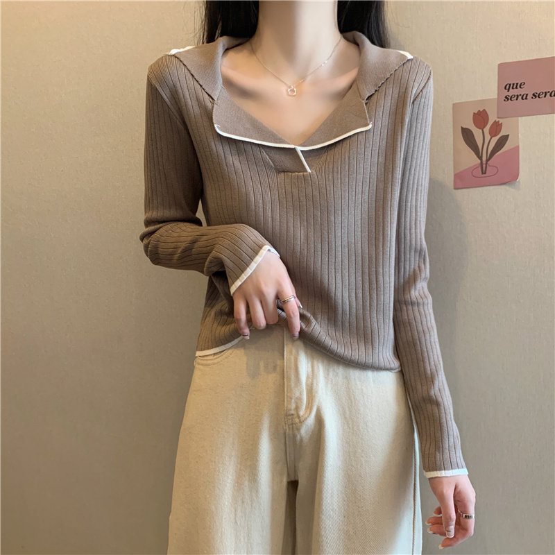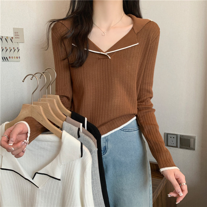 Тонкий приталенный трикотажный лонгслив, дизайнерский демисезонный свитер, тренд сезона, воротник поло