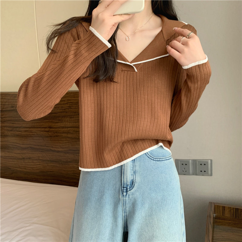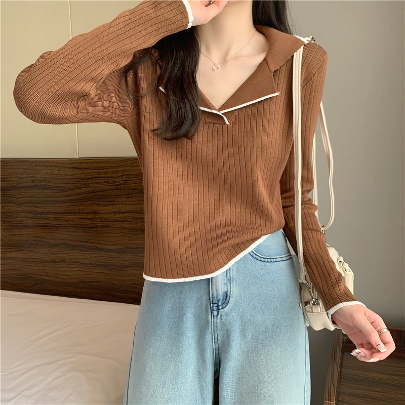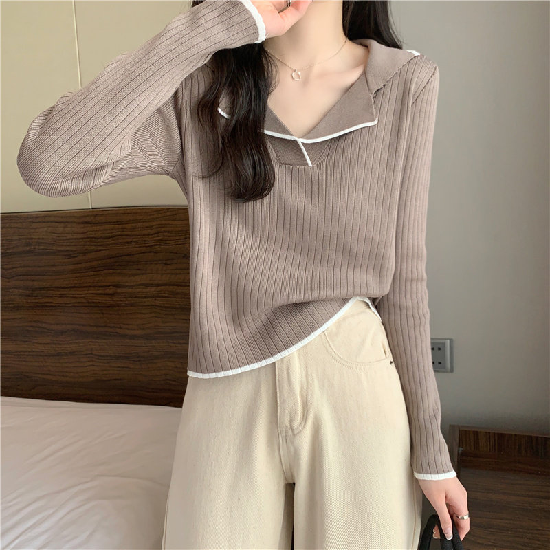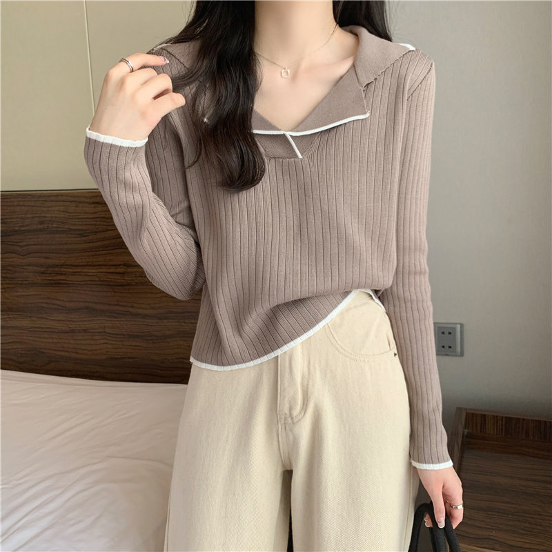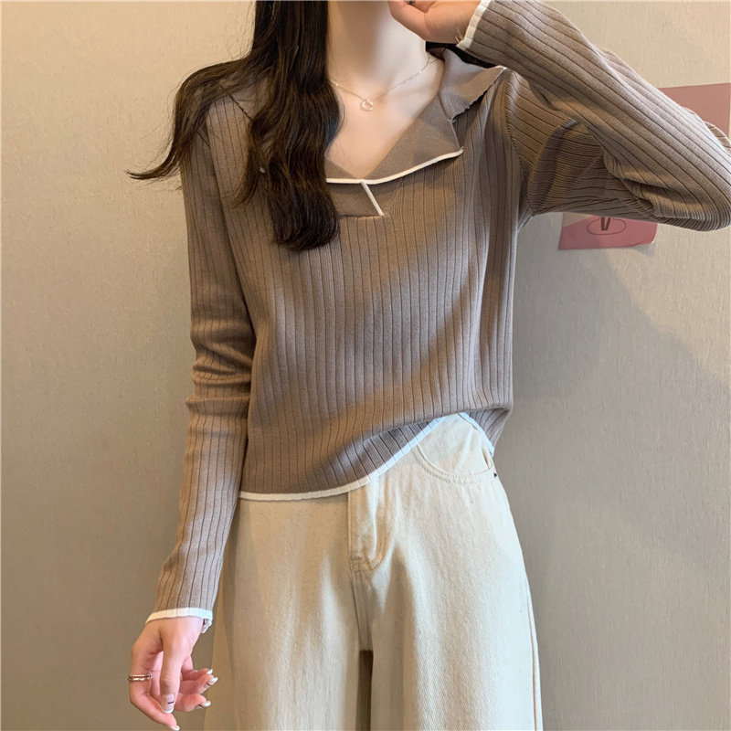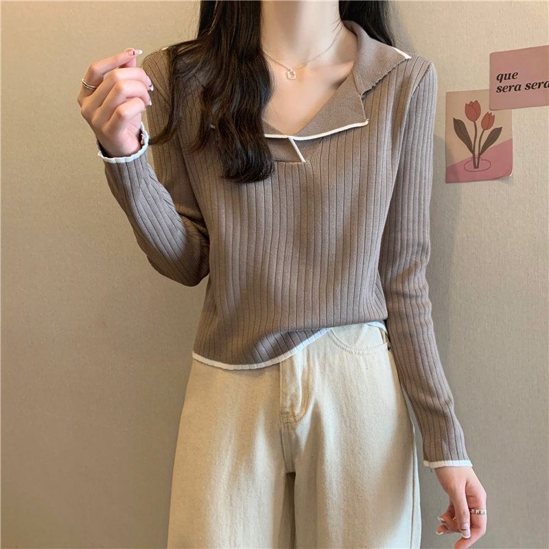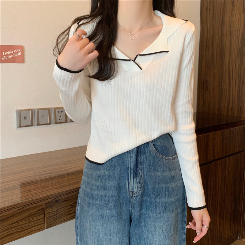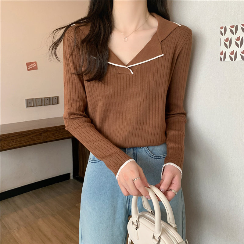Тонкий приталенный трикотажный лонгслив, дизайнерский демисезонный свитер, тренд сезона, воротник поло