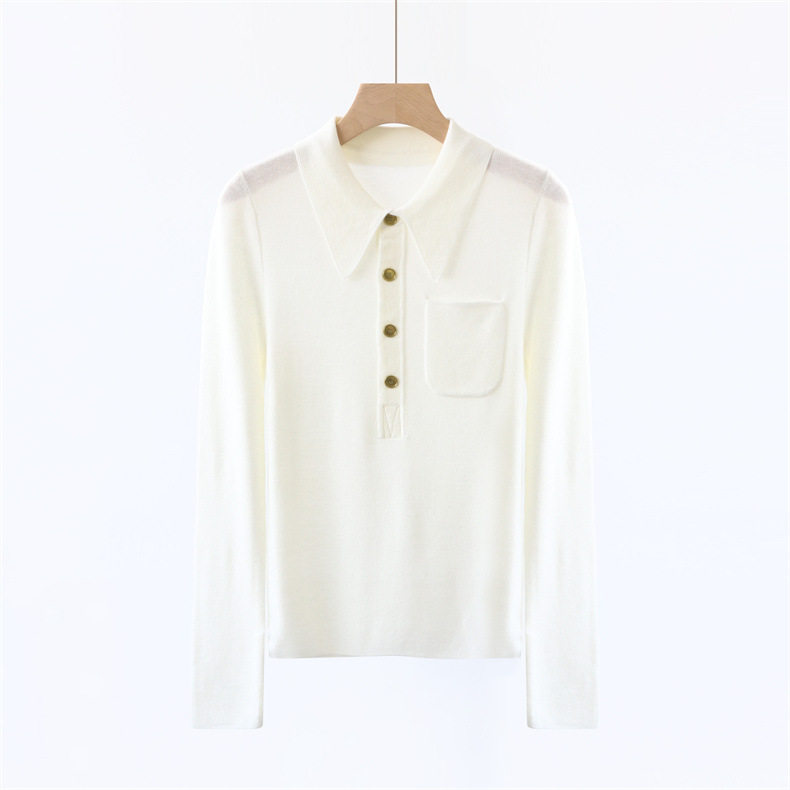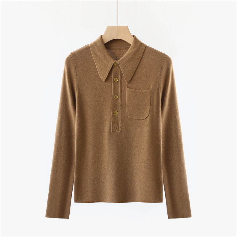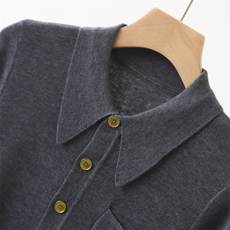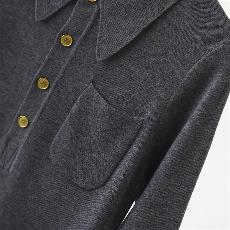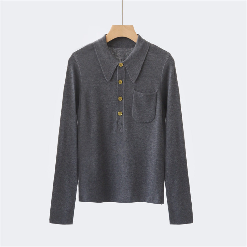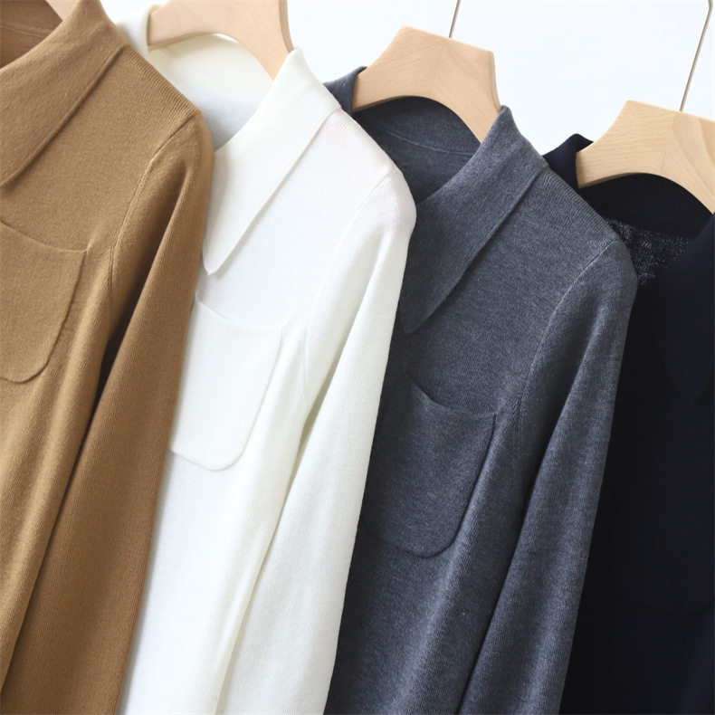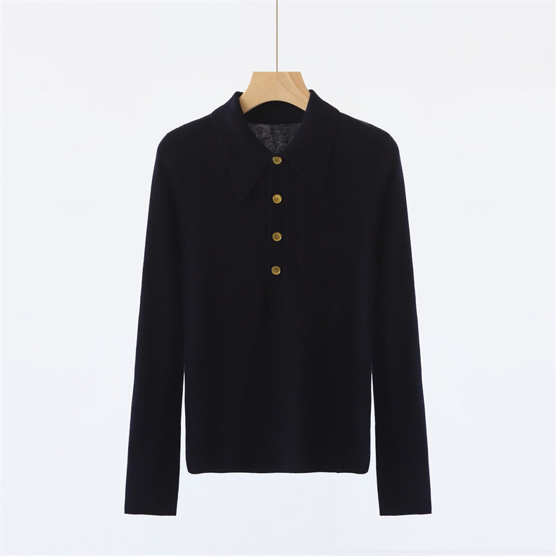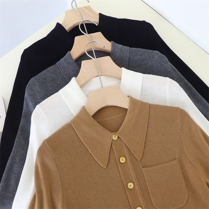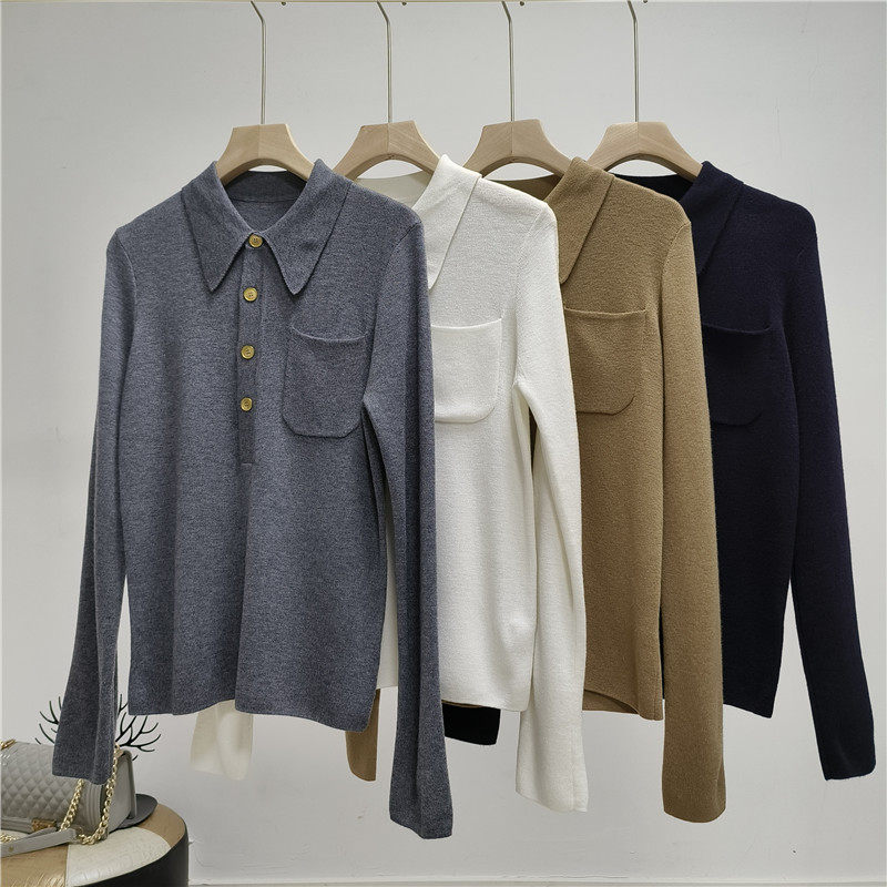 Модный шерстяной базовый приятный телу свитер, французский стиль, воротник поло, облегающий крой, в западном стиле