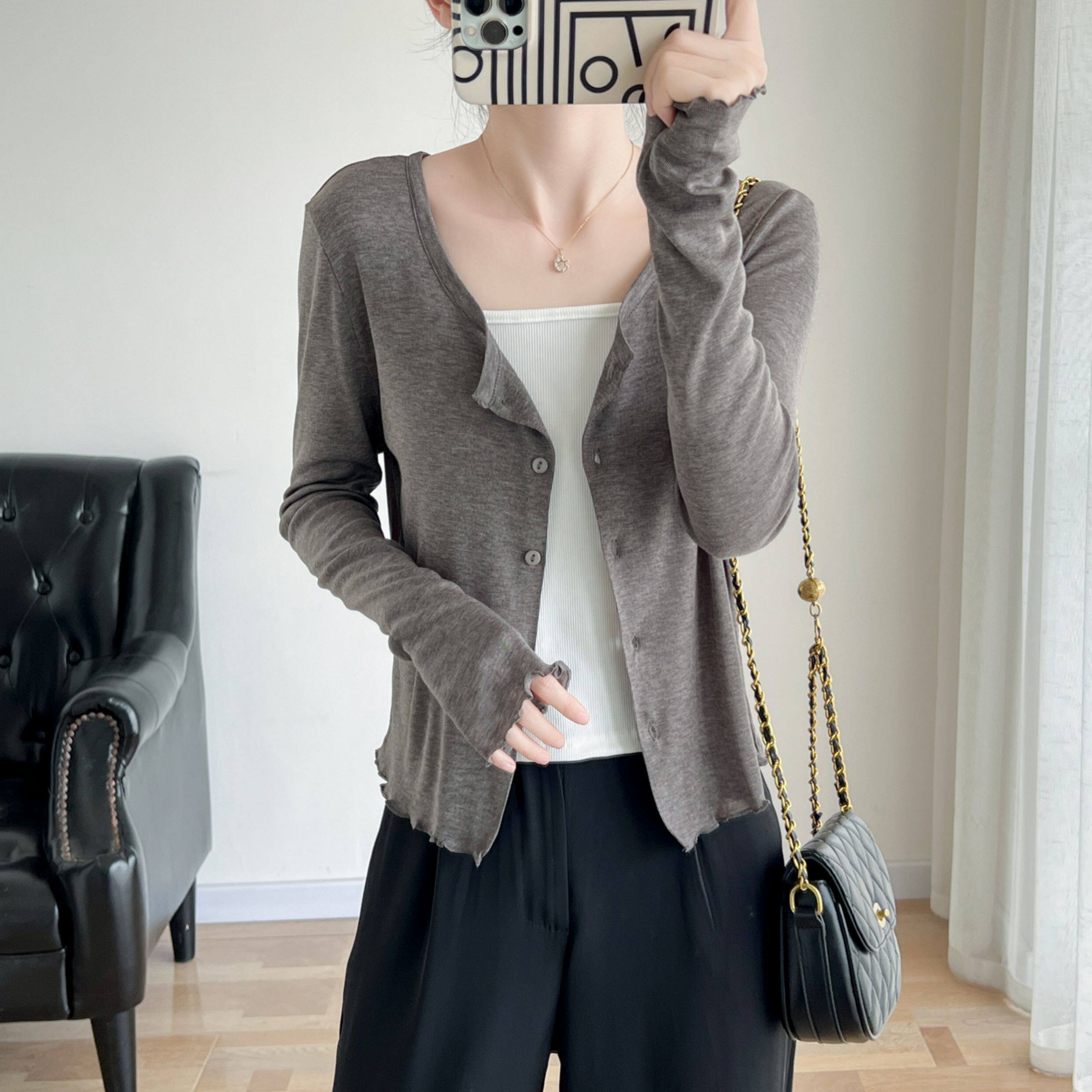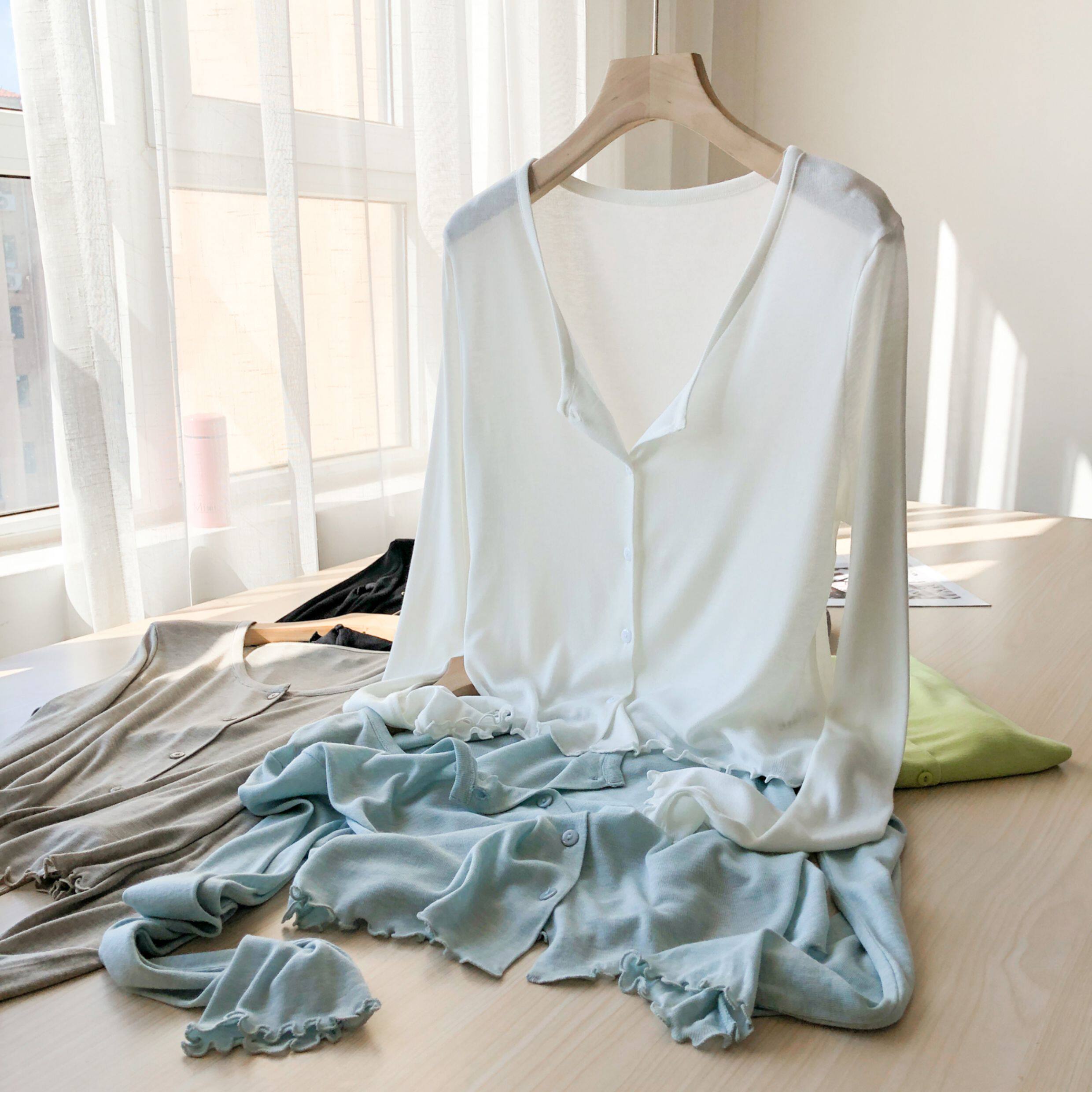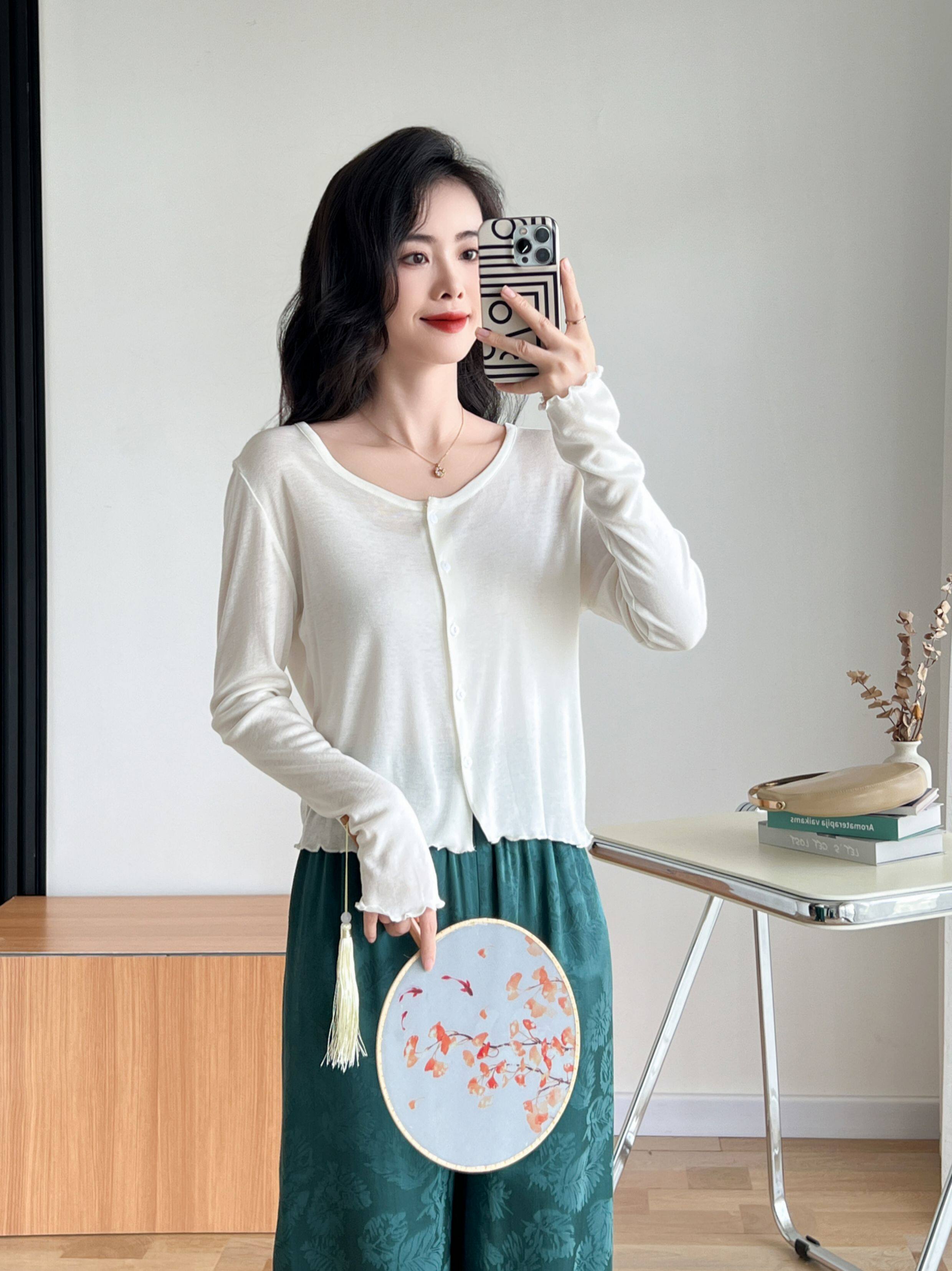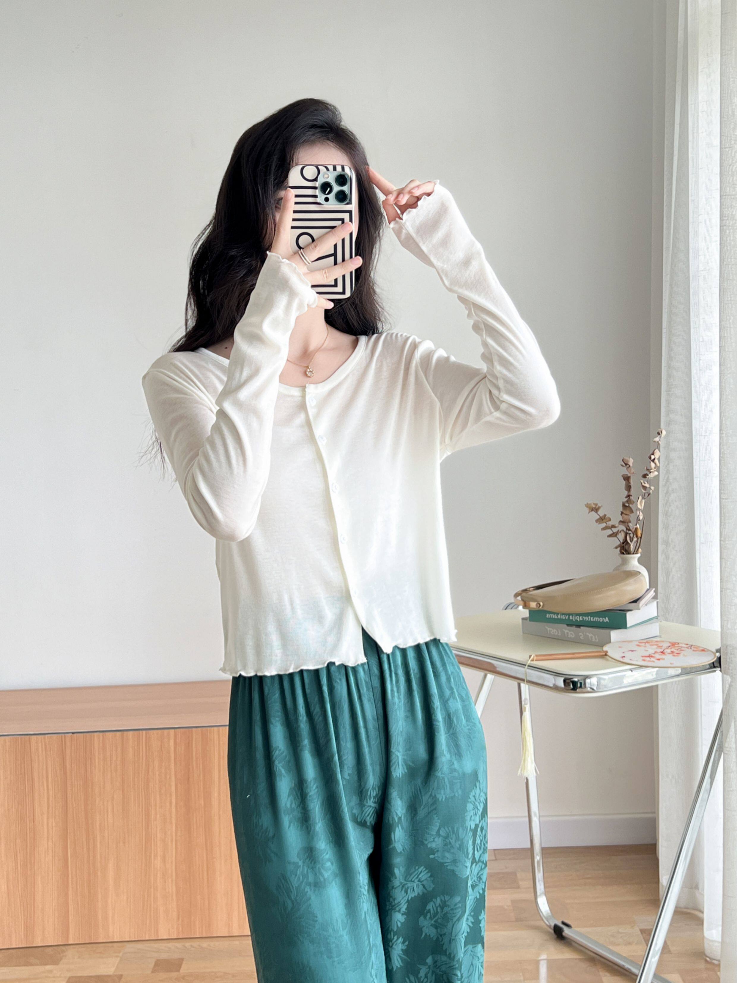 Кардиган, комфортная шелковая рубашка, лонгслив с круглым воротником, маска для лица, защита от солнца