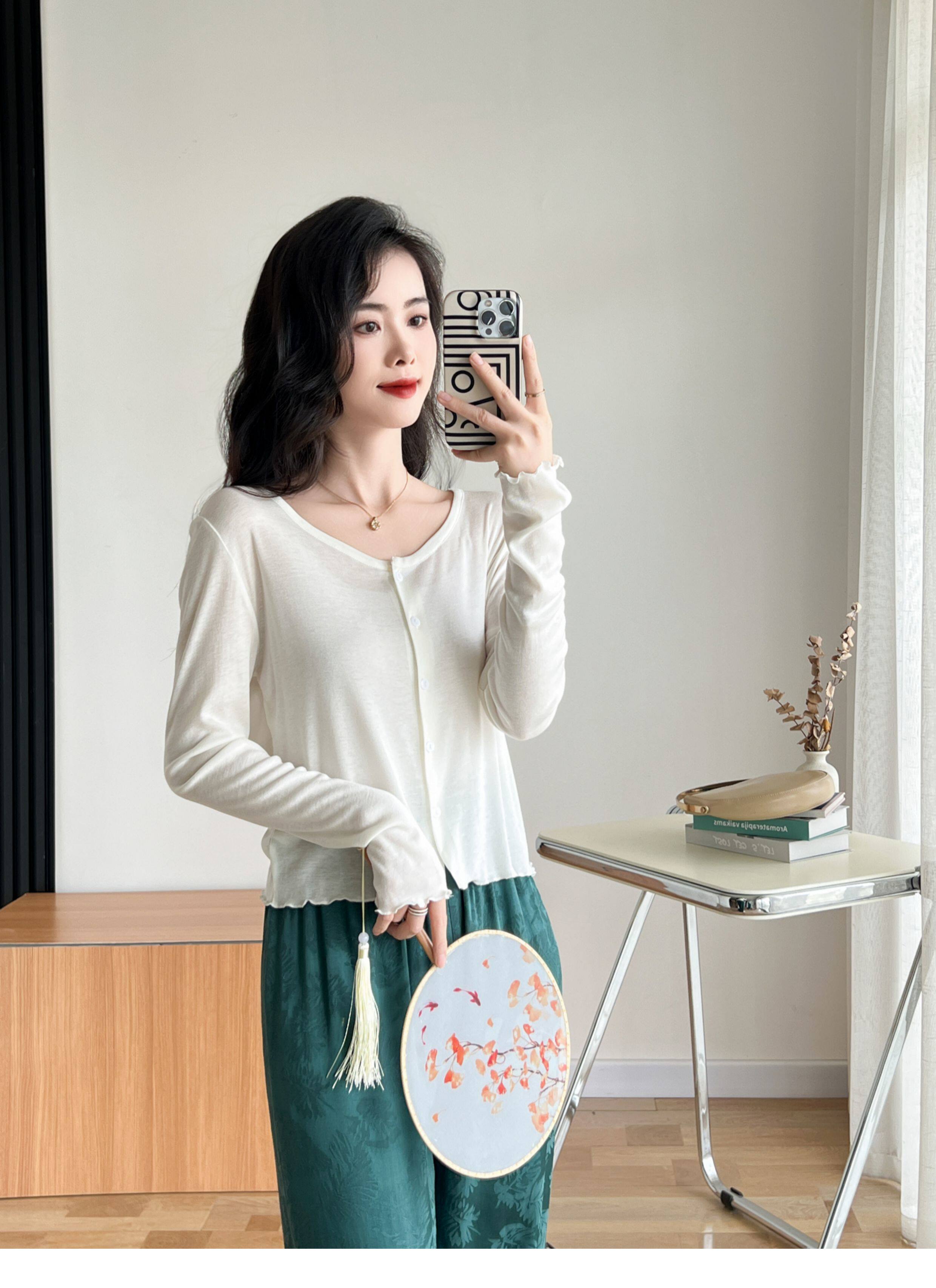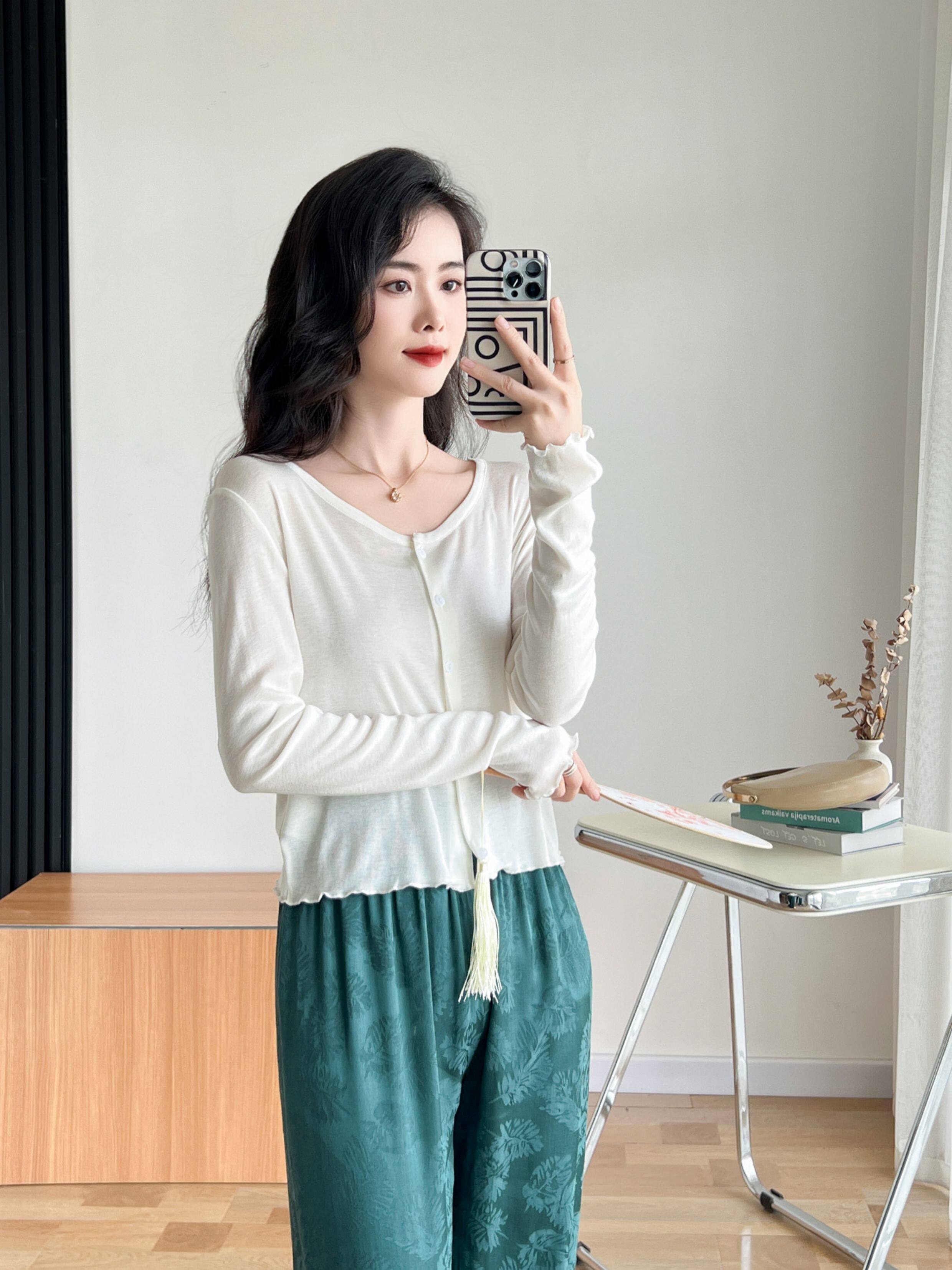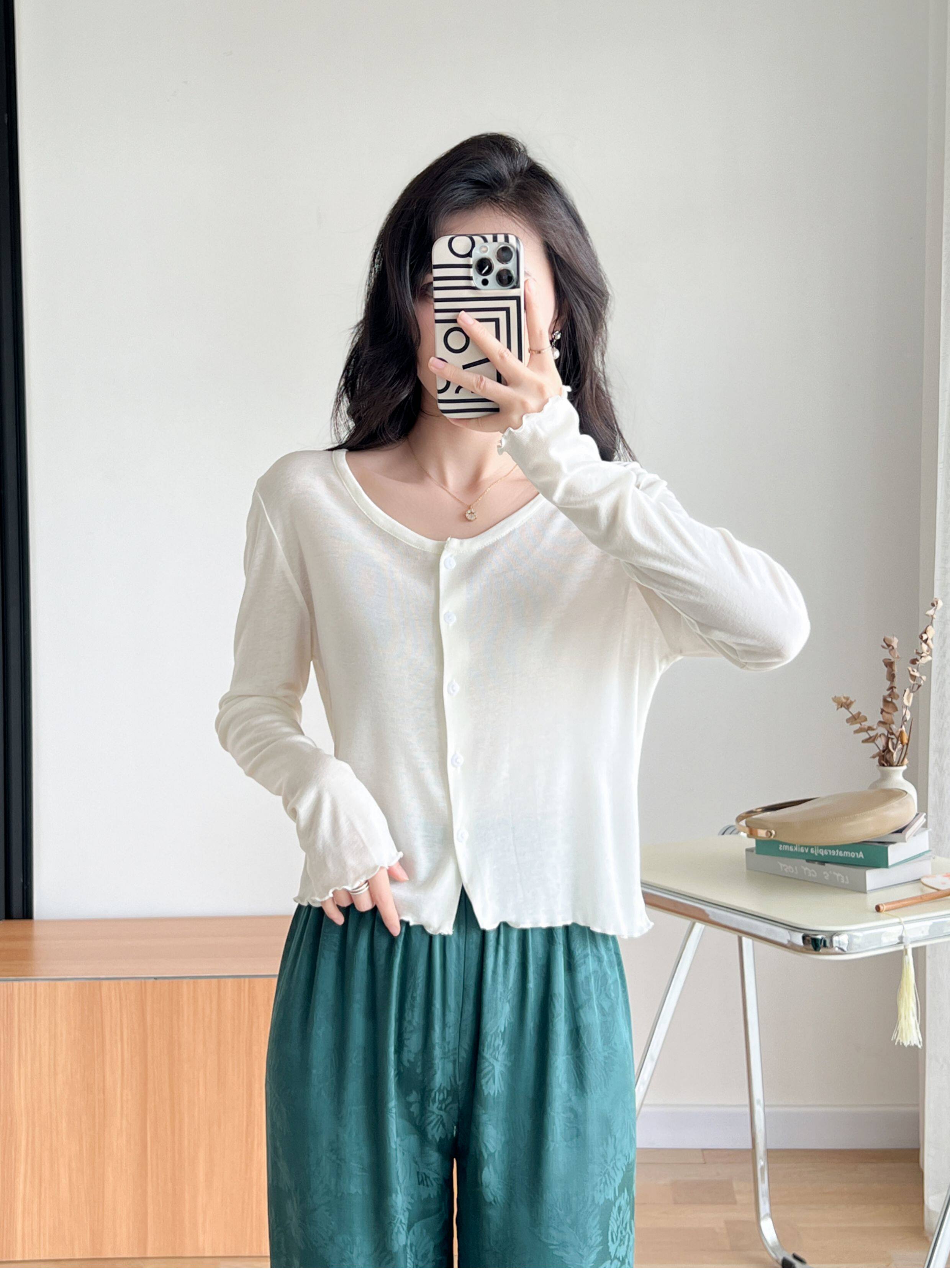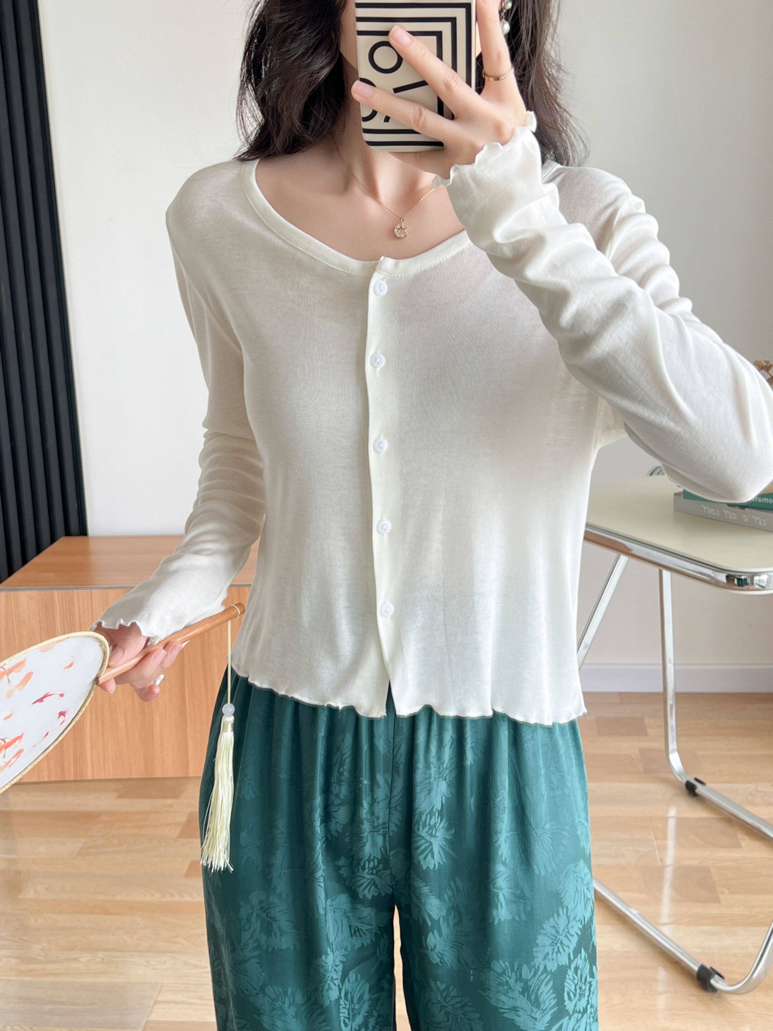 Кардиган, комфортная шелковая рубашка, лонгслив с круглым воротником, маска для лица, защита от солнца