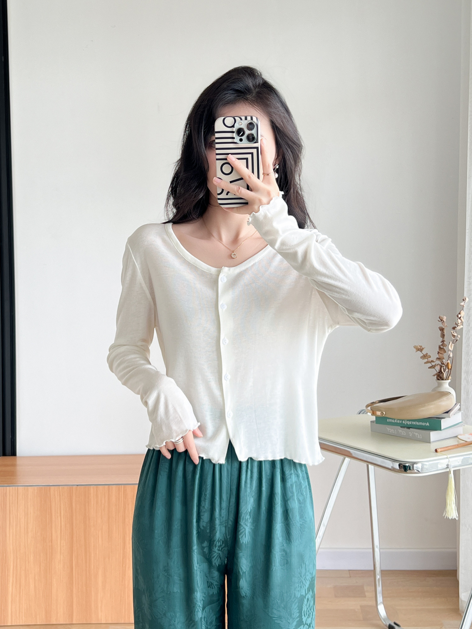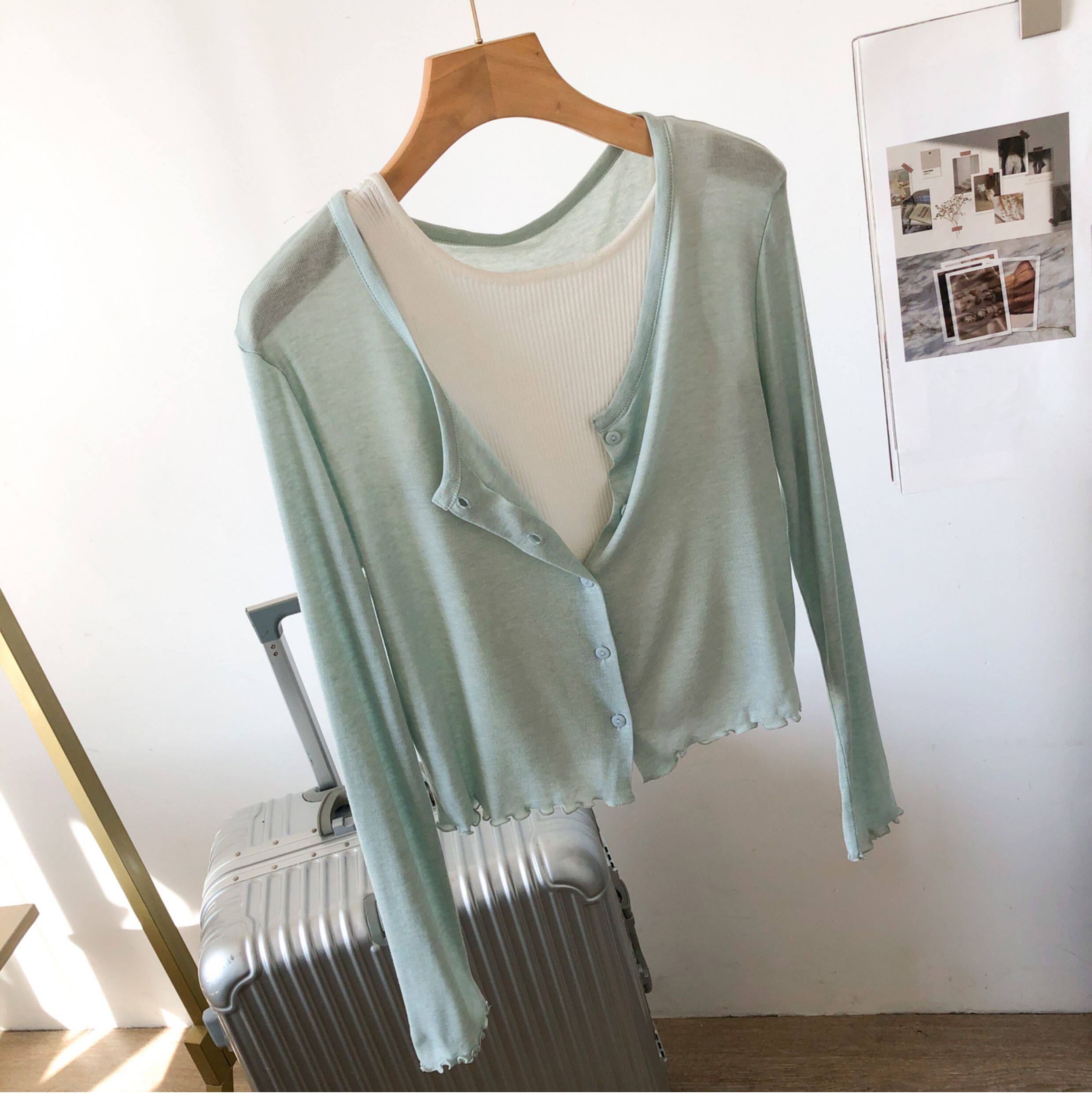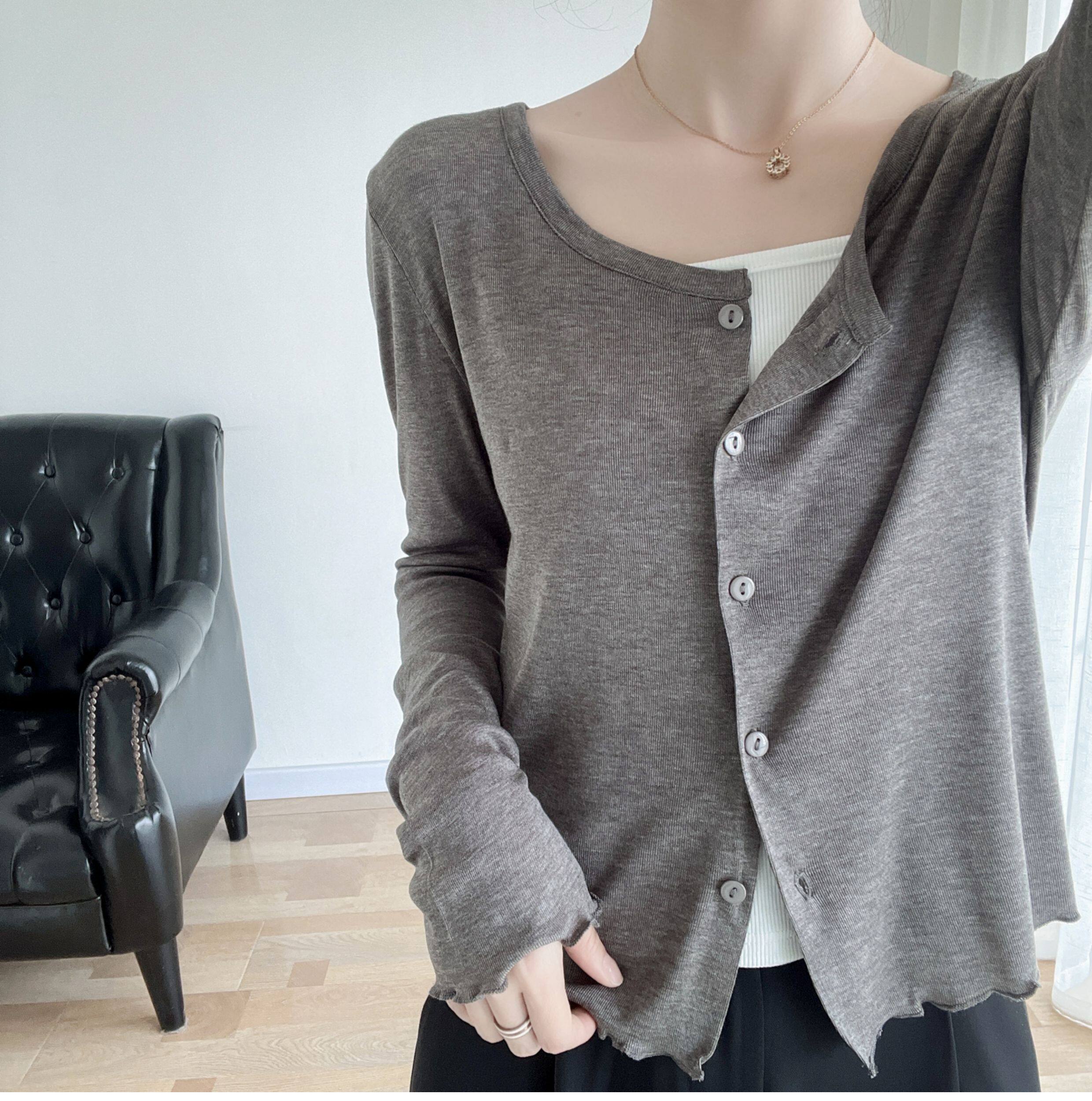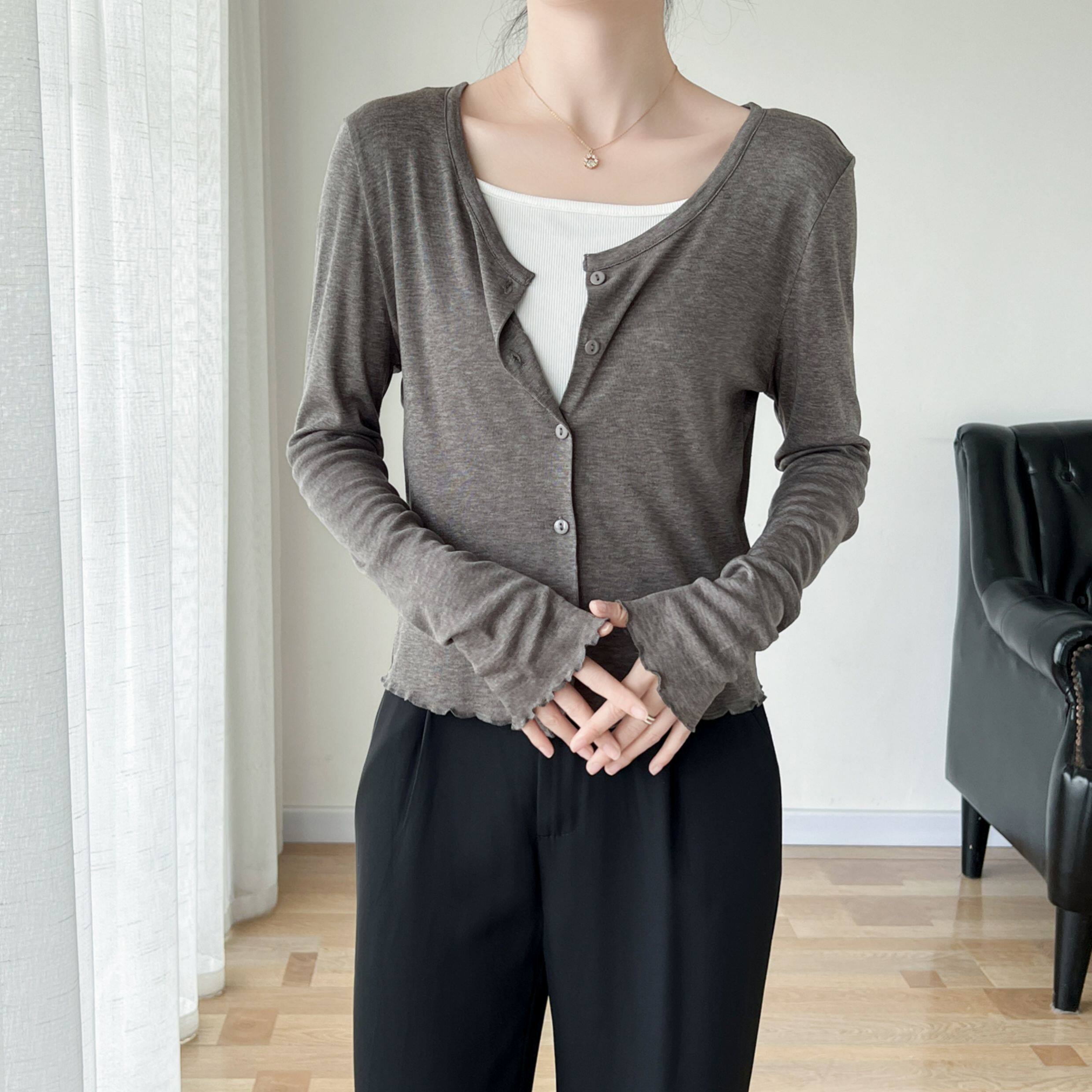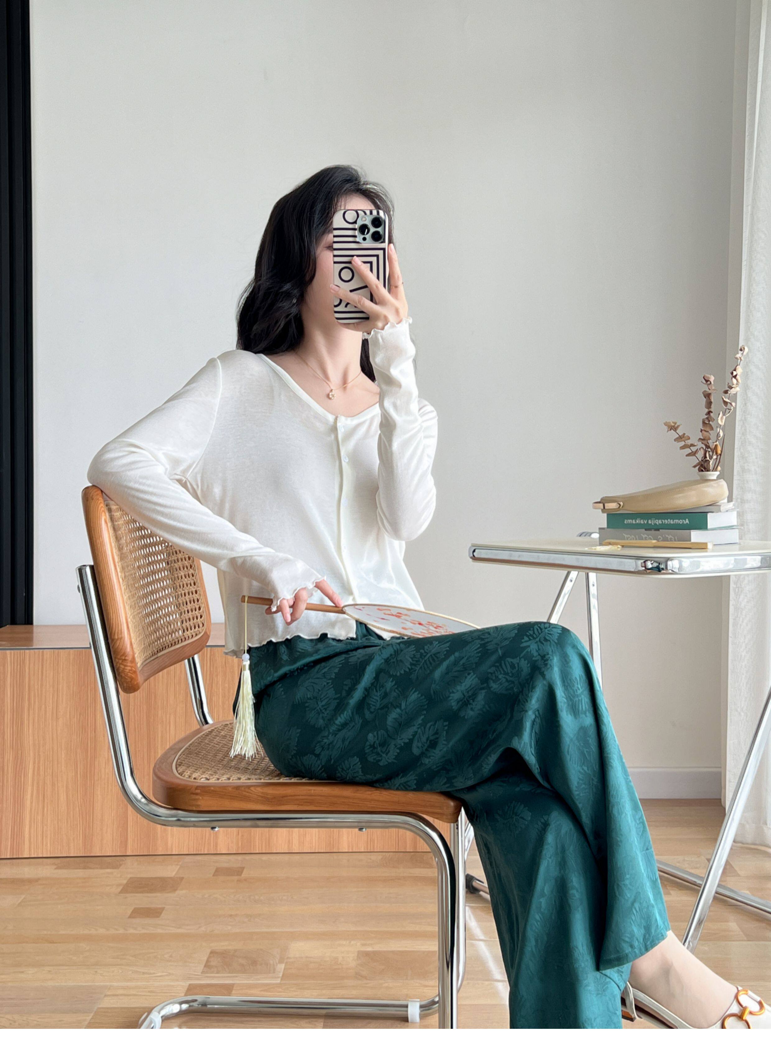 Кардиган, комфортная шелковая рубашка, лонгслив с круглым воротником, маска для лица, защита от солнца