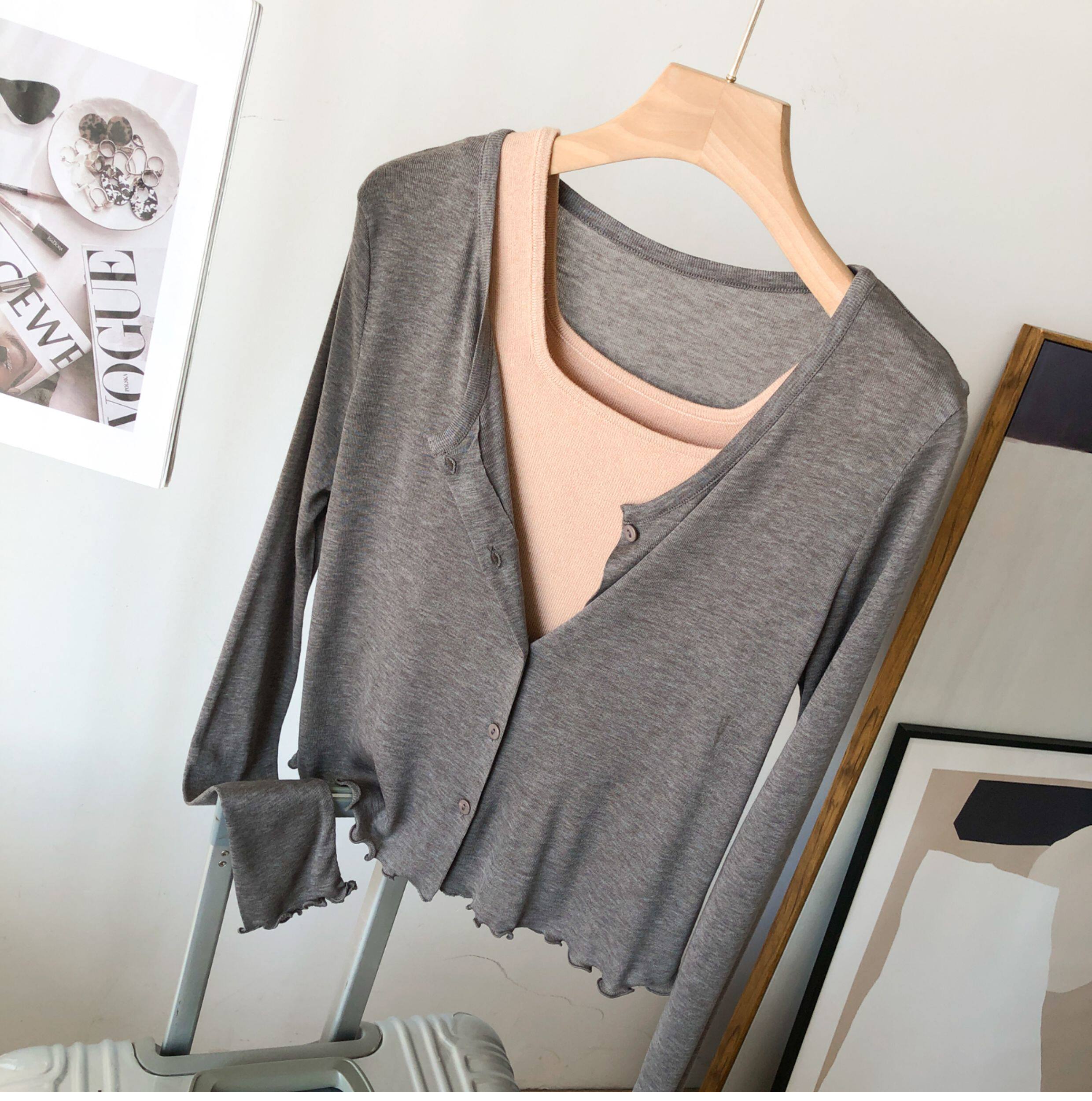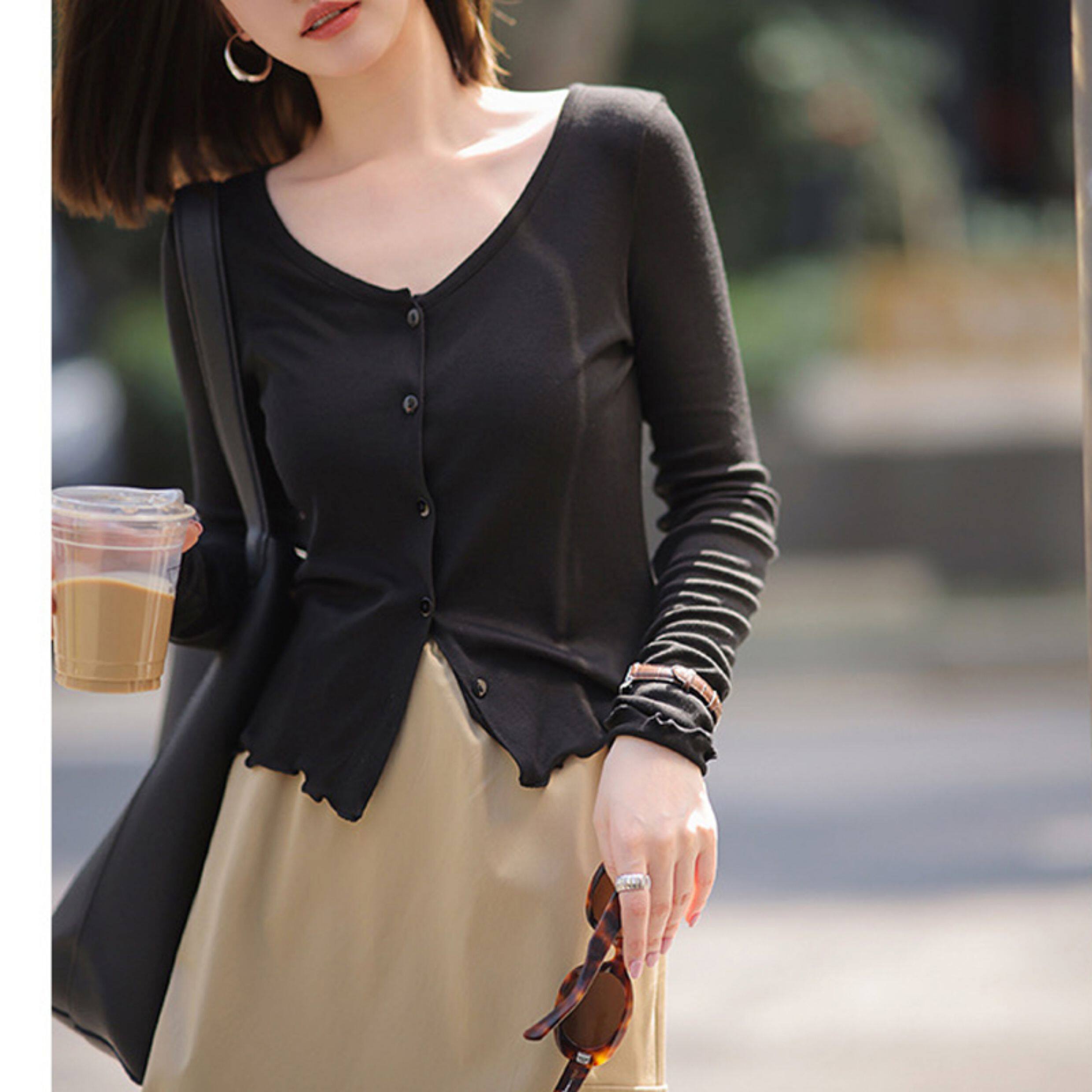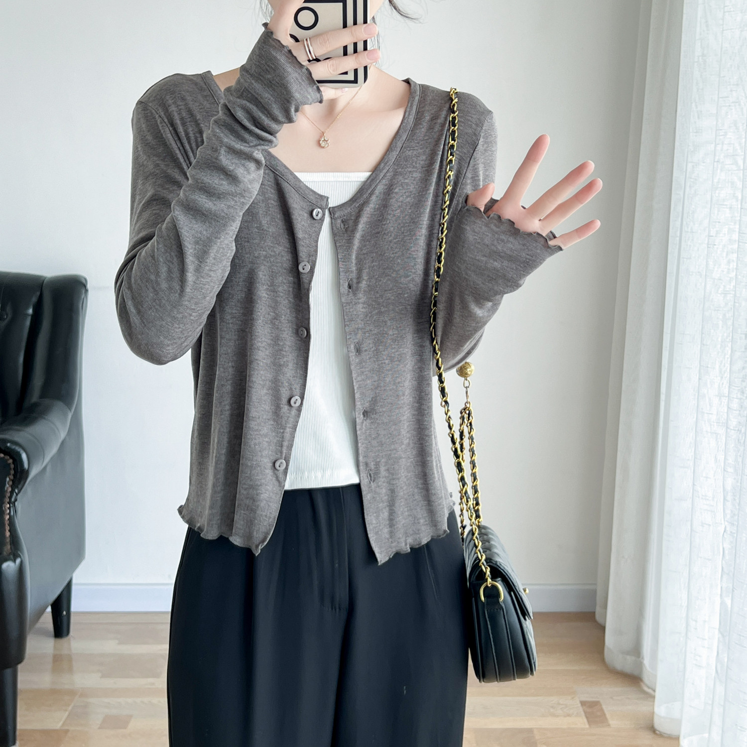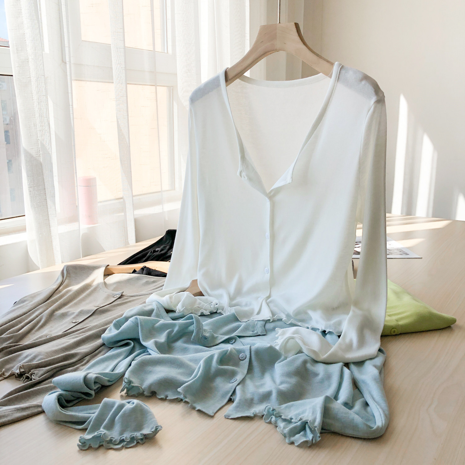 Кардиган, комфортная шелковая рубашка, лонгслив с круглым воротником, маска для лица, защита от солнца