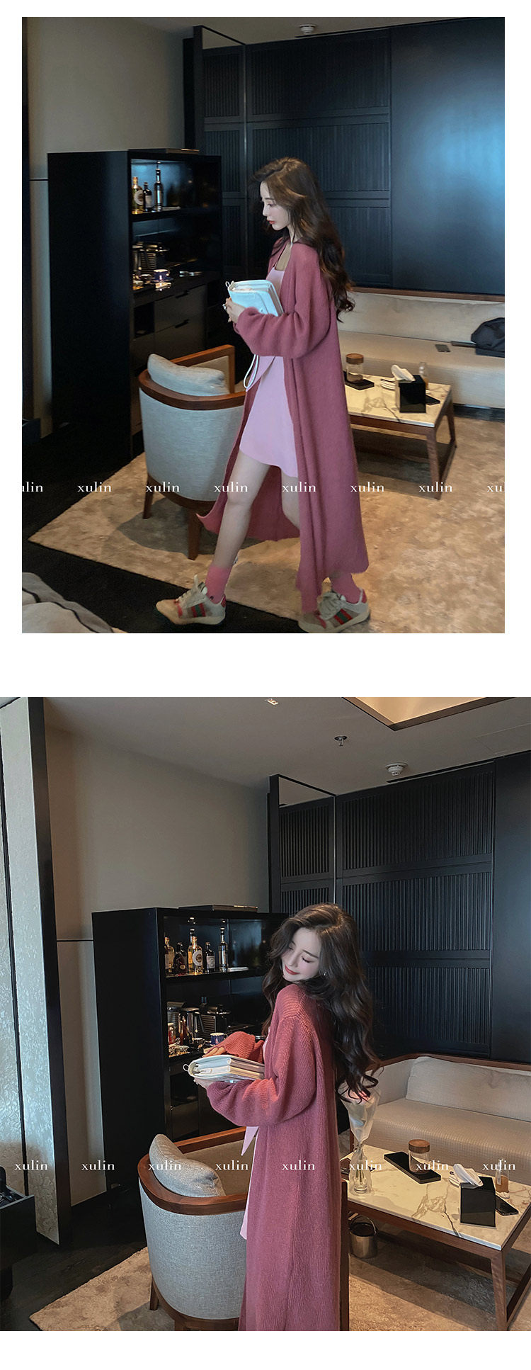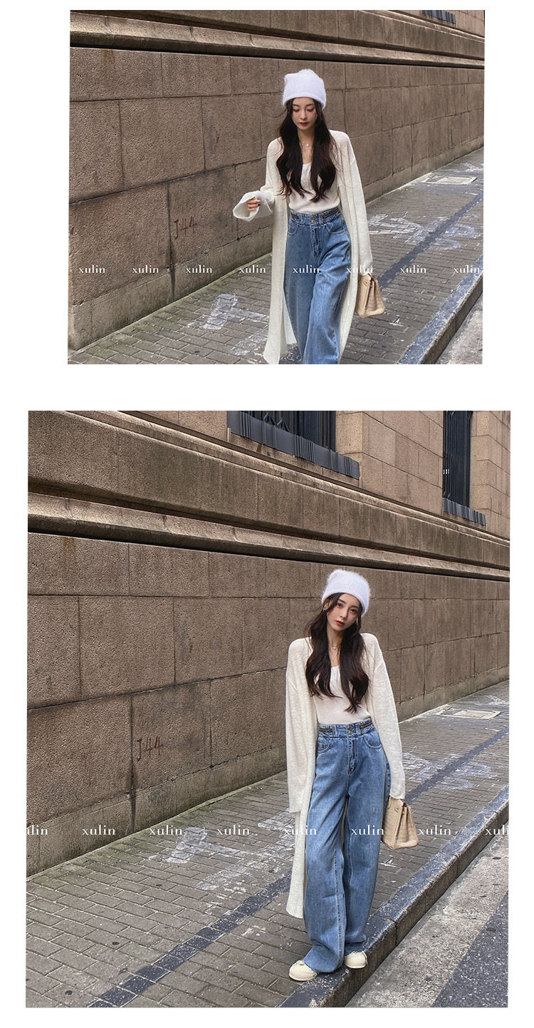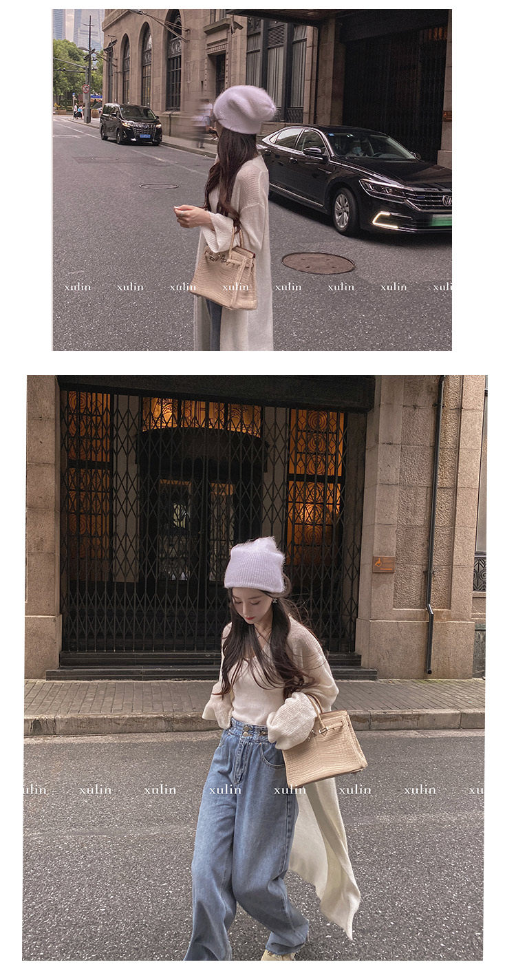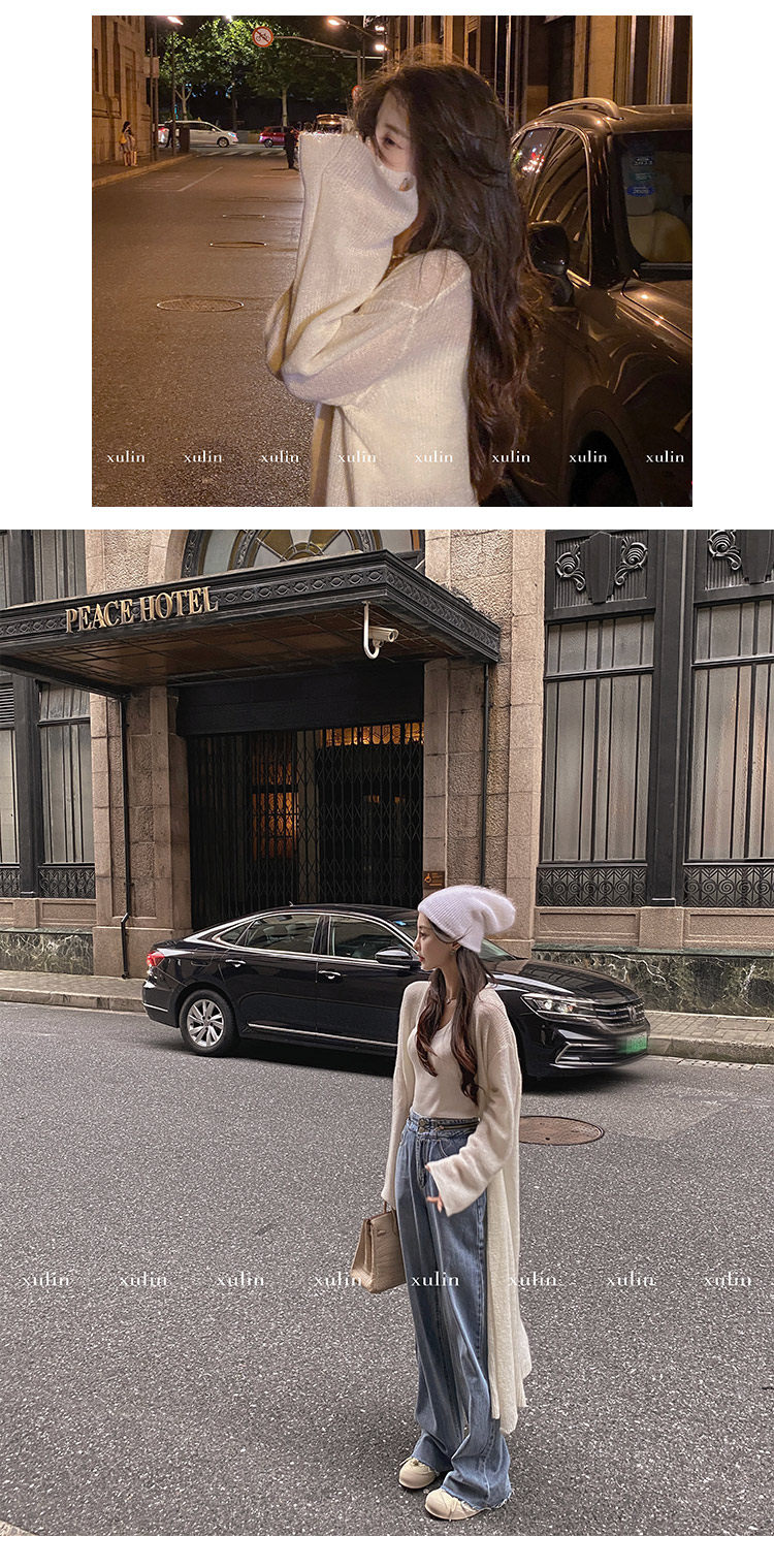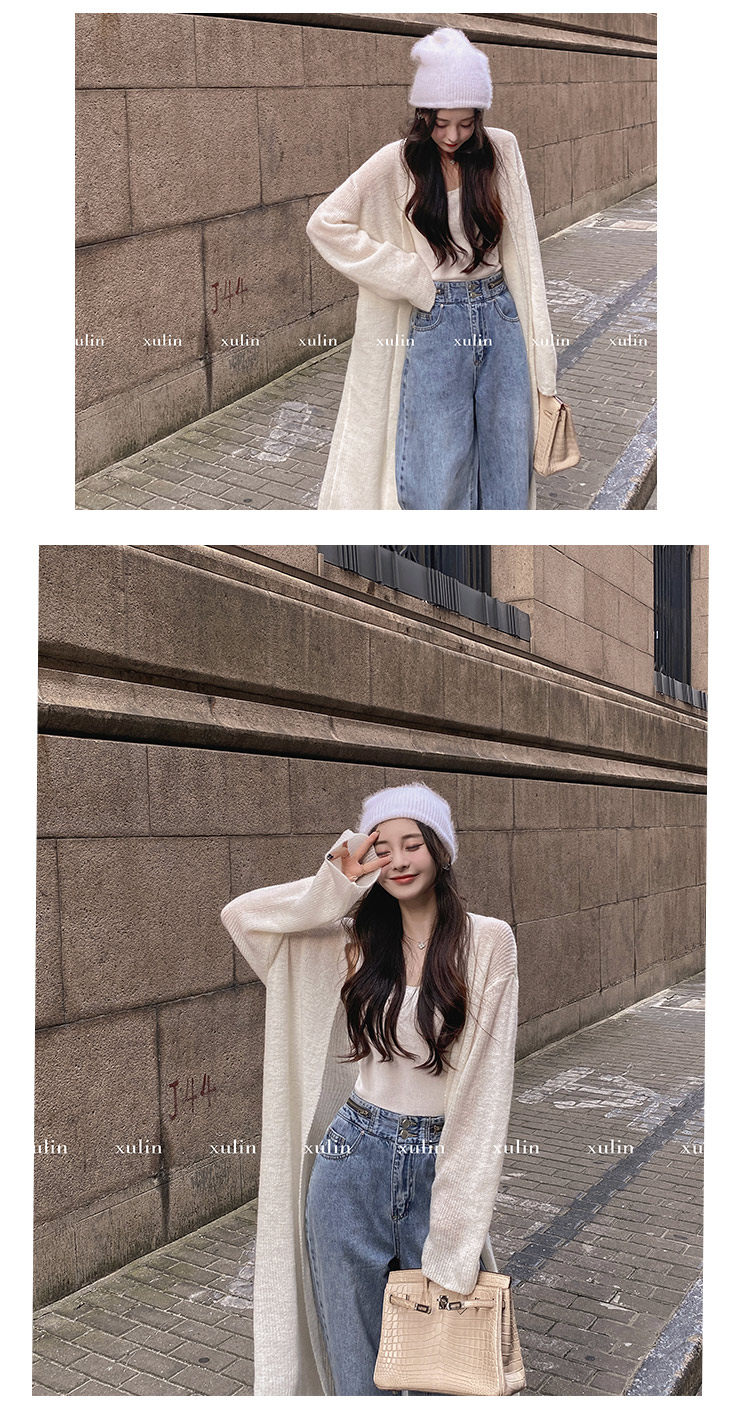 Атмосферный шерстяной кардиган, длинный трикотажный свитер, оверсайз, средней длины
