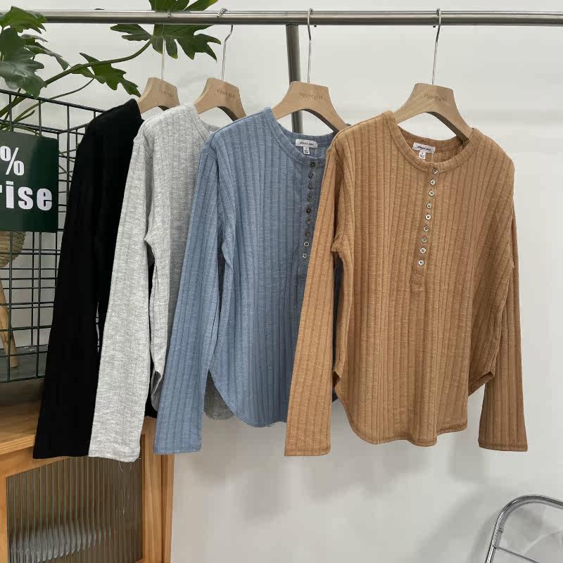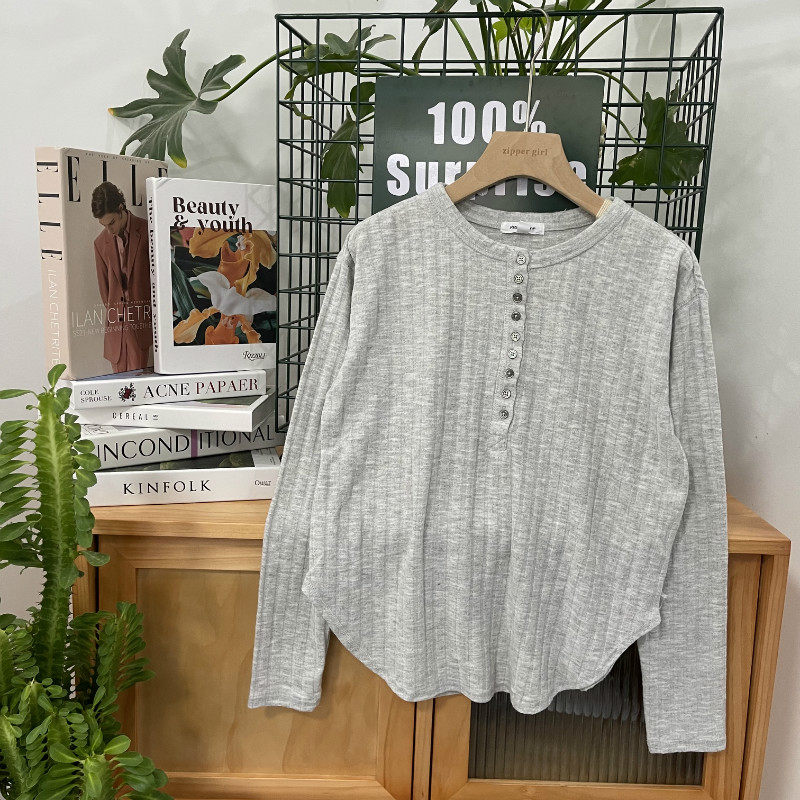 Однотонный изогнутый лонгслив с круглым воротником, свитер, комплект