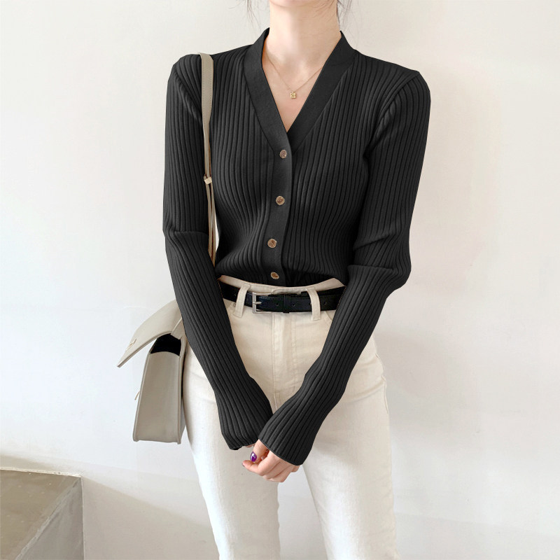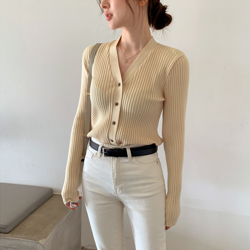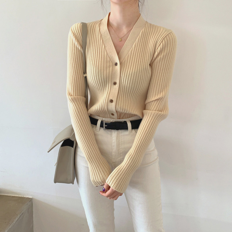 Трикотажный свитер, весенний демисезонный кардиган, куртка, V-образный вырез, 2024 года, городской стиль, в западном стиле