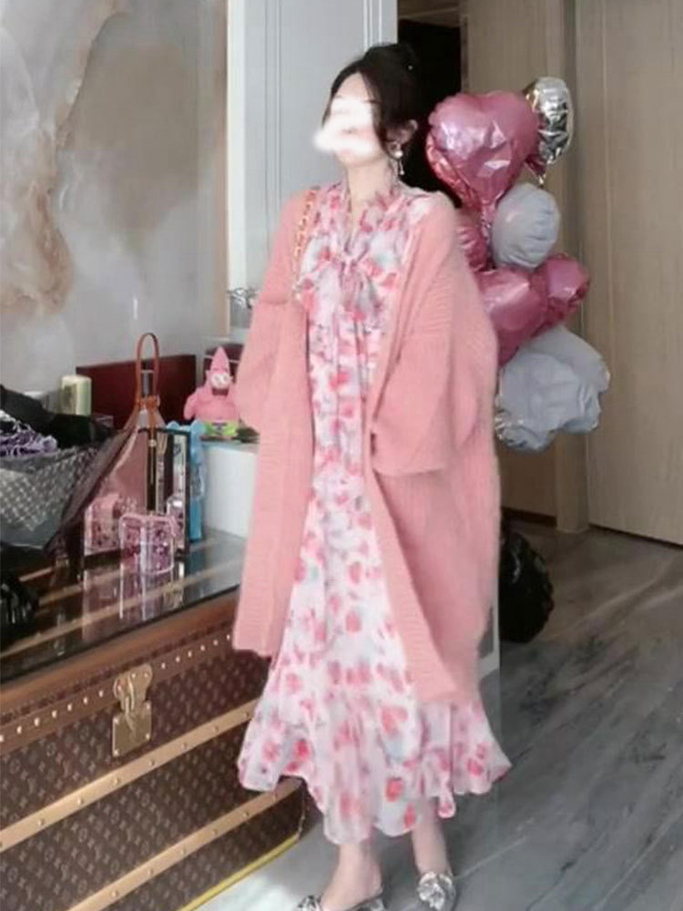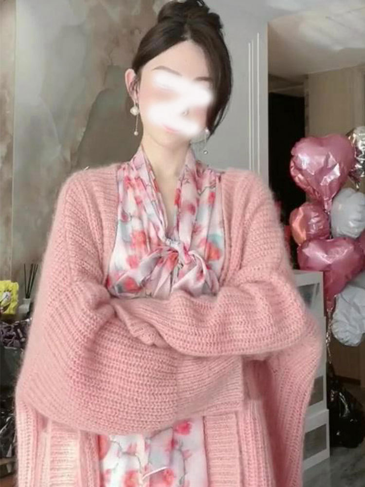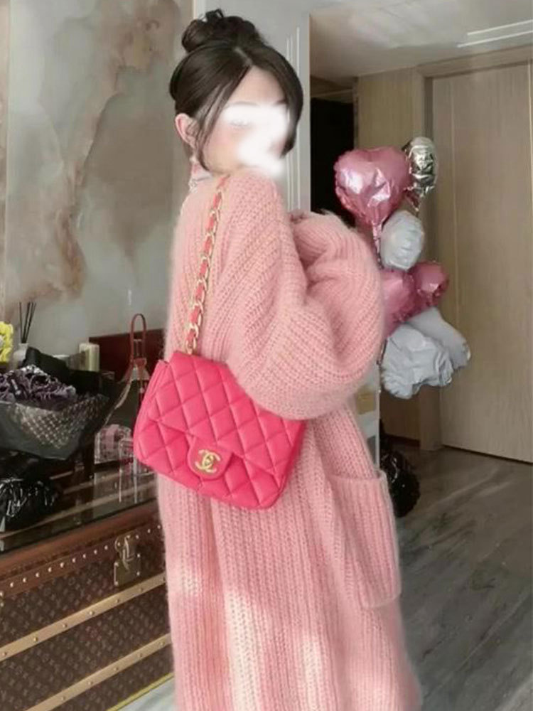Розовый весенний демисезонный длинный кардиган, свитер, куртка, в стиле Шанель, средней длины