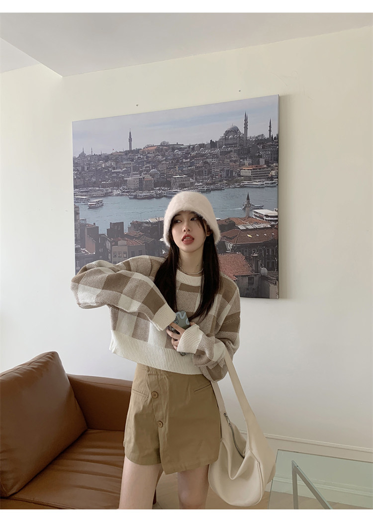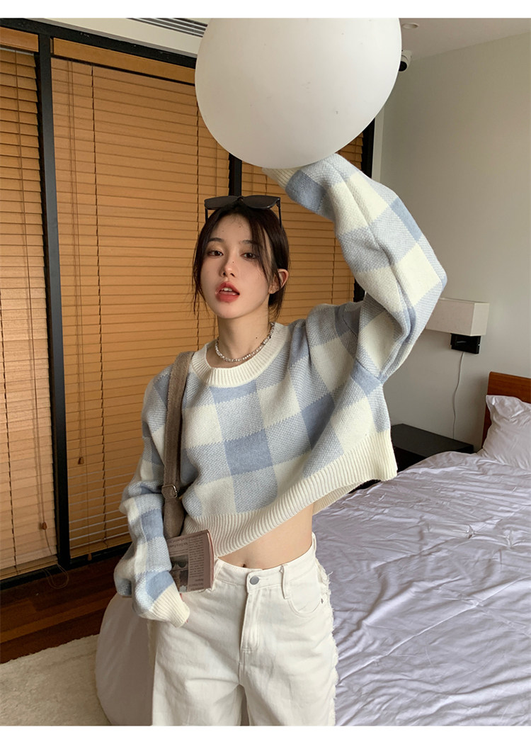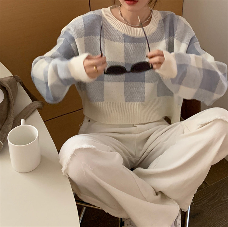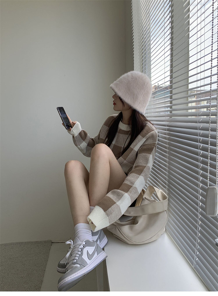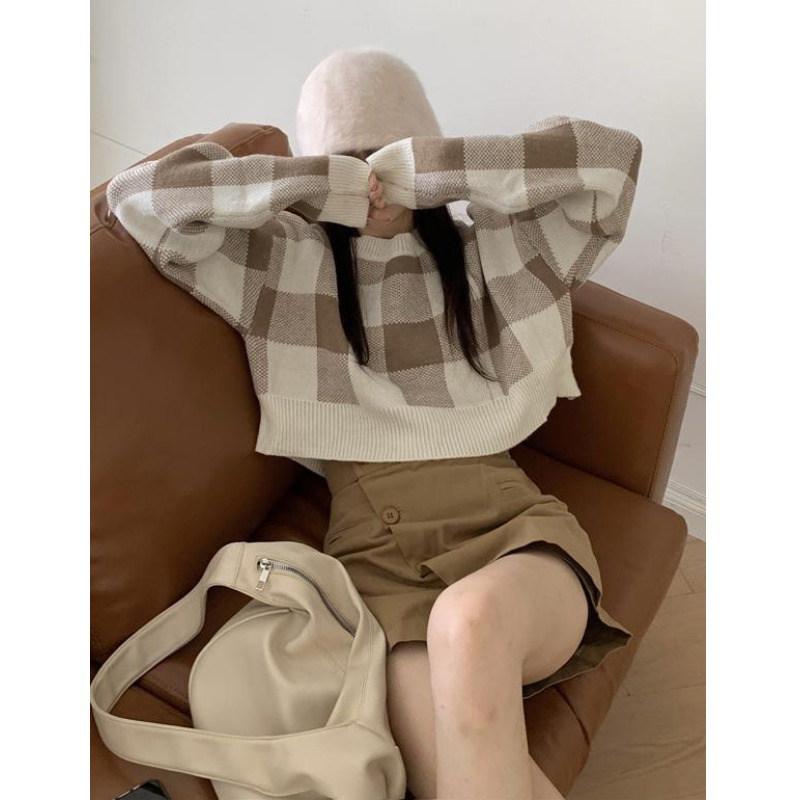 Трикотажный весенний свитер, ретро базовый приятный телу лонгслив, оверсайз
