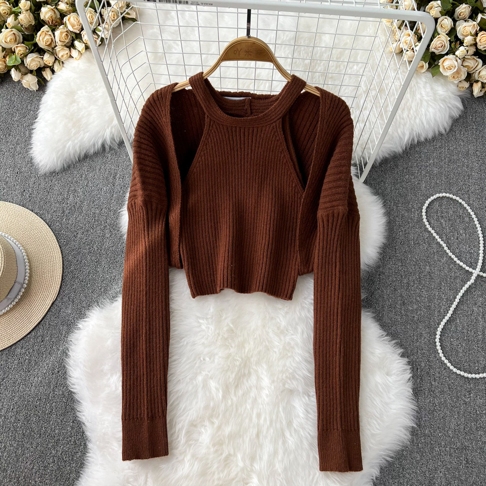 Демисезонный сексуальный приталенный трикотажный жилет, комплект, короткая накидка, свитер, куртка, в западном стиле