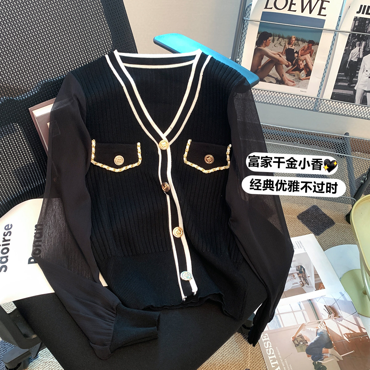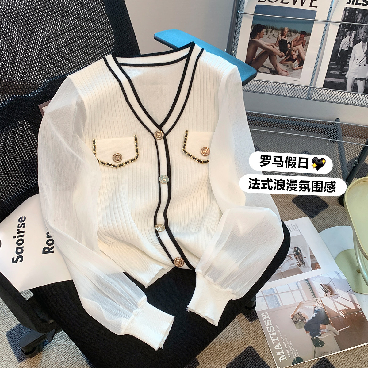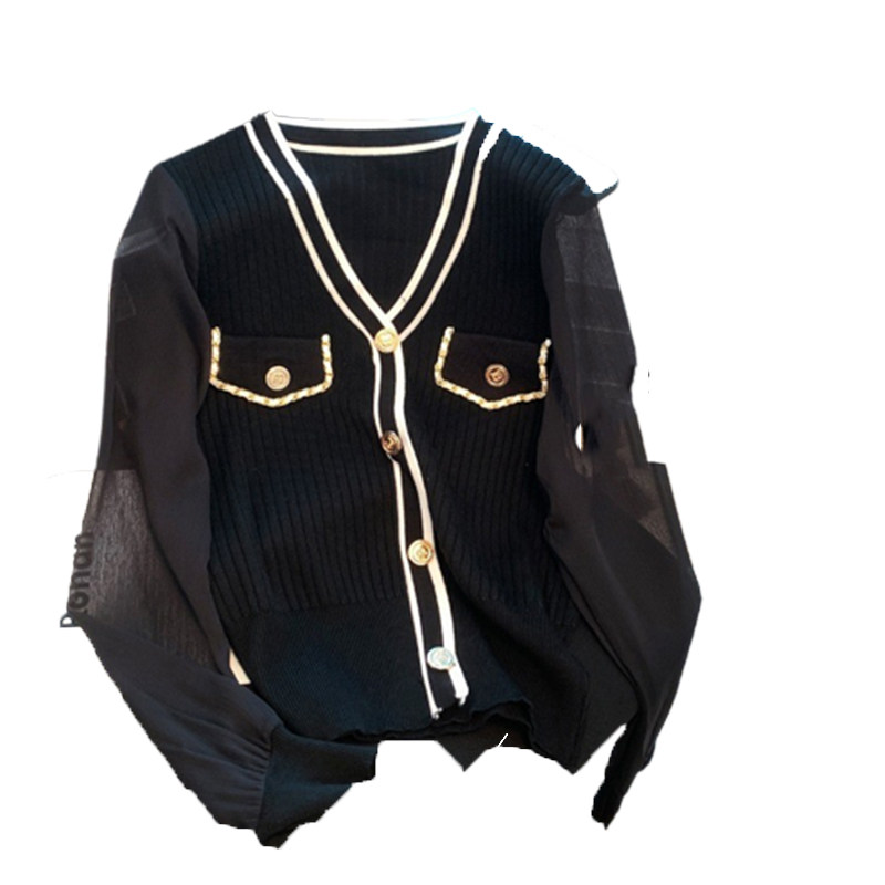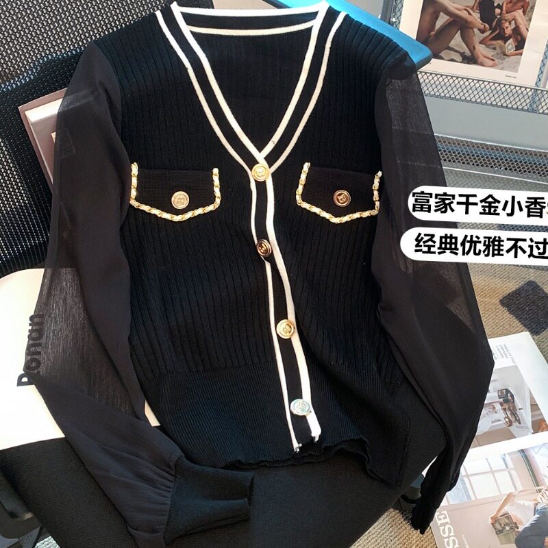 Трикотажный небольшой кардиган, шифоновый свитер, в стиле Шанель