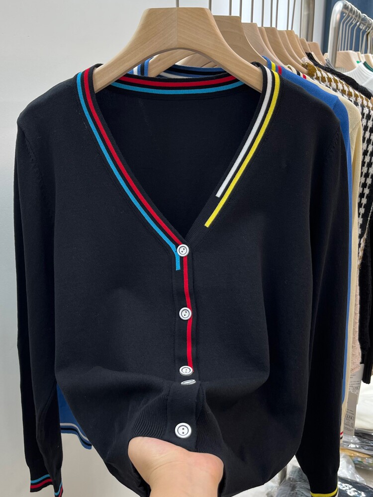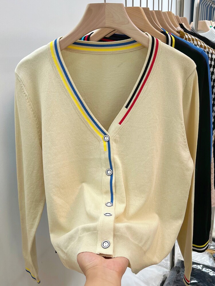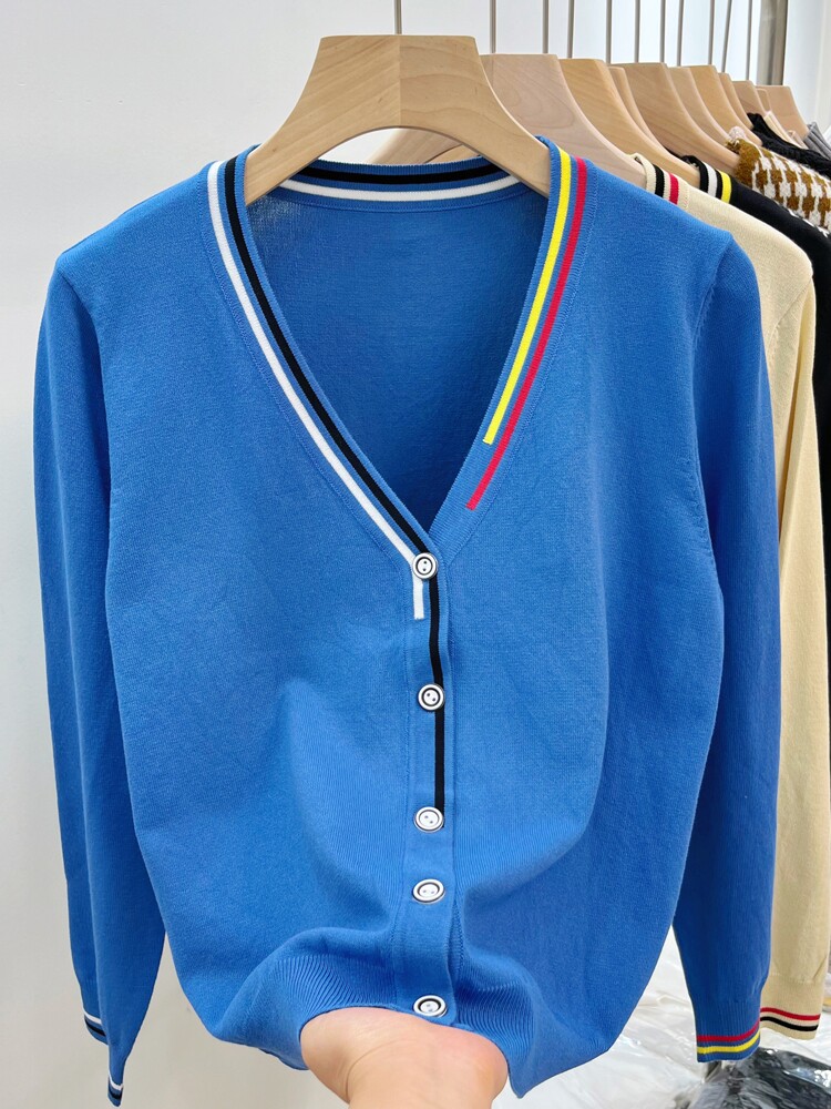 Осенний кардиган, куртка, тонкий приталенный лонгслив, V-образный вырез, в корейском стиле