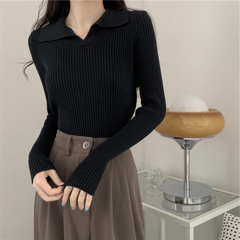 Трикотажный лонгслив, демисезонный свитер, в корейском стиле
