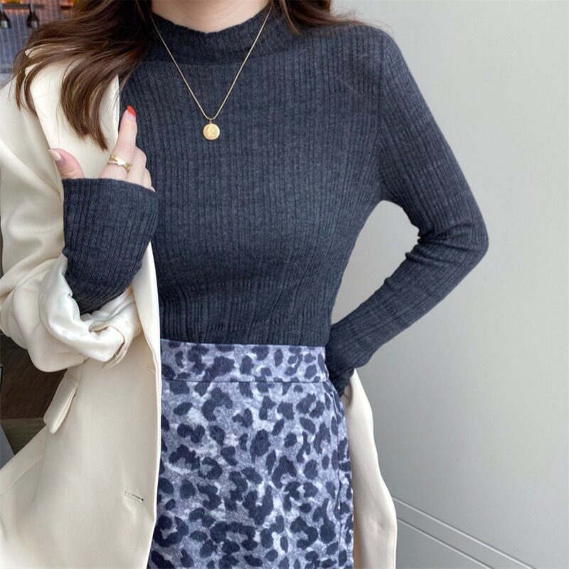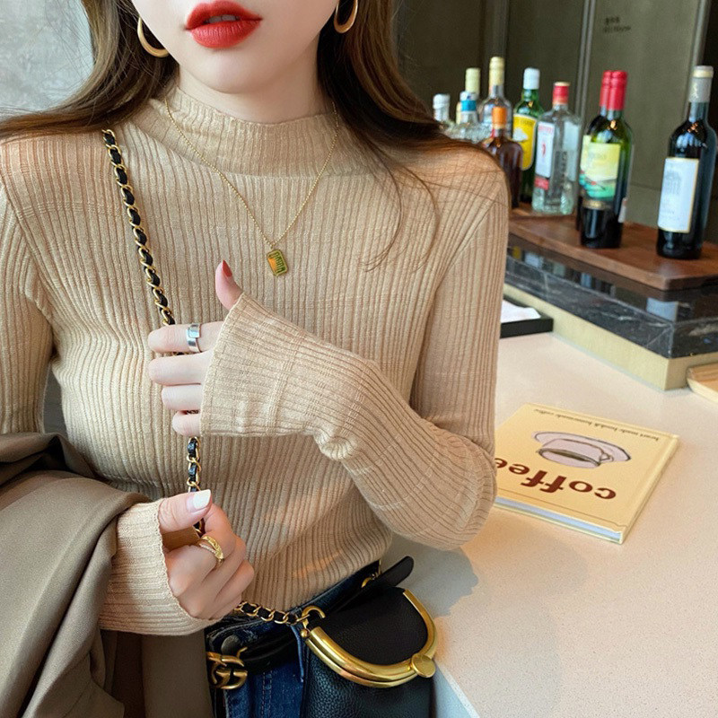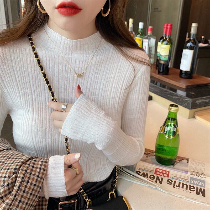 Базовый приятный телу белый эластичный шерстяной свитер, высокий воротник, облегающий крой, коллекция 2023