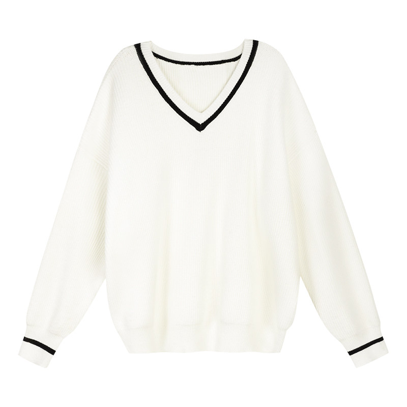 Свитер, весенний трикотажный лонгслив, V-образный вырез, 2023, тренд сезона, оверсайз