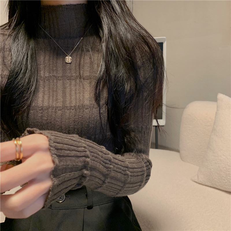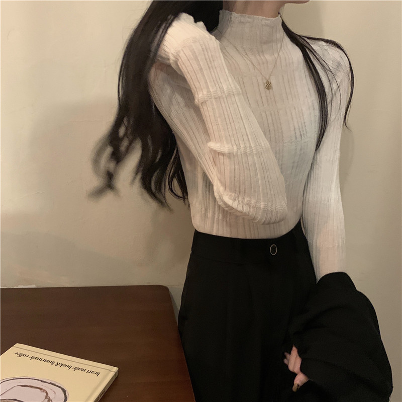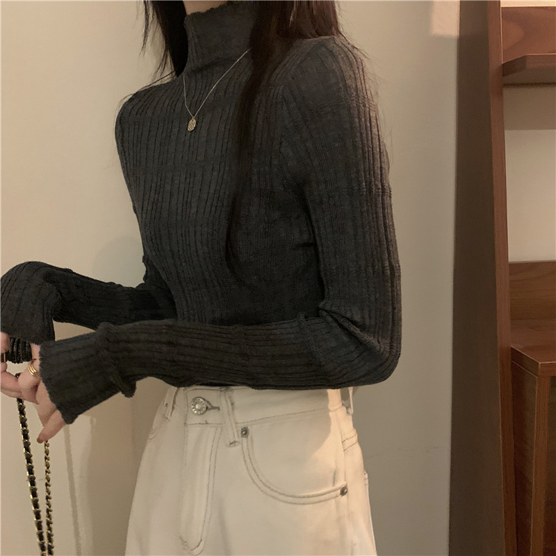 Трикотажный модный приталенный лонгслив, свитер, высокий воротник, в обтяжку, в западном стиле