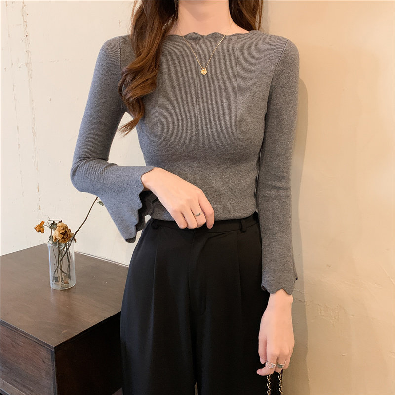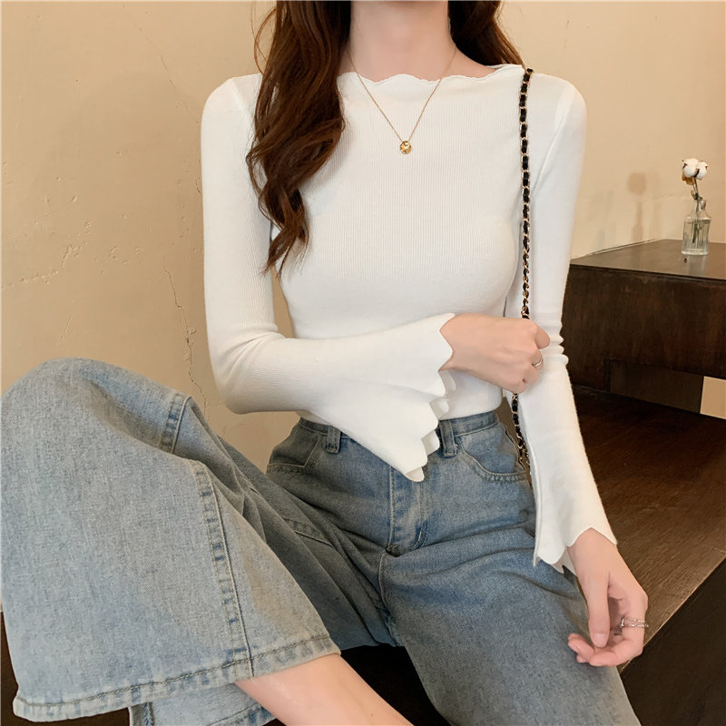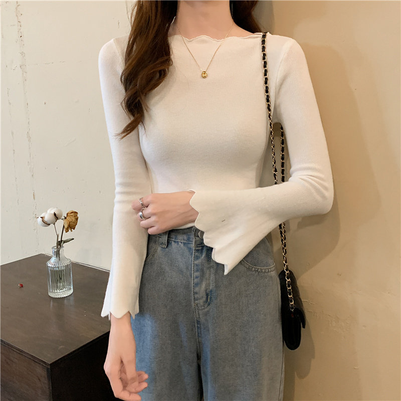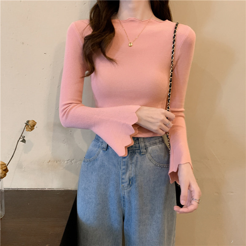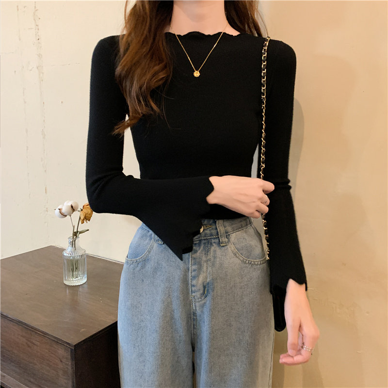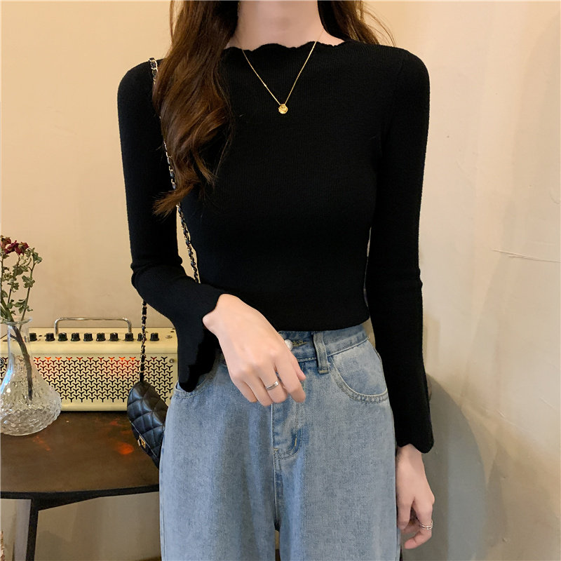 Приталенный трикотажный лонгслив, свитер, модный демисезонный мегафон, в западном стиле