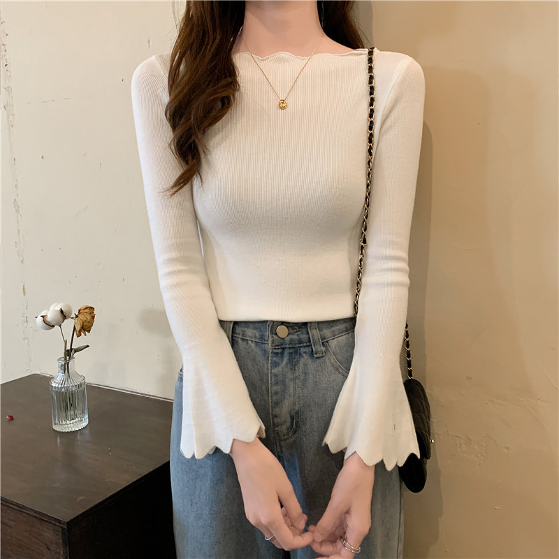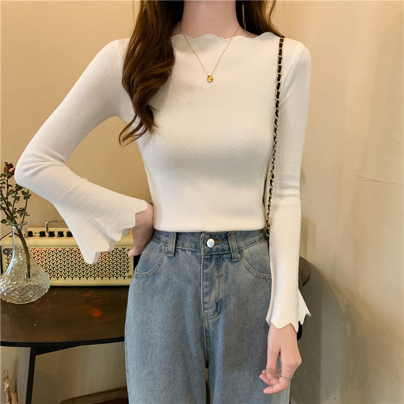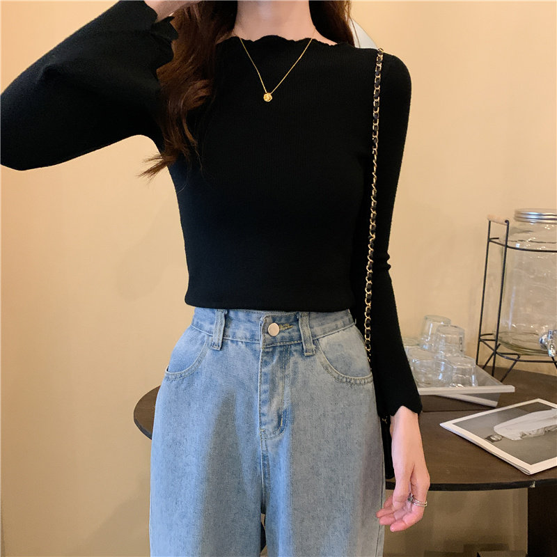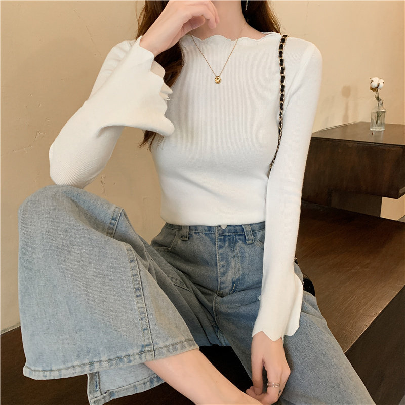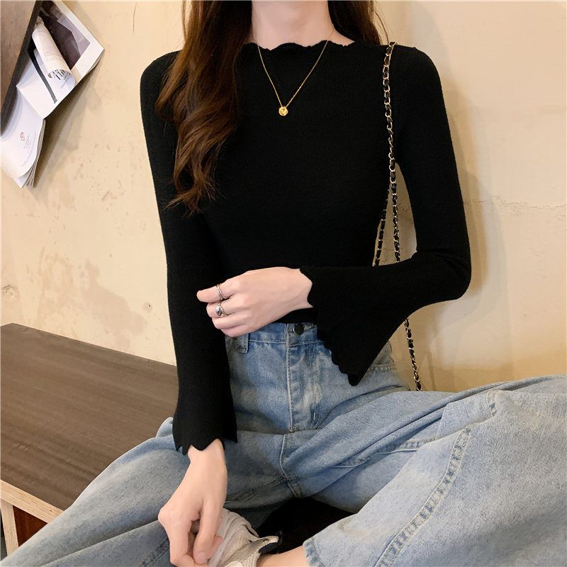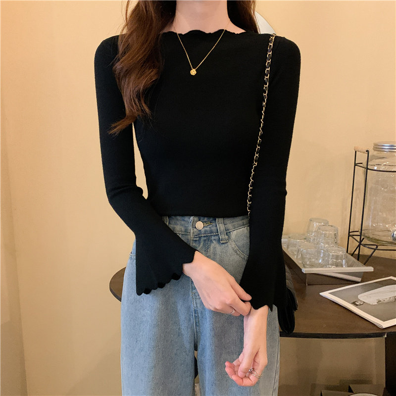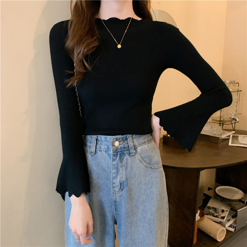 Приталенный трикотажный лонгслив, свитер, модный демисезонный мегафон, в западном стиле