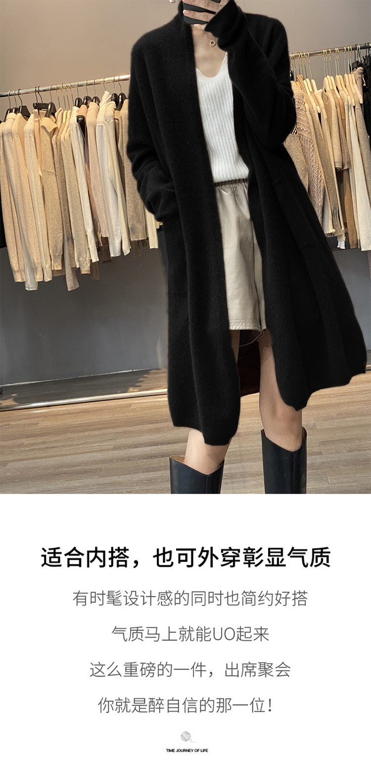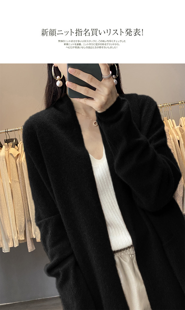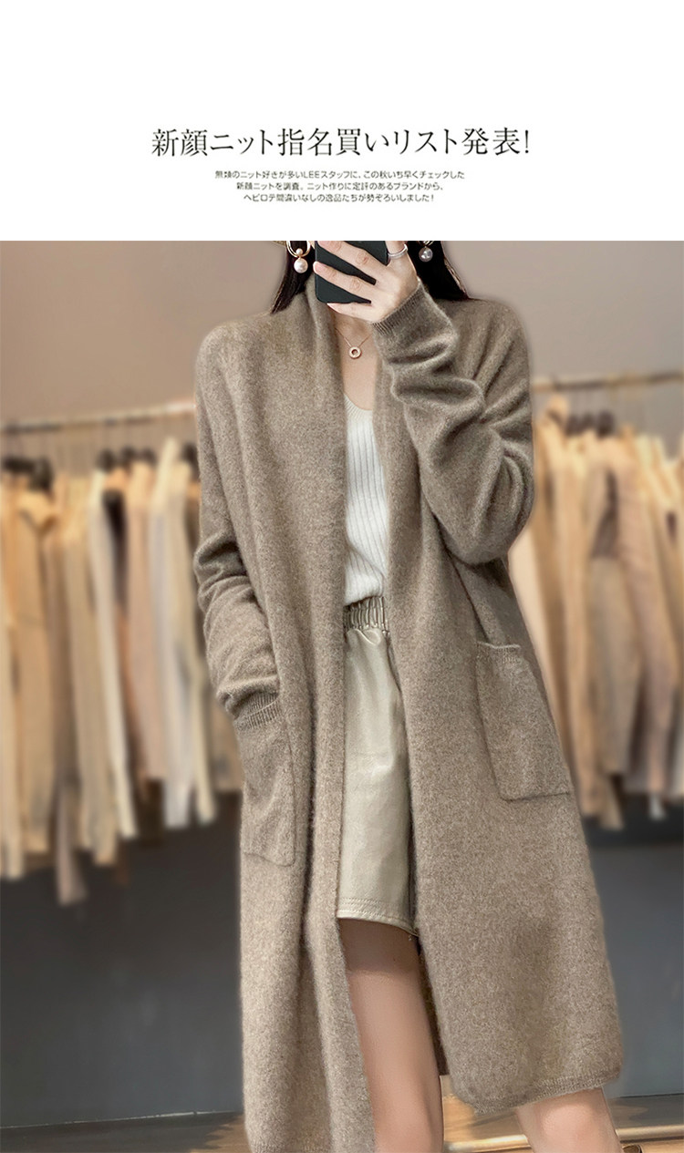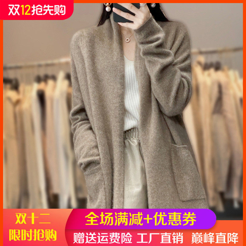 Демисезонный кашемировый однотонный кардиган, длинная трикотажная шерстяная куртка, V-образный вырез, оверсайз, средней длины