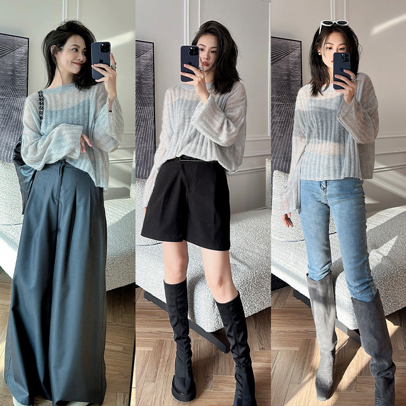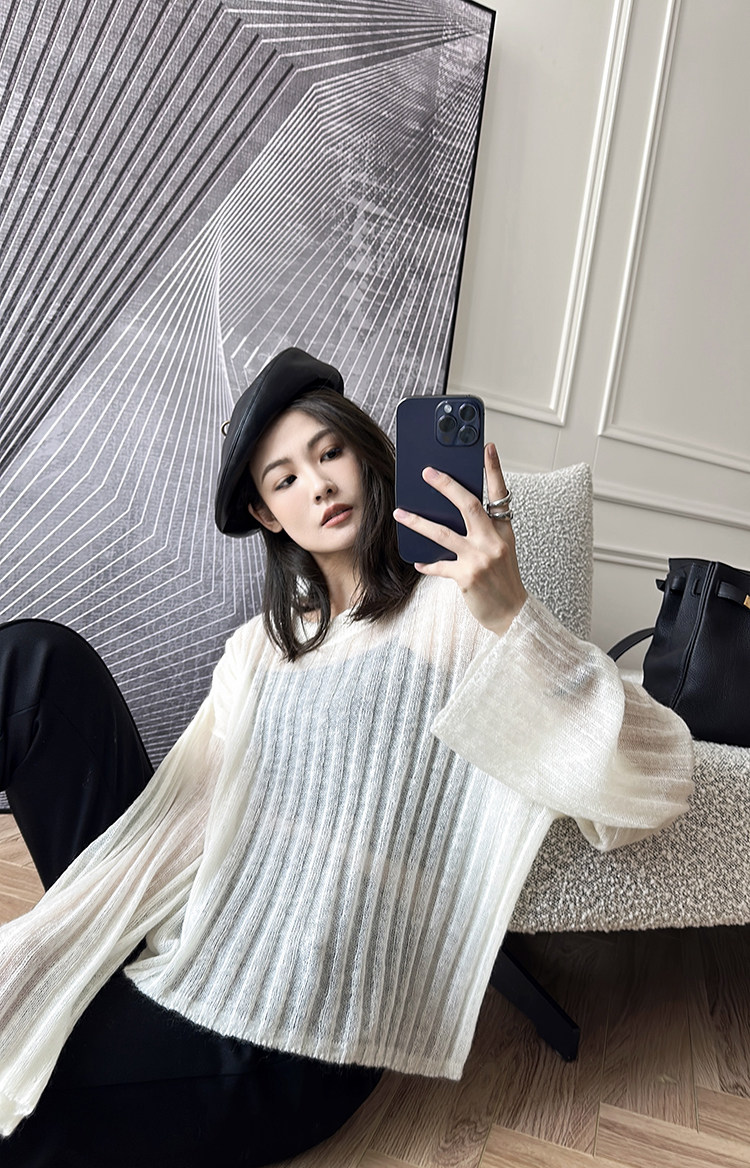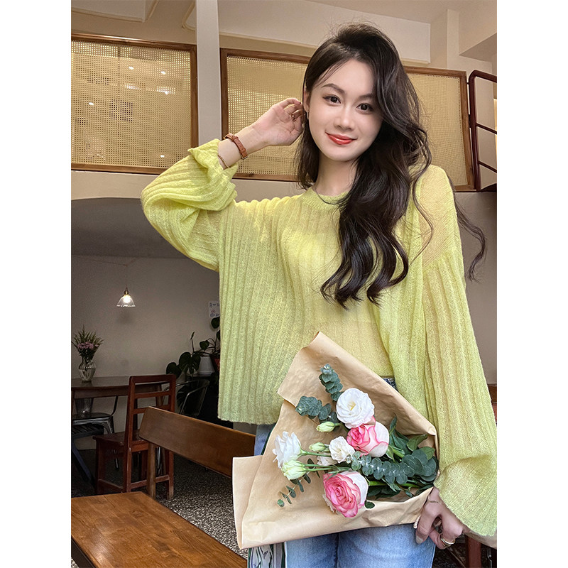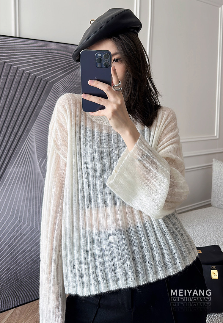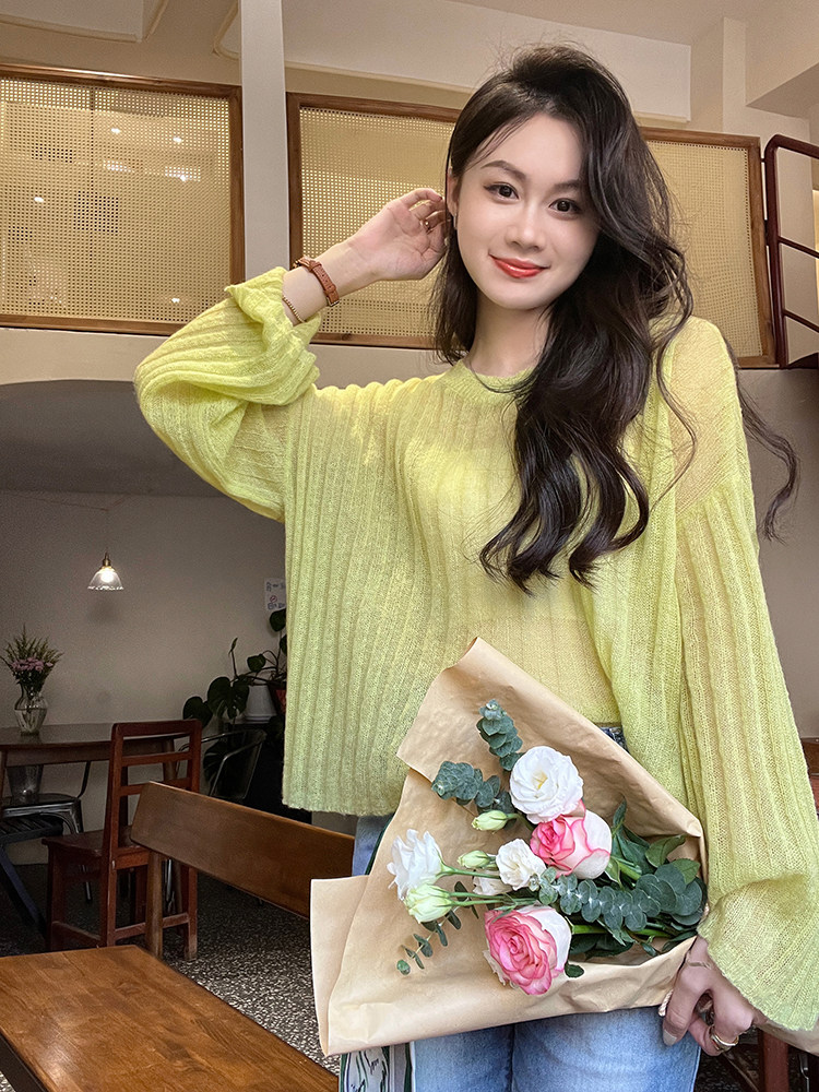 美洋 Мейян [место] мягкий -находной лошадь морской вязаный свитер. Смешанный нежный, ленивый и свободный свитер