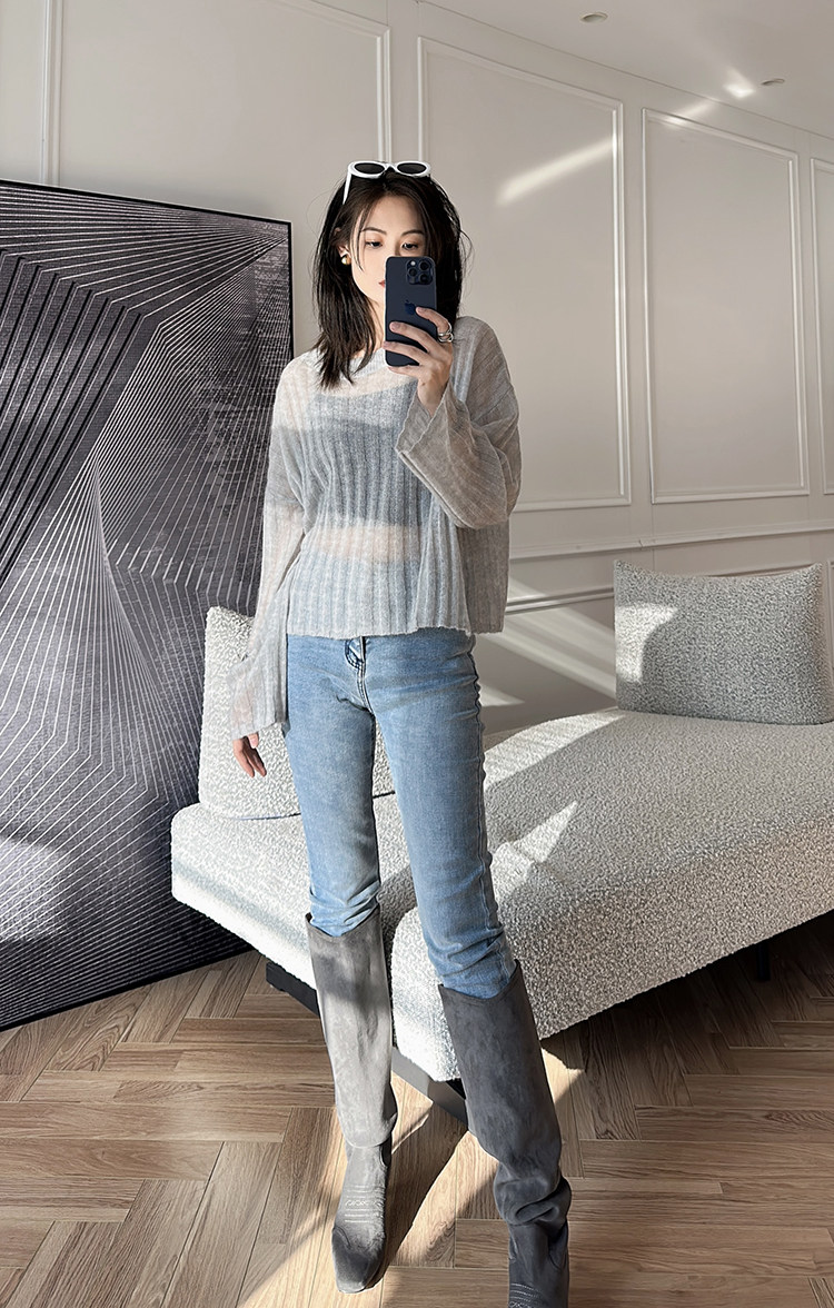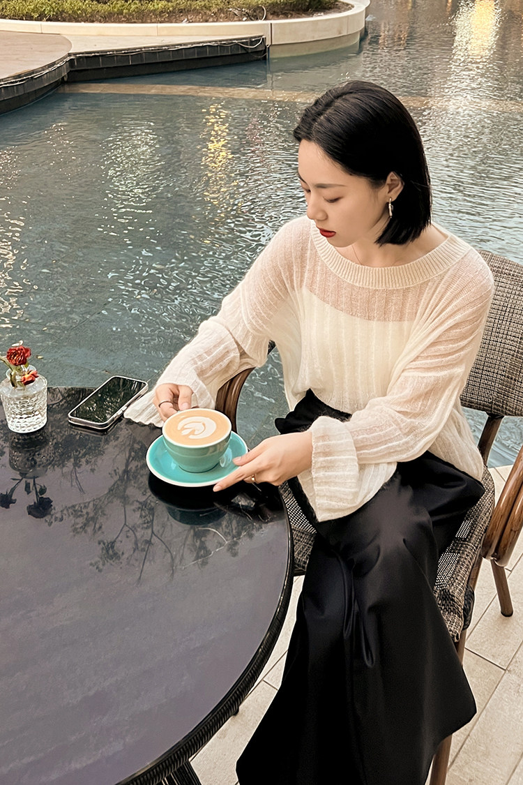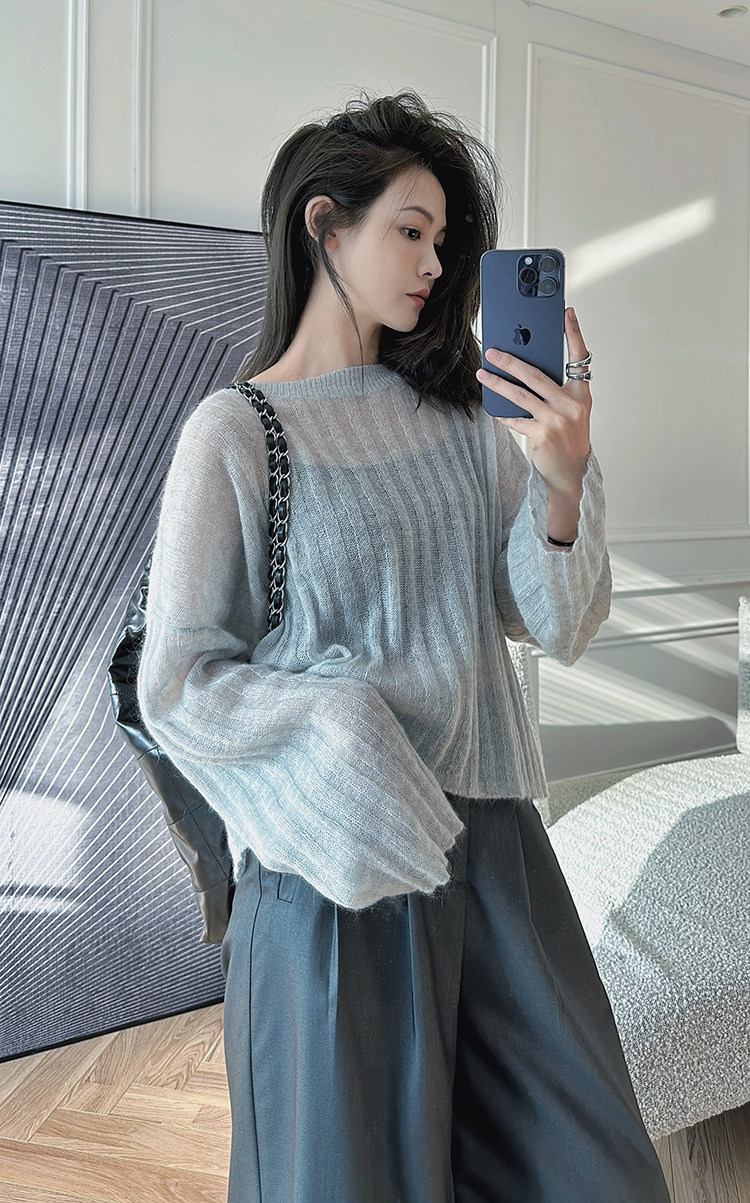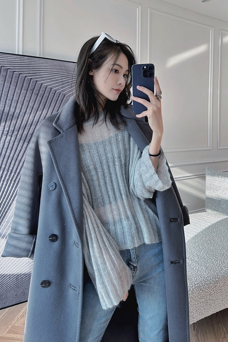 美洋 Мейян [место] мягкий -находной лошадь морской вязаный свитер. Смешанный нежный, ленивый и свободный свитер