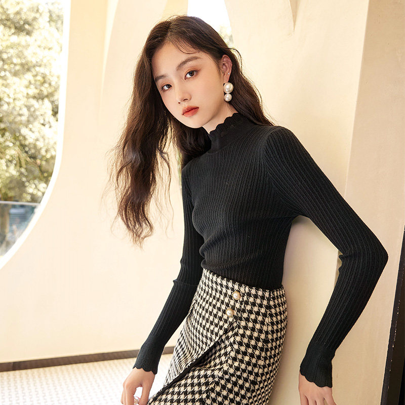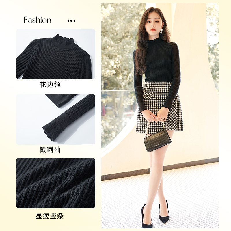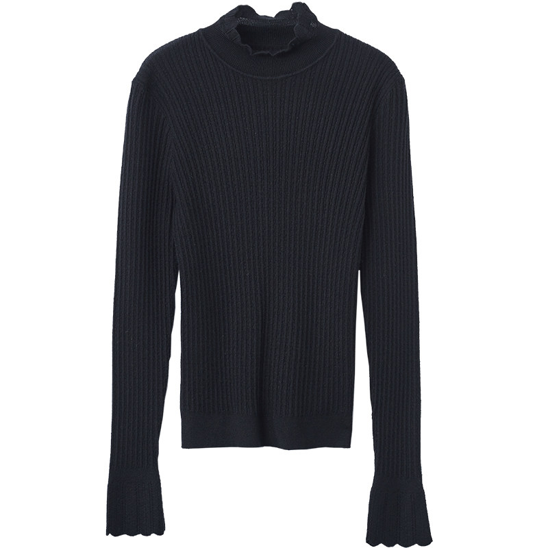 Черный базовый приятный телу демисезонный комплект, приталенный лонгслив, свитер, высокий воротник