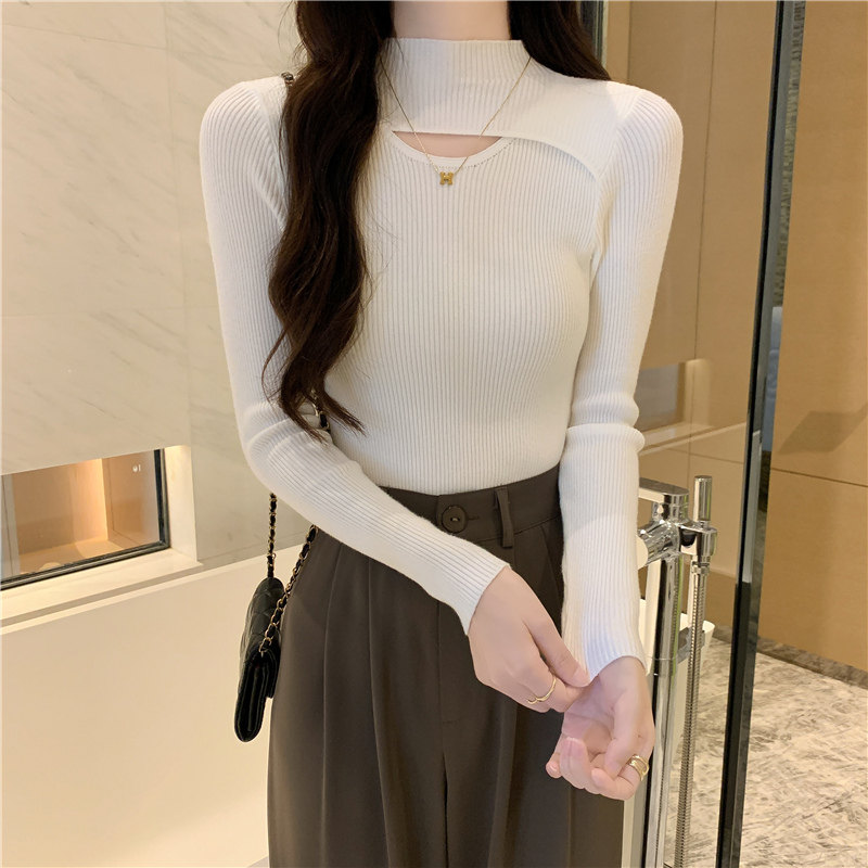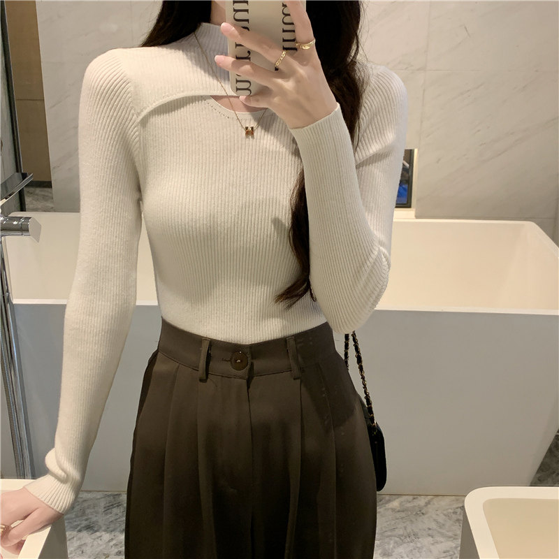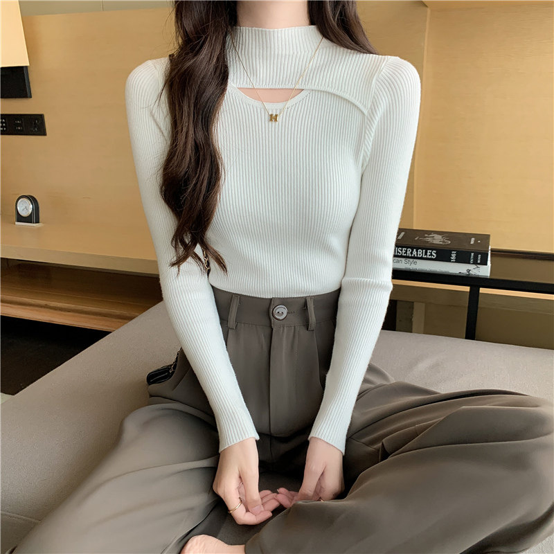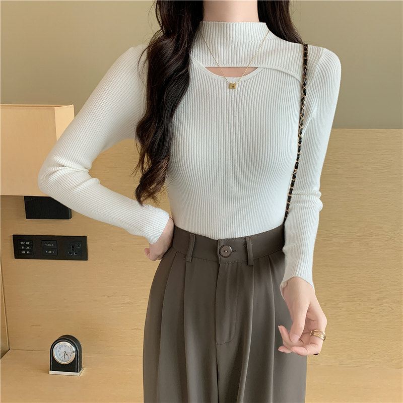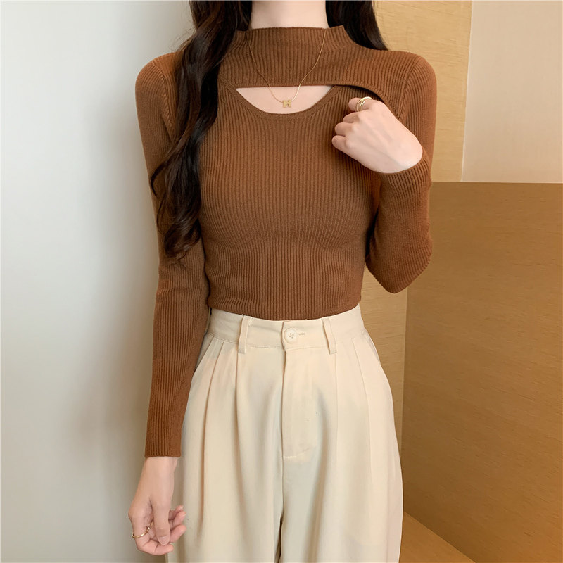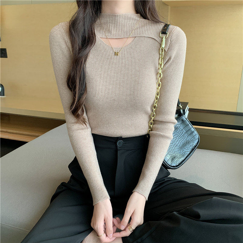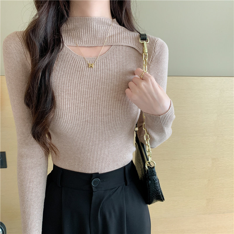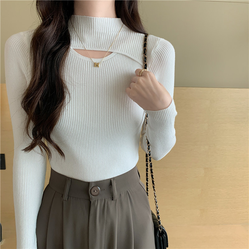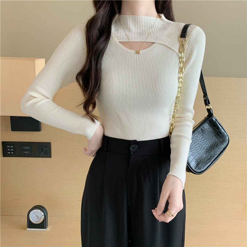 Осенний демисезонный модный лонгслив, трикотажный свитер, высокий воротник