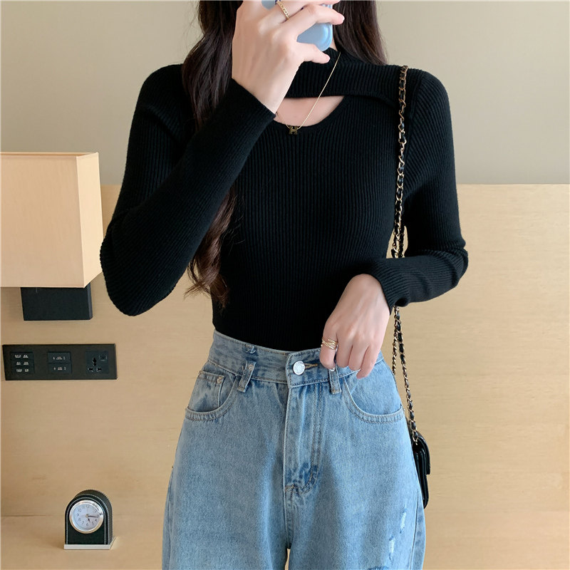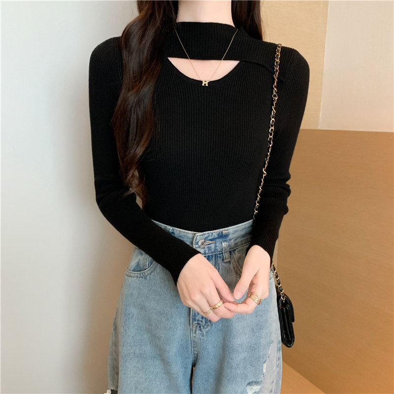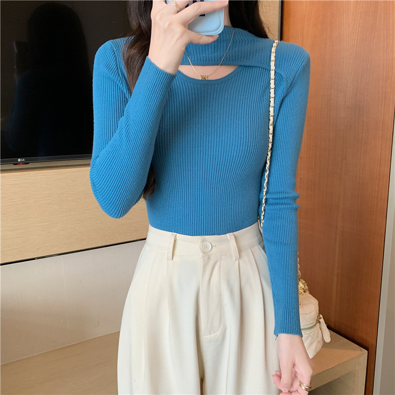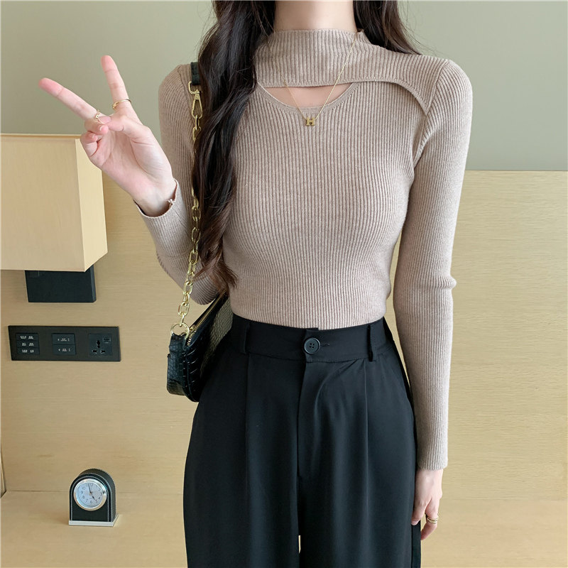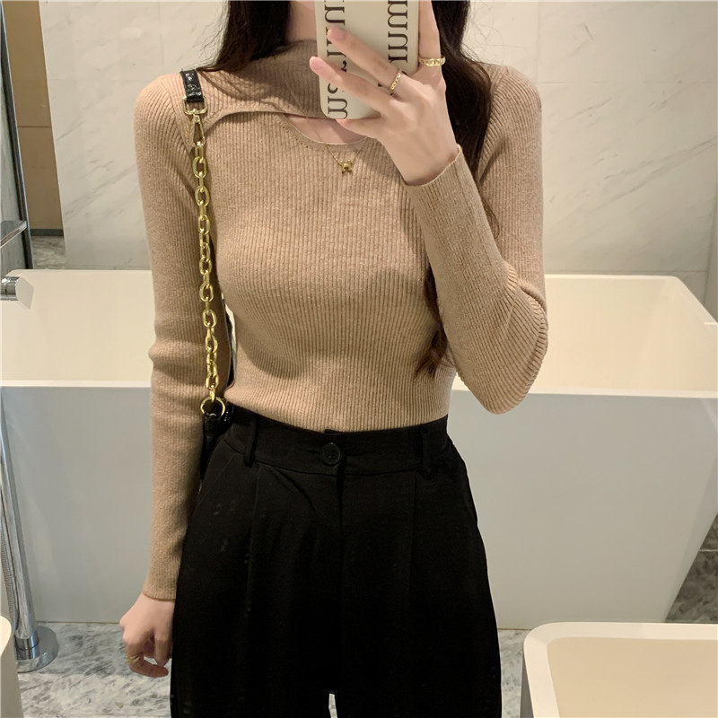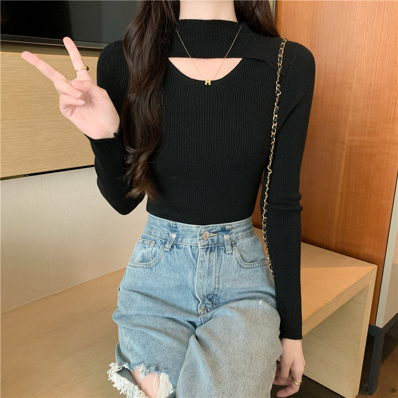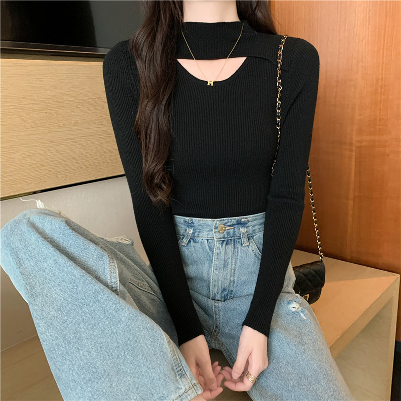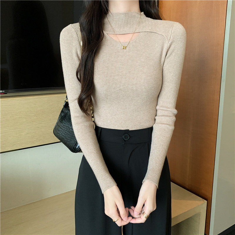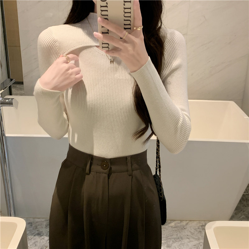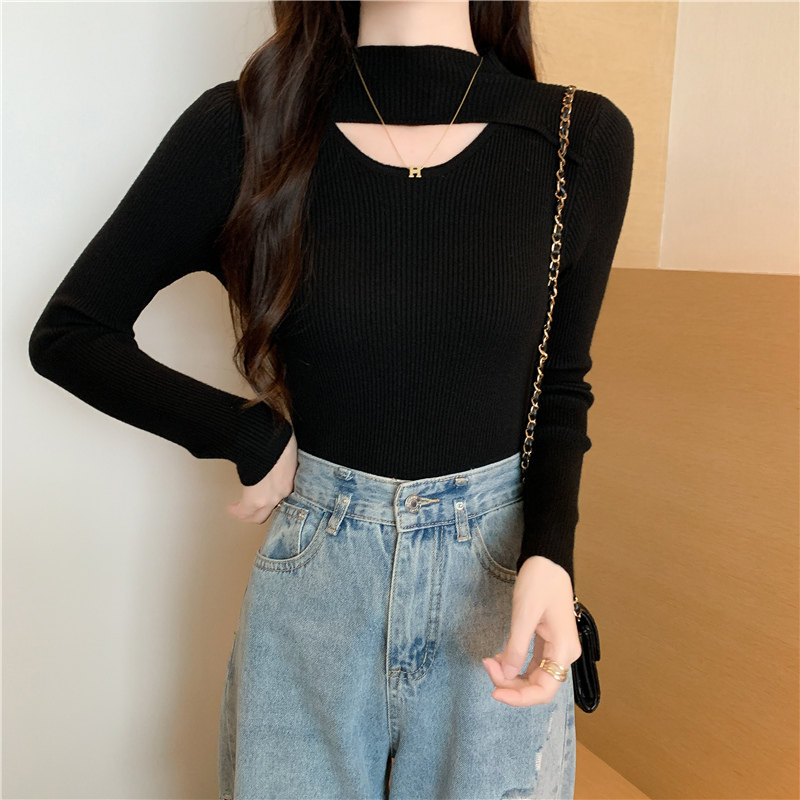 Осенний демисезонный модный лонгслив, трикотажный свитер, высокий воротник