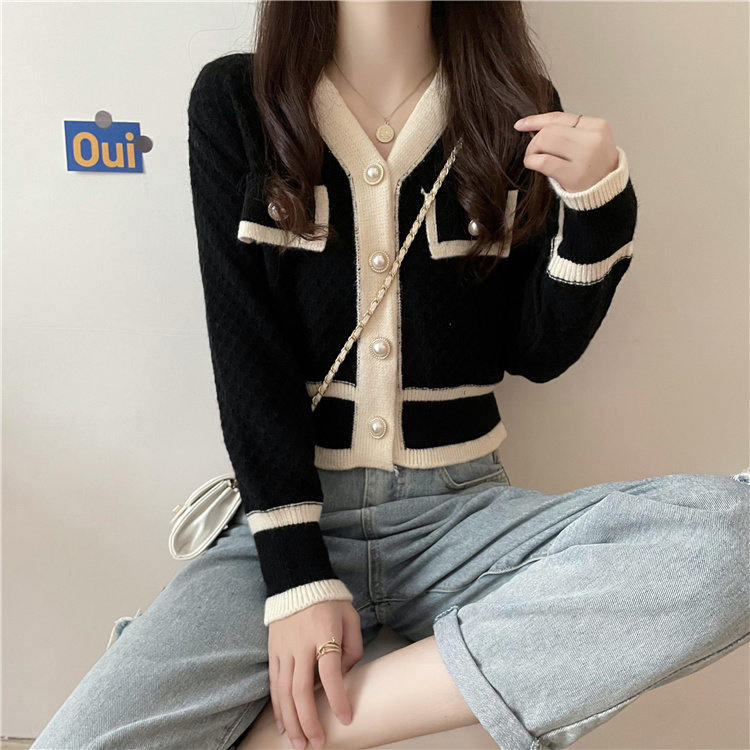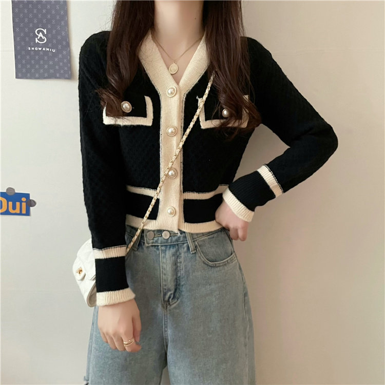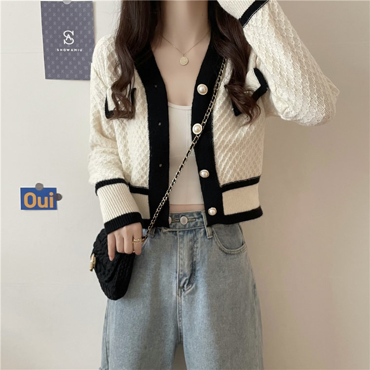 Ретро трикотажный кардиган, модный короткий свитер, осенняя куртка, французский стиль, в стиле Шанель, в западном стиле