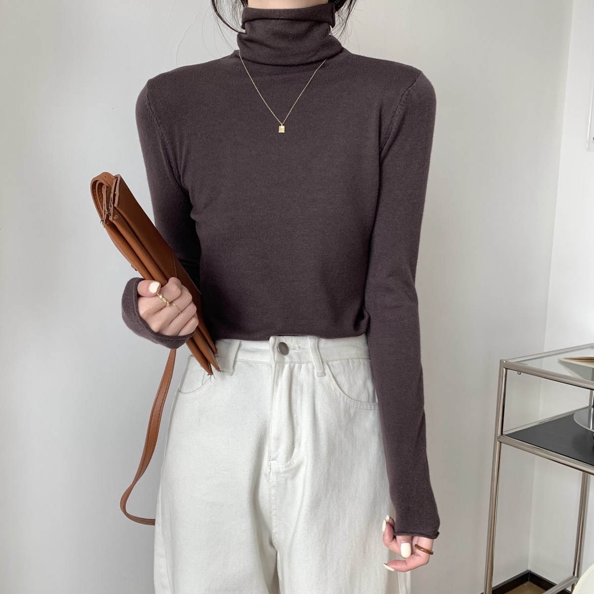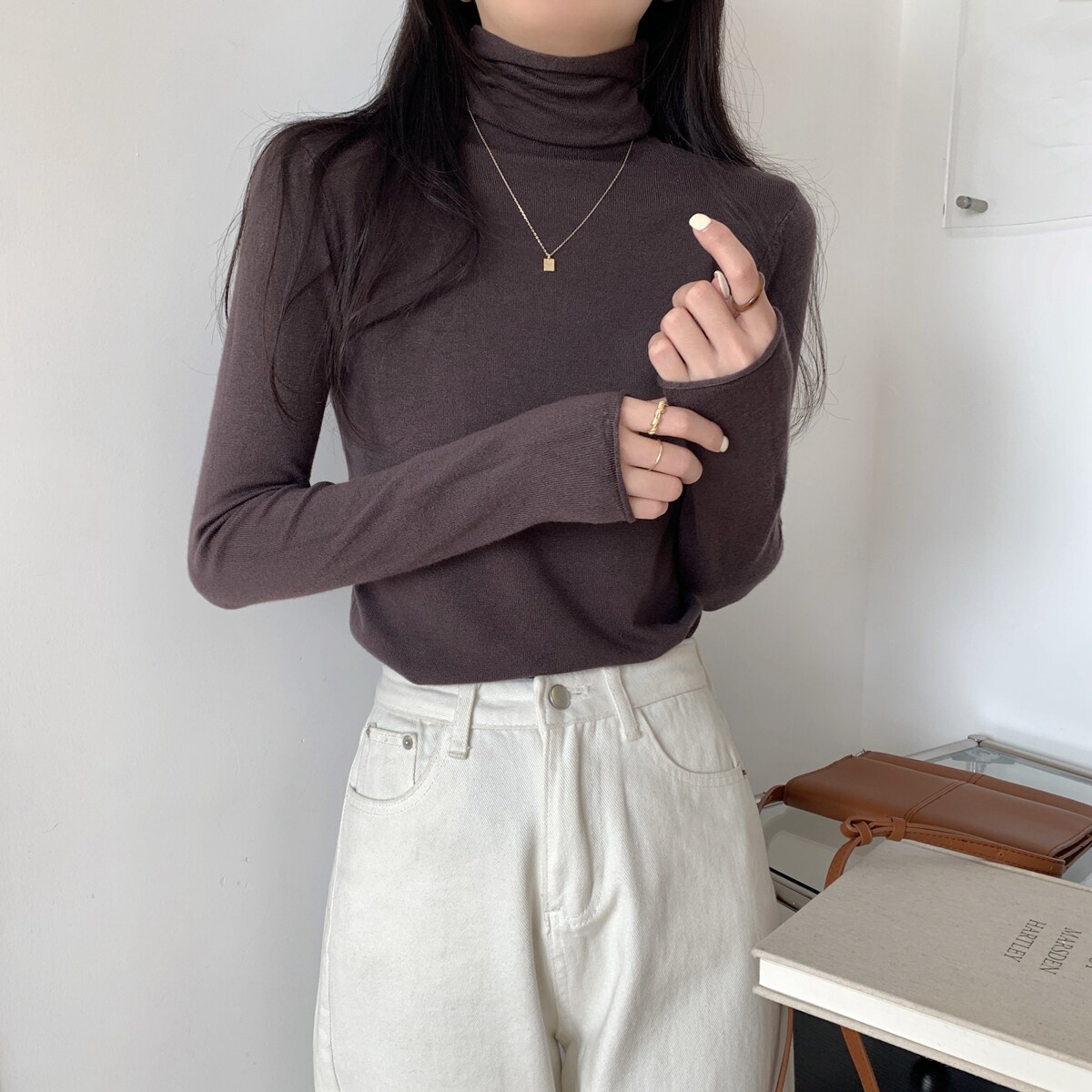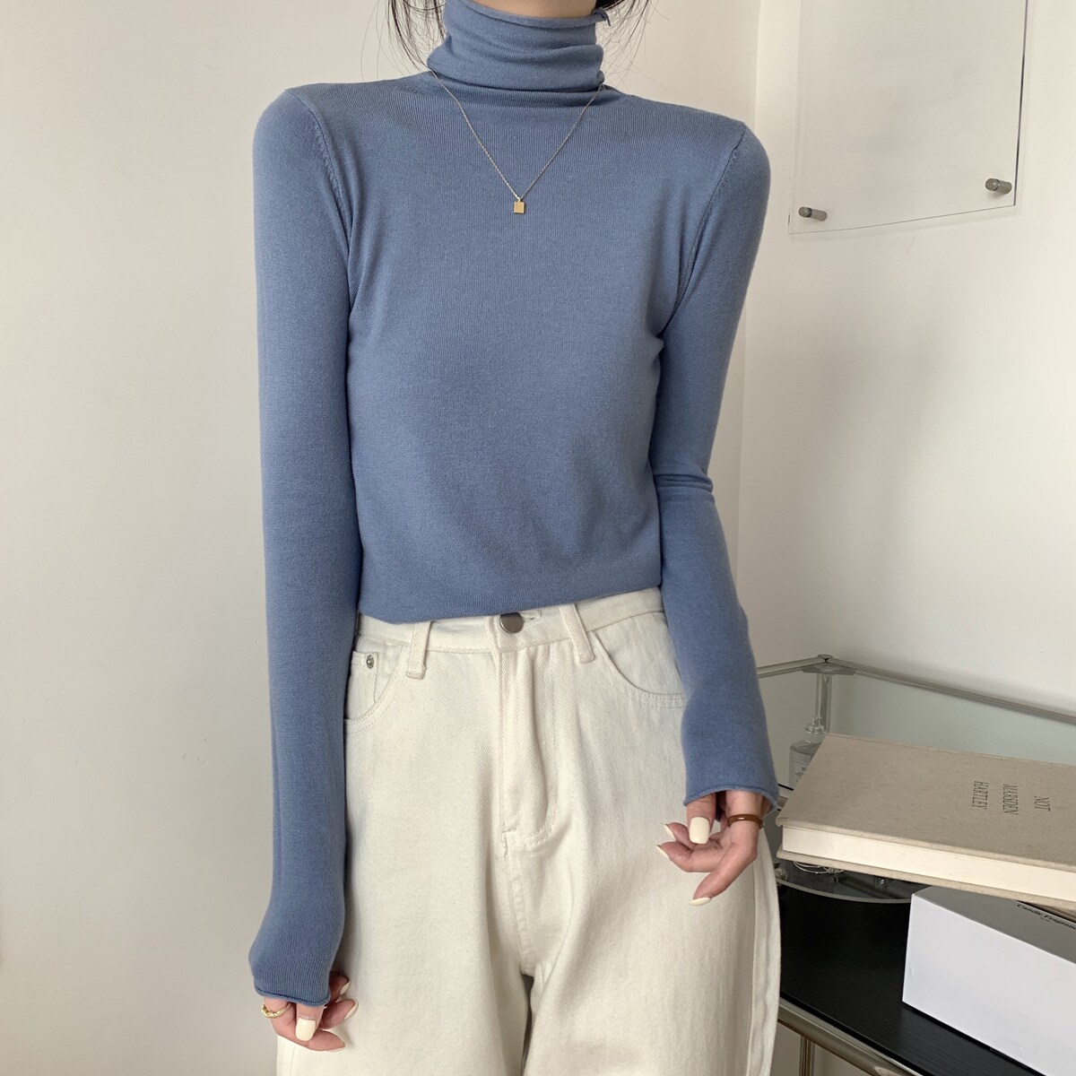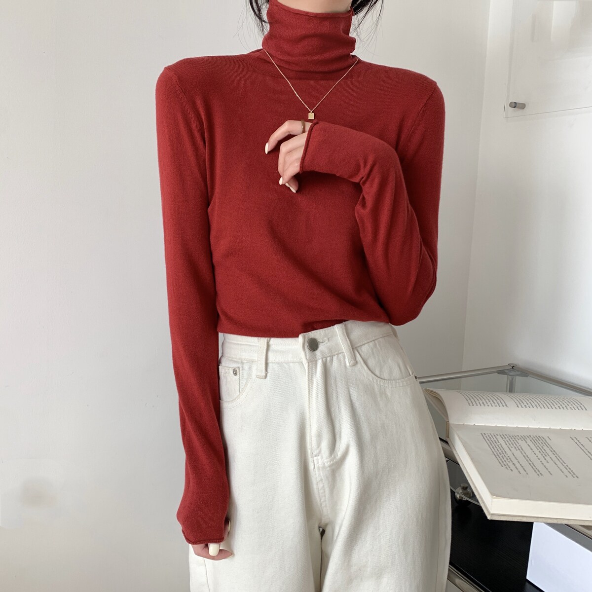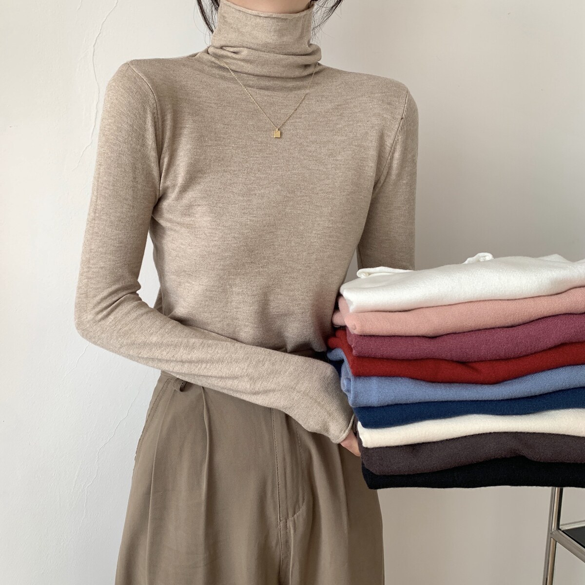 Осенний трикотажный приталенный свитер, лонгслив, в корейском стиле