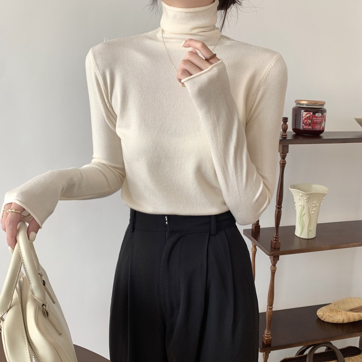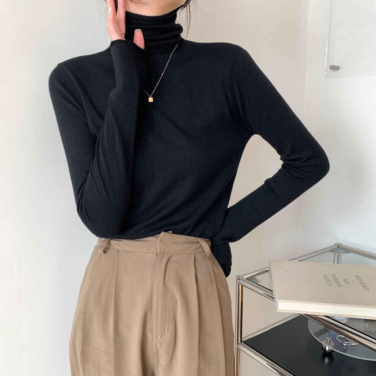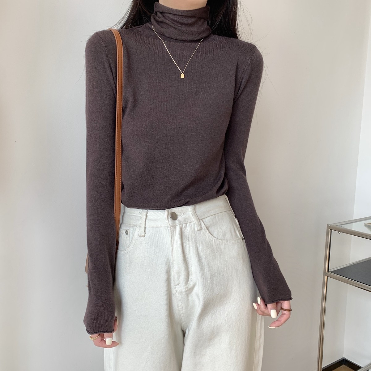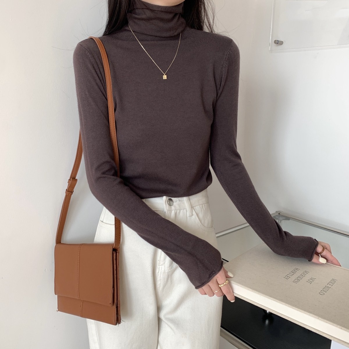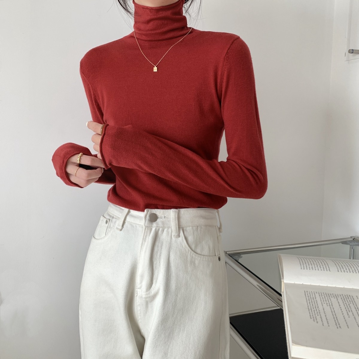 Осенний трикотажный приталенный свитер, лонгслив, в корейском стиле