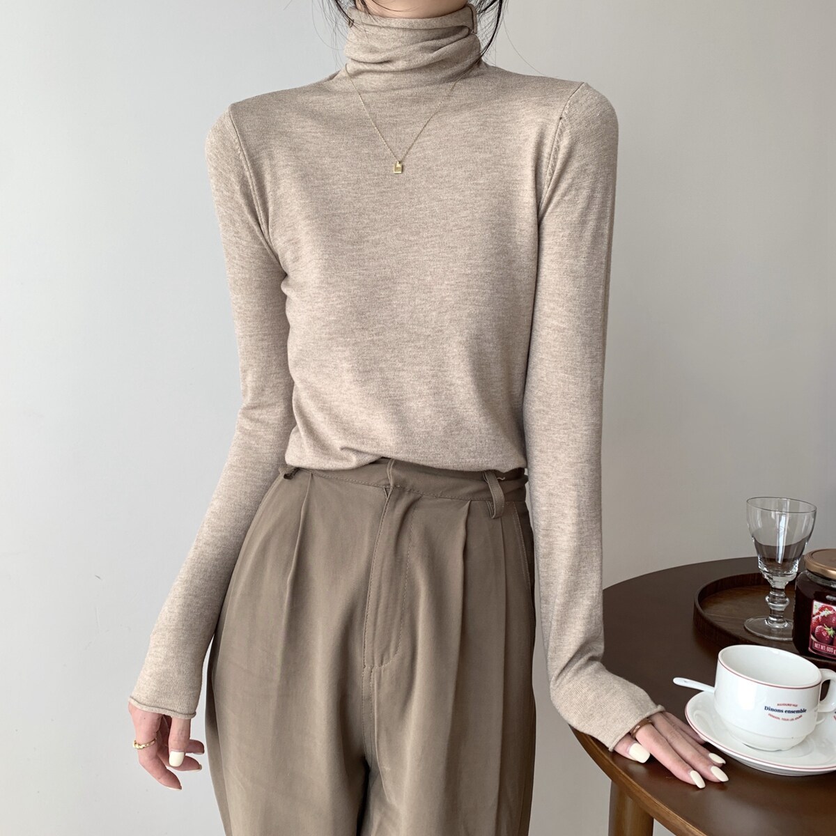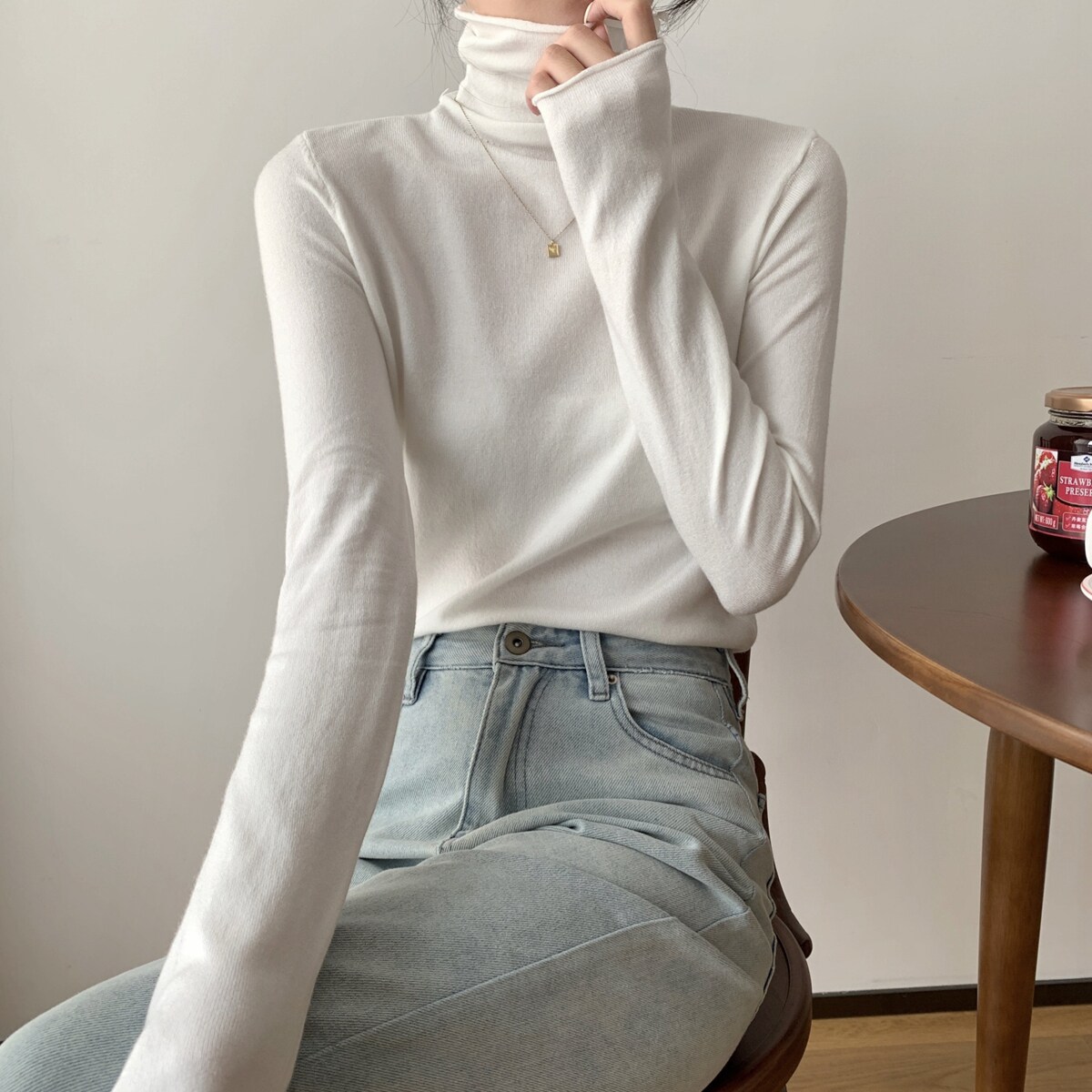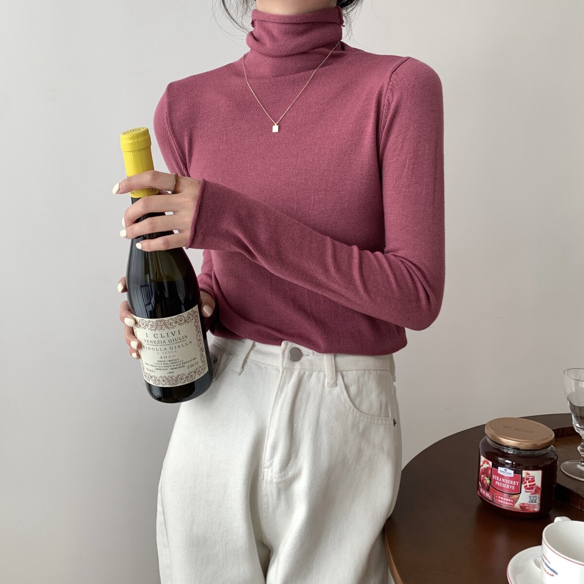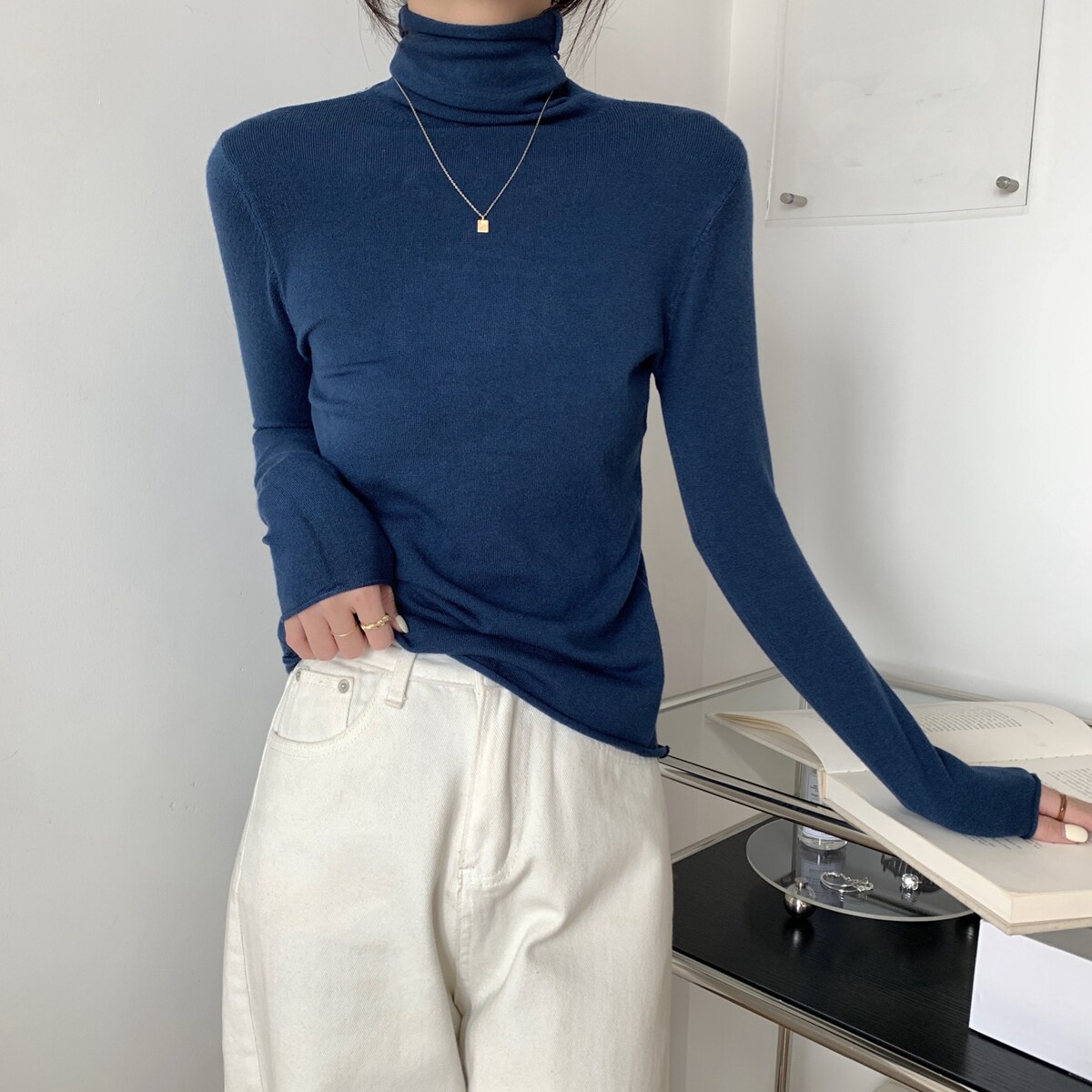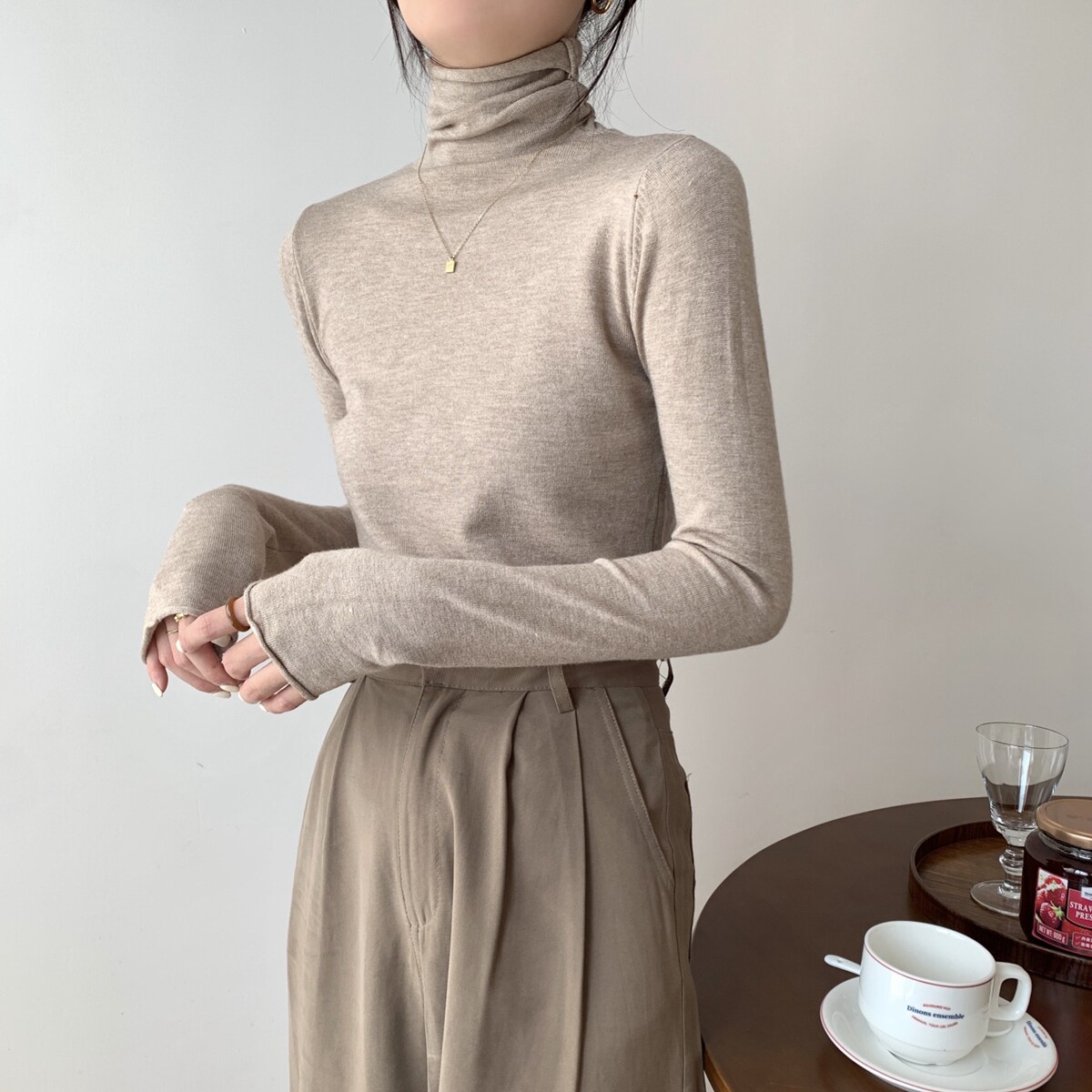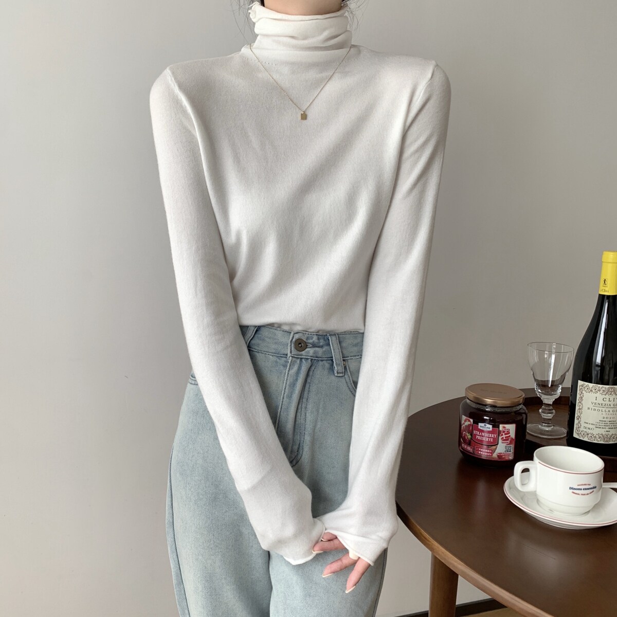 Осенний трикотажный приталенный свитер, лонгслив, в корейском стиле