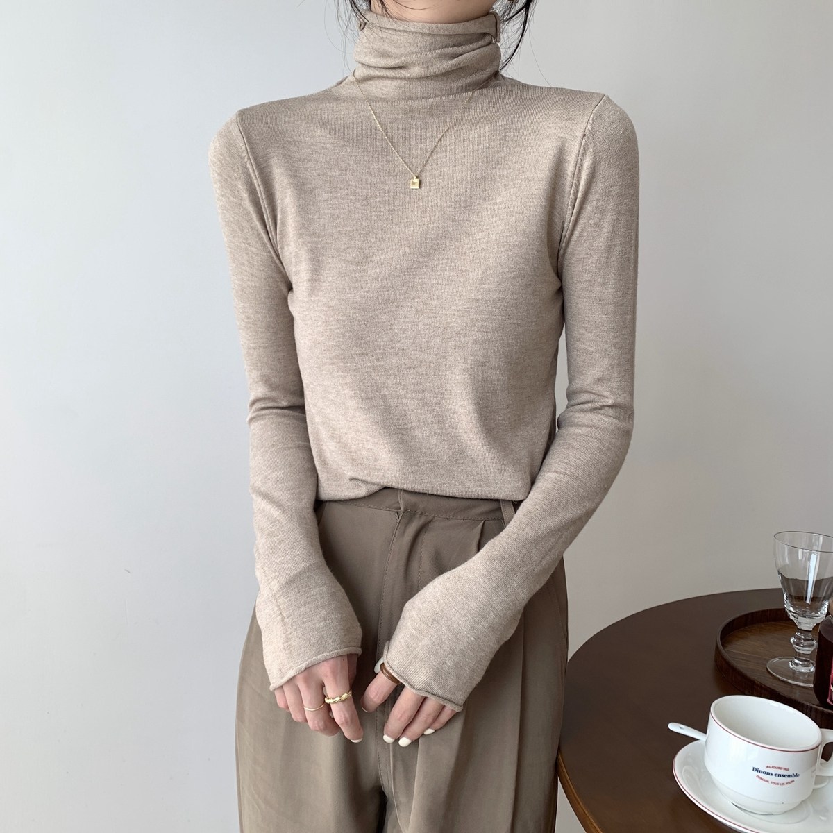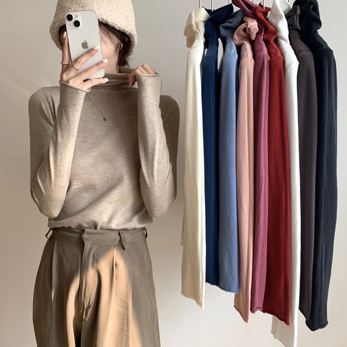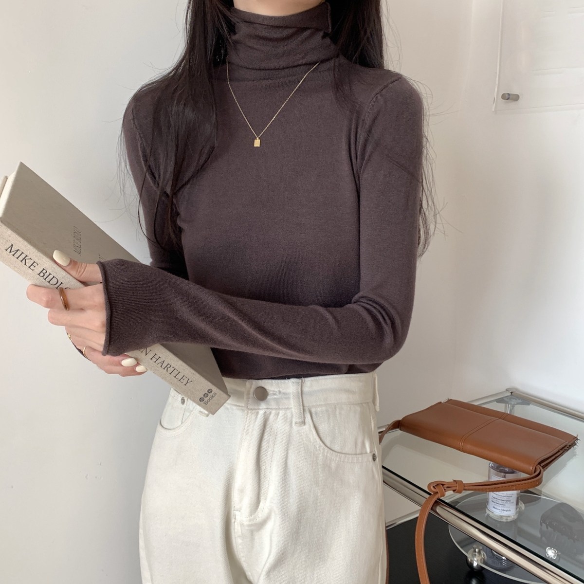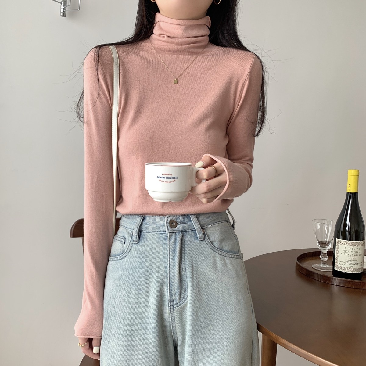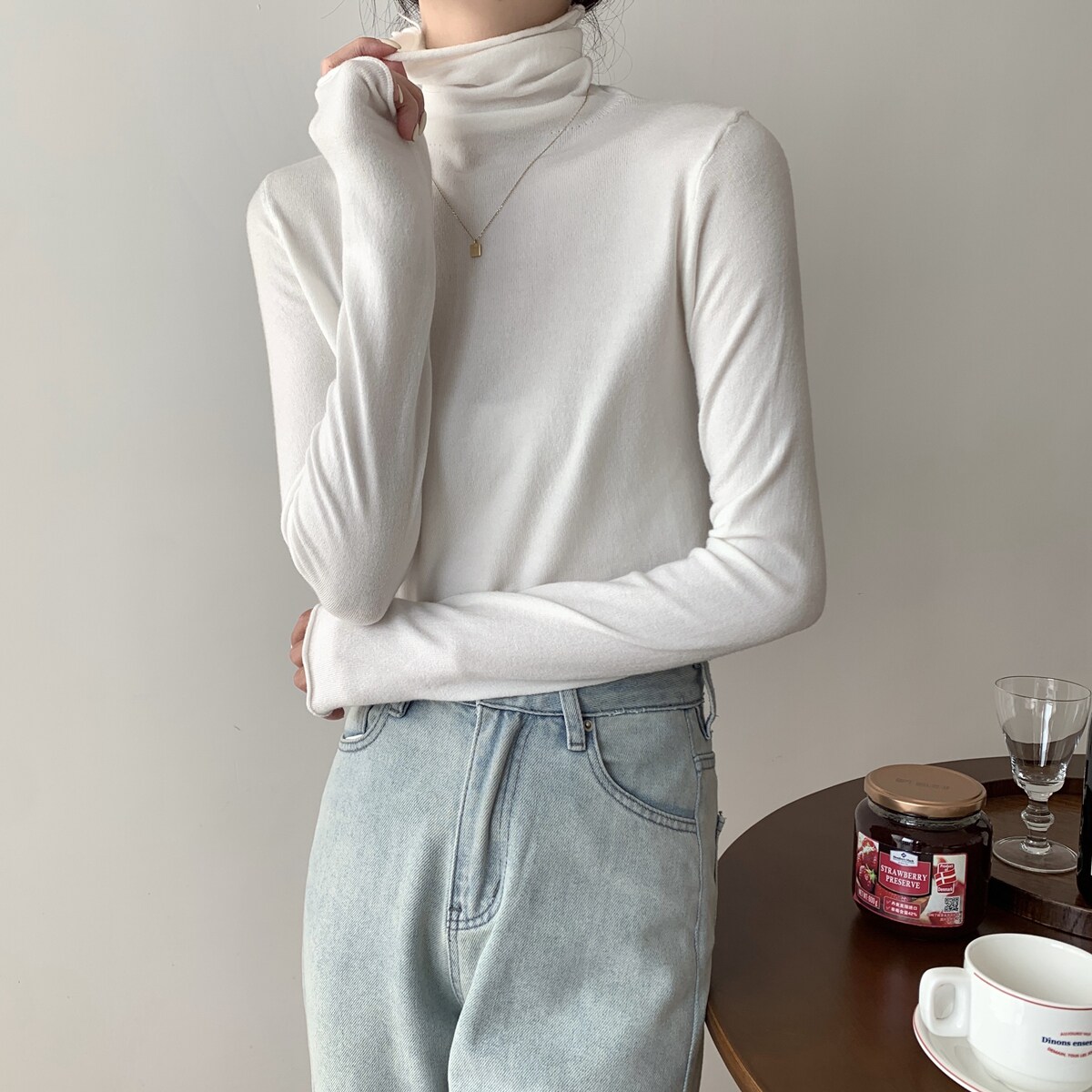Осенний трикотажный приталенный свитер, лонгслив, в корейском стиле
