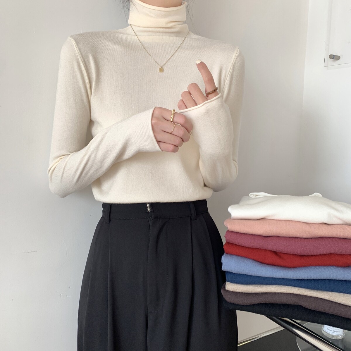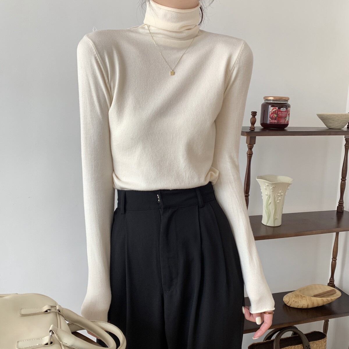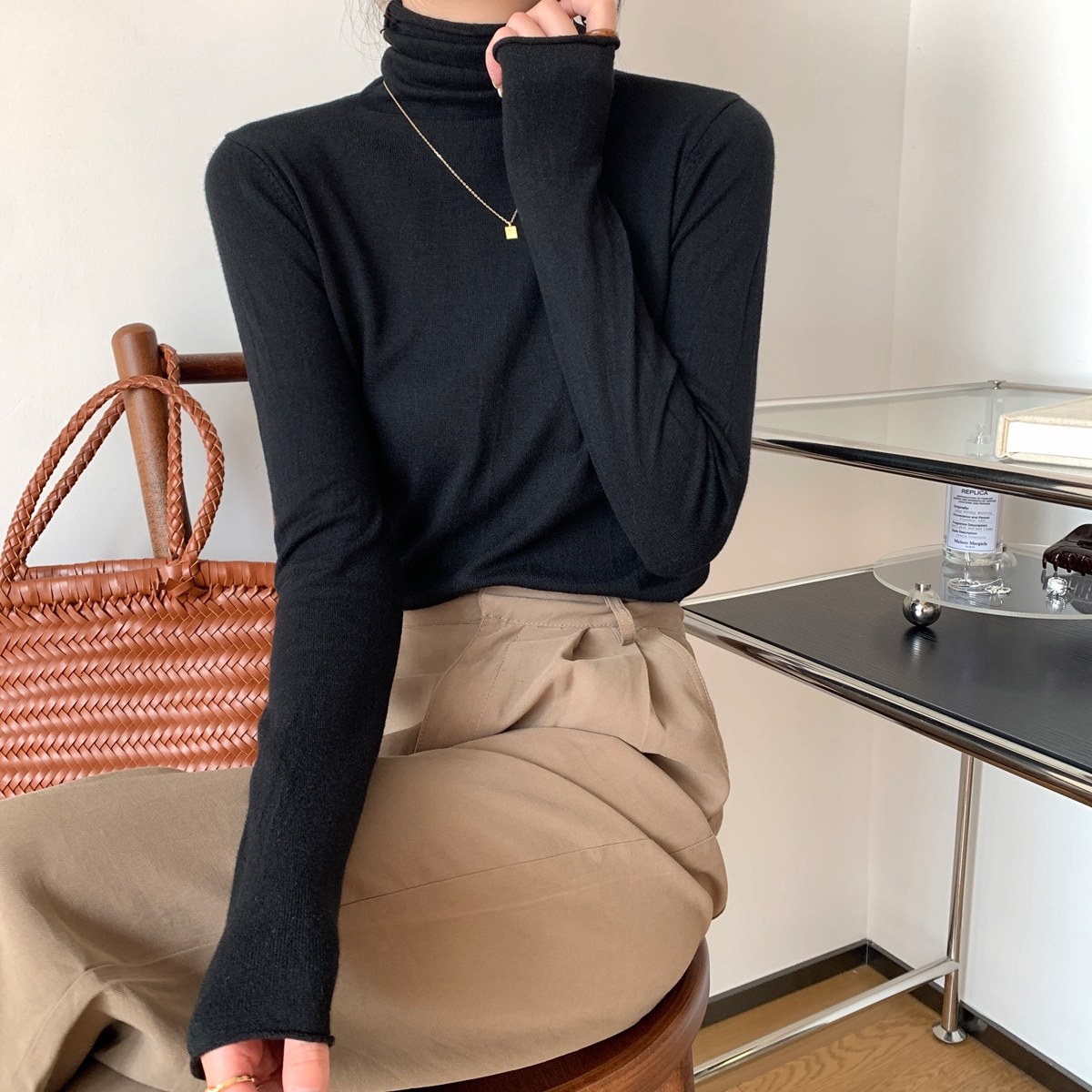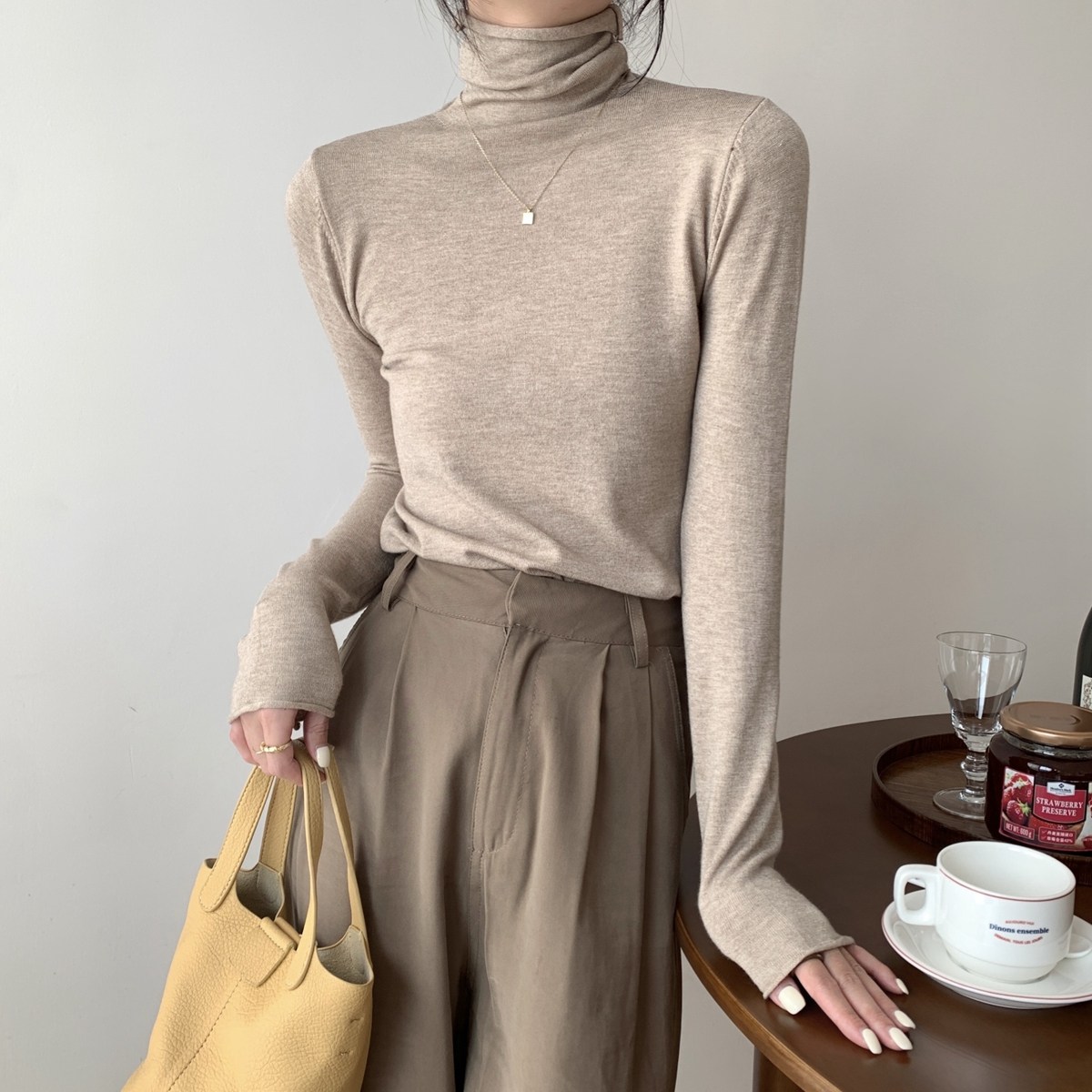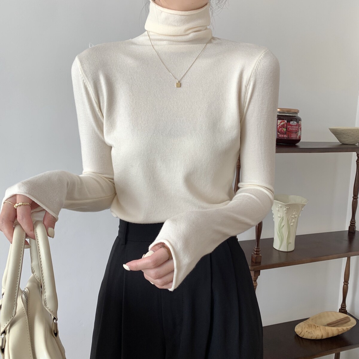 Осенний трикотажный приталенный свитер, лонгслив, в корейском стиле