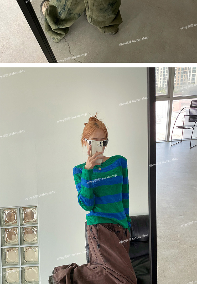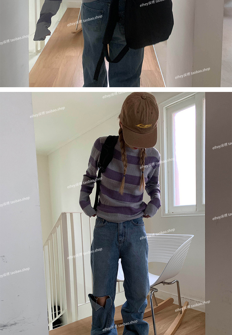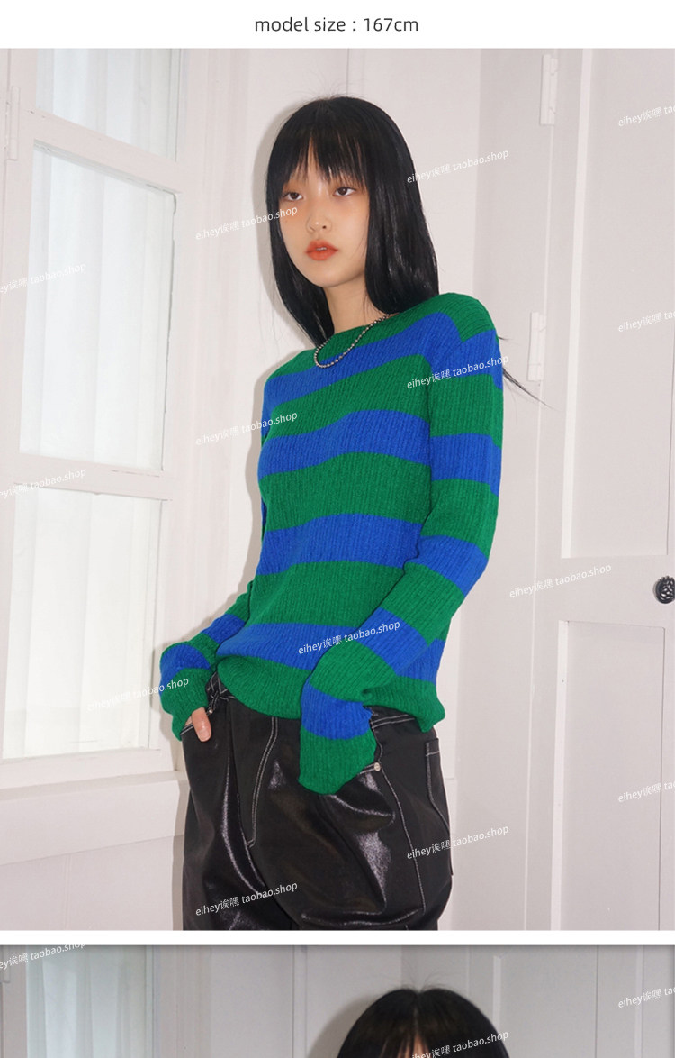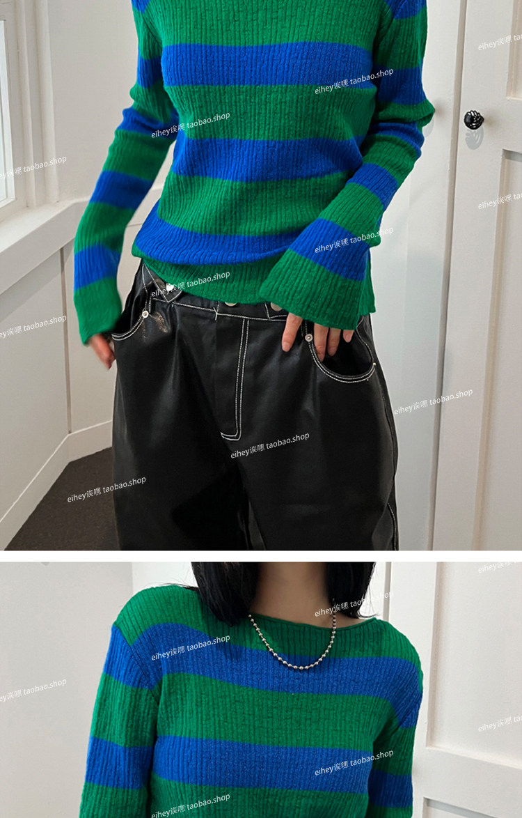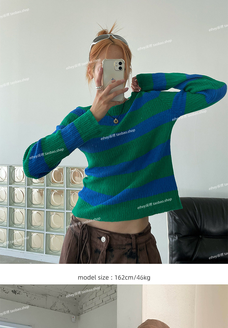Eihey new Simple и универсальный цветовой блок круглый воротник Полосатый модный топ с длинными рукавами